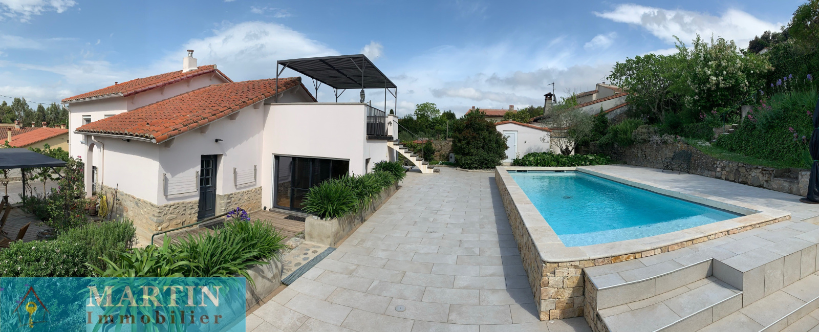 A deux pas du centre-ville et au calme, une très belle maison rénovée avec piscine entièrement rénovée d'environ 156 m² de surfaces utiles sur une parcelle de 824 m² composée d'un séjour d'environ 31,70 m², une cuisine équipée d'environ 19,50 m², 4 chambres dont une suite parentale d'environ 24,47 m² avec sa salle d'eau / WC, une salle de bains / WC, un cellier et une buanderie. A l'extérieur plusieurs terrasses, une piscine 3 m x 9 m, traitée au sel. Canal d'arrosage. Belles prestations. Double vitrage. Volets roulants électriques. Moustiquaires. Classement énergétiques B. Climatisation réversible. Belle vue. Exposition sud. Rénovation en 2017.