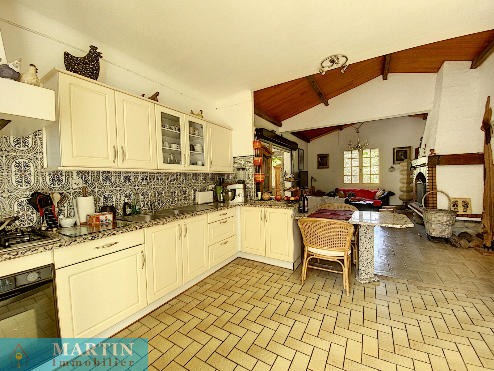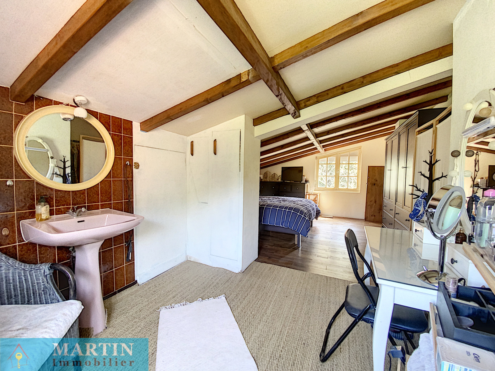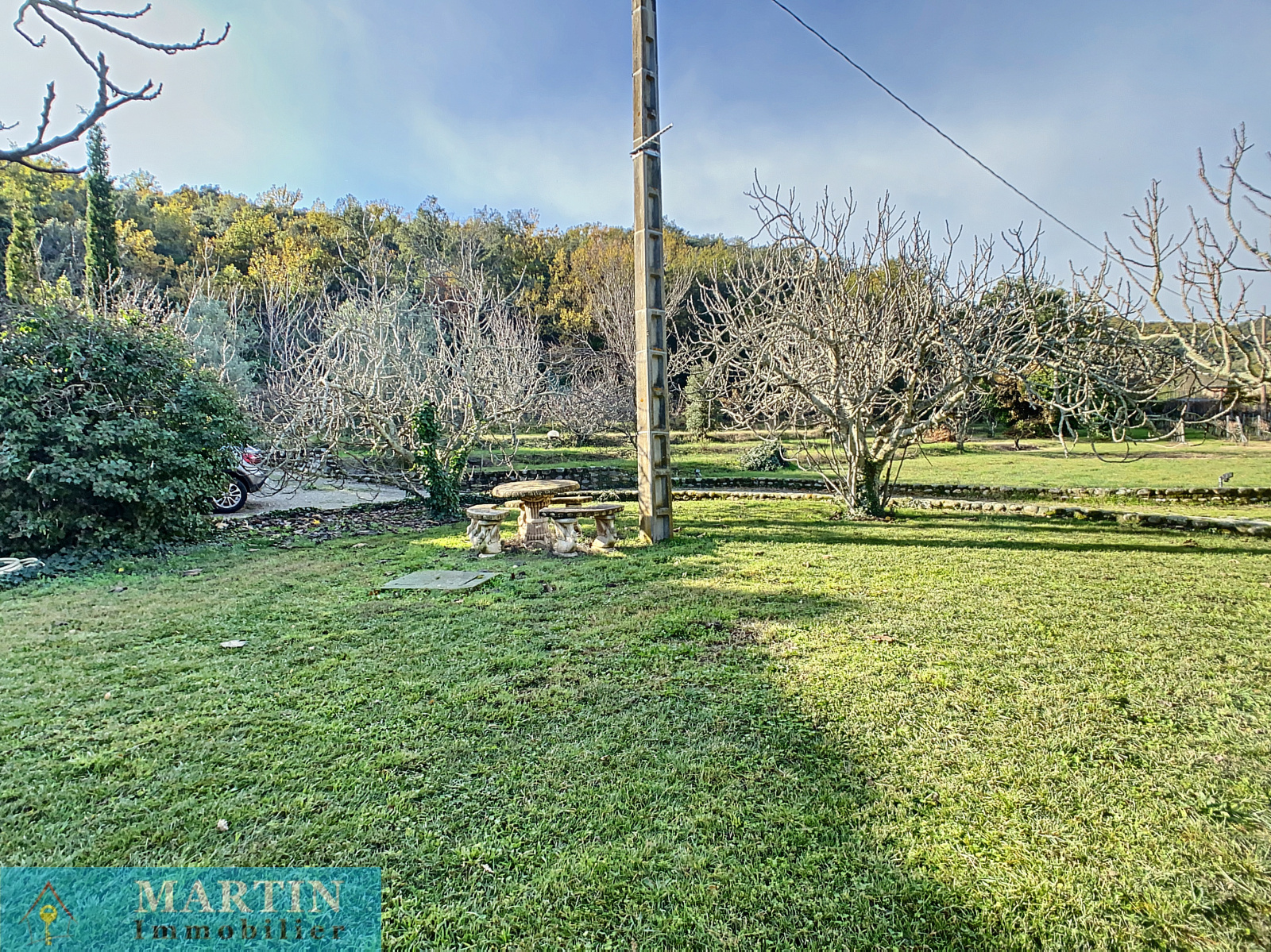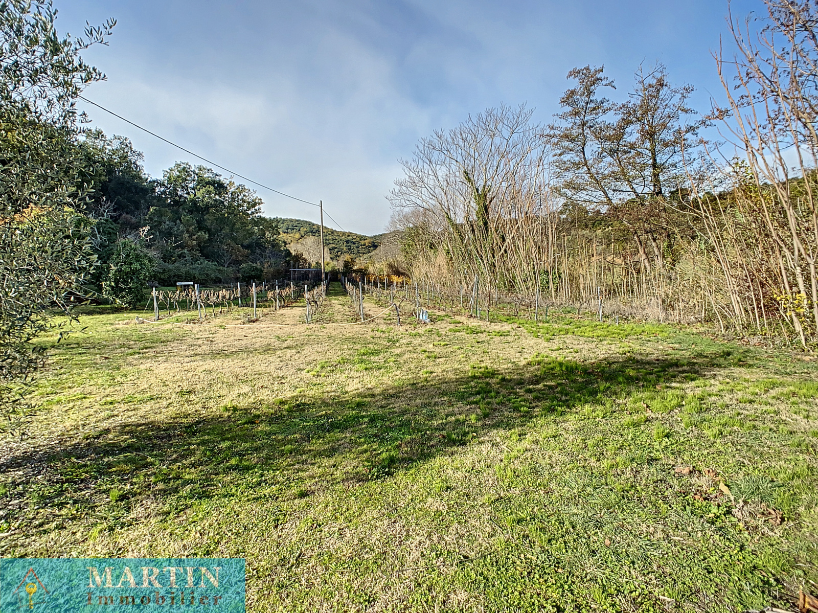 Une partie plate avec des vignes et une partie boisée, celle-ci est située à 2 km des commerces, elle est composée d’une cuisine ouverte sur le salon de 43m², une salle à manger de 42m², 5 chambres dont une avec salle d’eau et WC, une salle de bains, une buanderie, un atelier, une cuisine, un garage.
