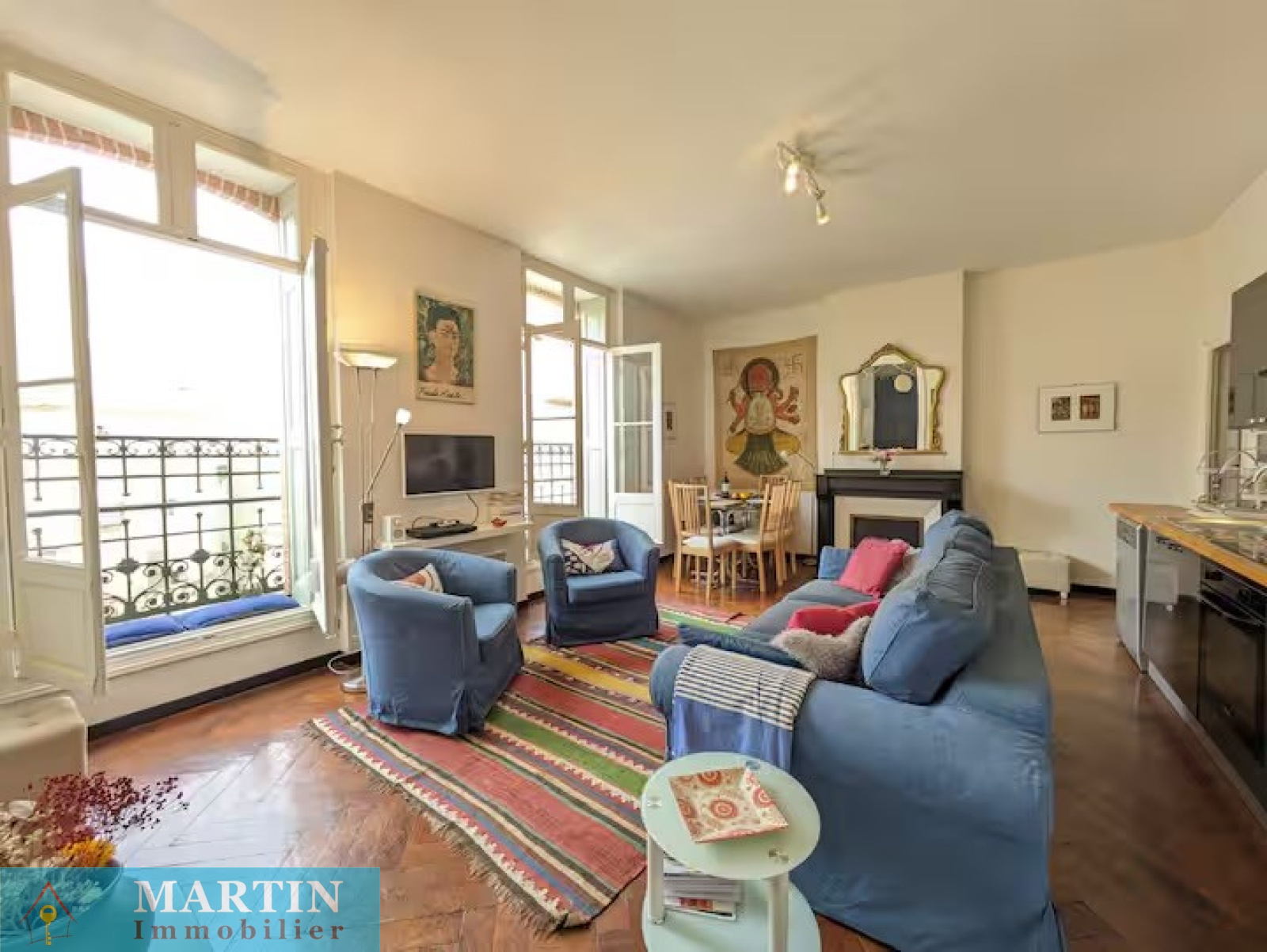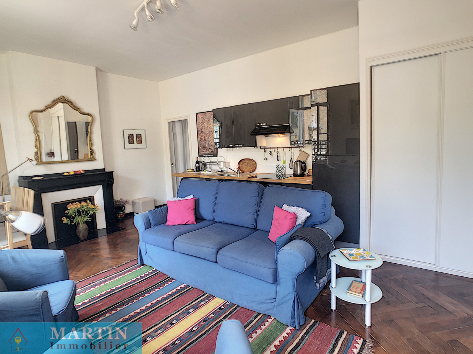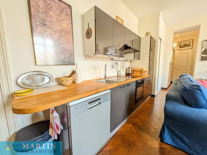 Au 2eme étage d’une petite copropriété, un appartement rénovée type F2 d’environ 50m² composé d’une cuisine ouverte sur le séjour, une grande chambre avec dressing, une salle d’eau avec wc et une pièce pour les rangements.
