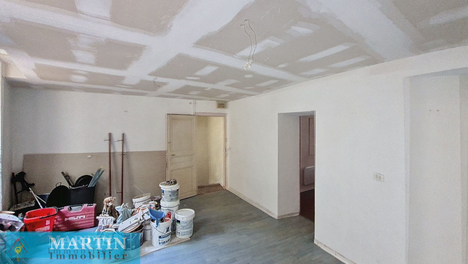 Le T2 du premier étage est composée d'une cuisine séparée, un salon, une chambre et une salle d'eau. Des travaux sont à prévoir.
