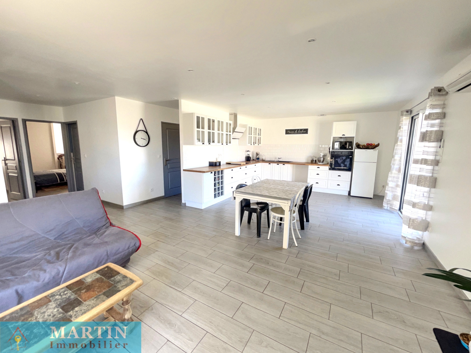 A vendre à Céret, belle villa moderne 3 faces de 82 m² environ sur parcelle de 299 m² environ composée d'un grand séjour cuisine ouverte de 46 m² environ ouvrant sur deux baies vitrées et le jardin, côté nuit 2 chambres avec placard, salle d'eau douche italienne, cellier, garage carrelé isolé. Belles prestations: DPE A, double vitrage, climatisation, vidéophone, carrelage imitation bois, cumulus thermodynamique, volets roulants électriques, porte de garage motorisée, charpente métallique. A visiter rapidement.