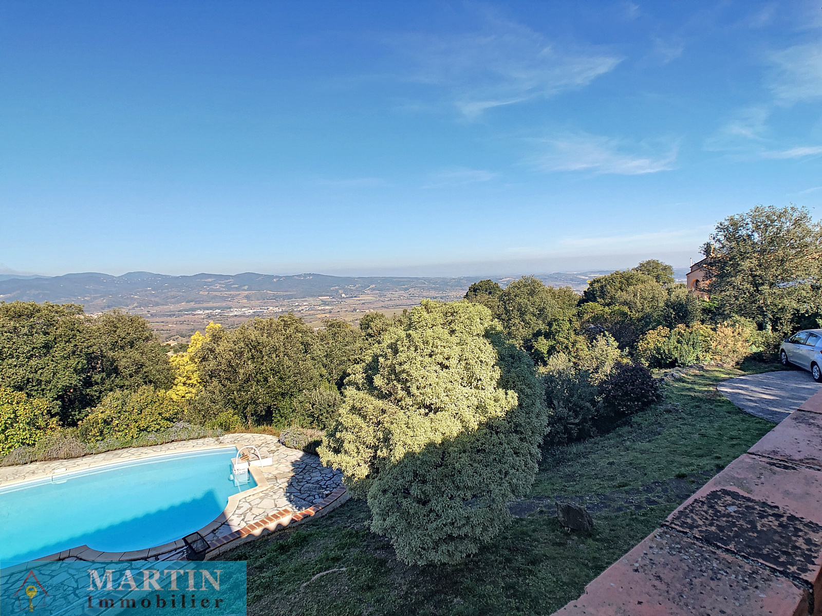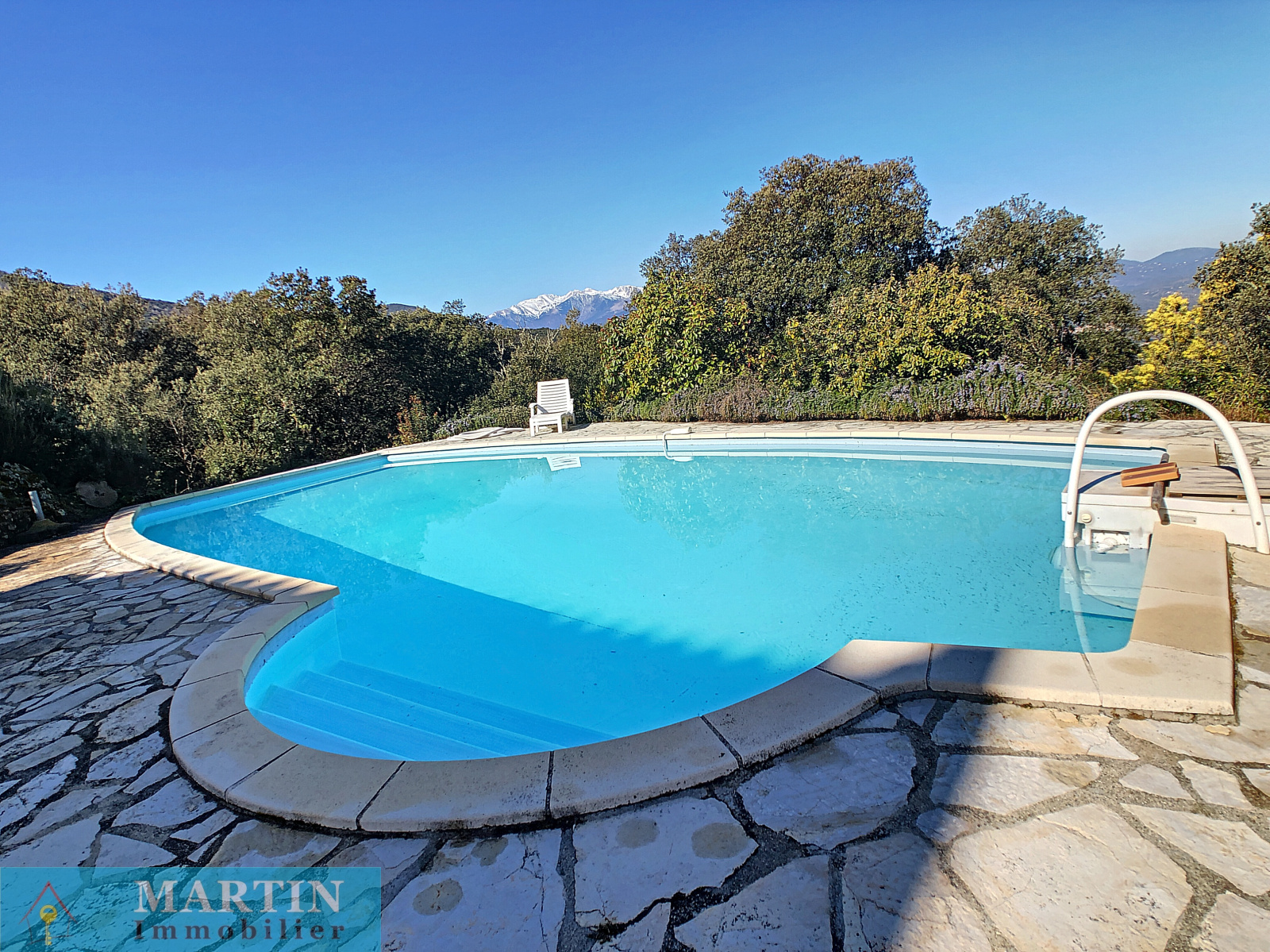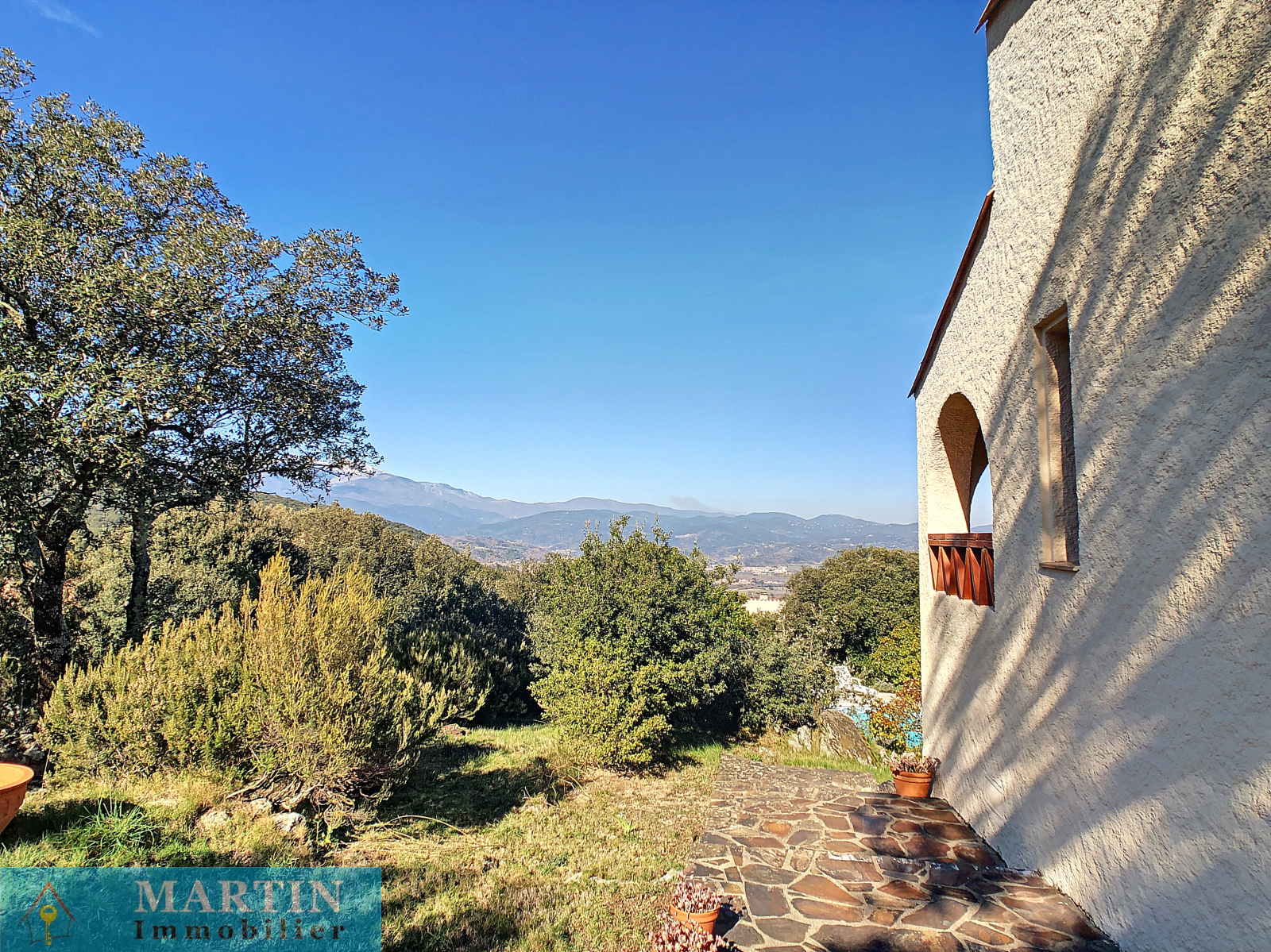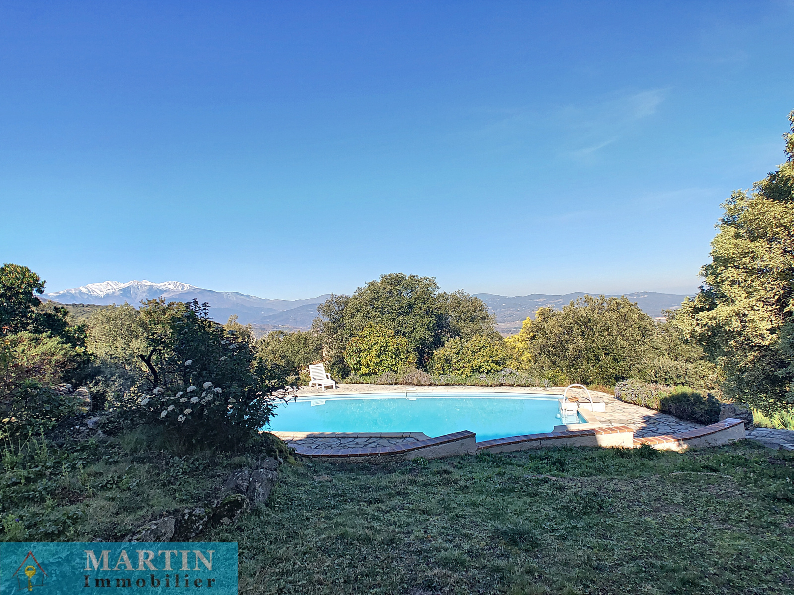 Magnifique vue dégagée sur les montagnes et le Canigou. Jolie piscine maçonnée avec liner. Coup de cœur assuré !!!