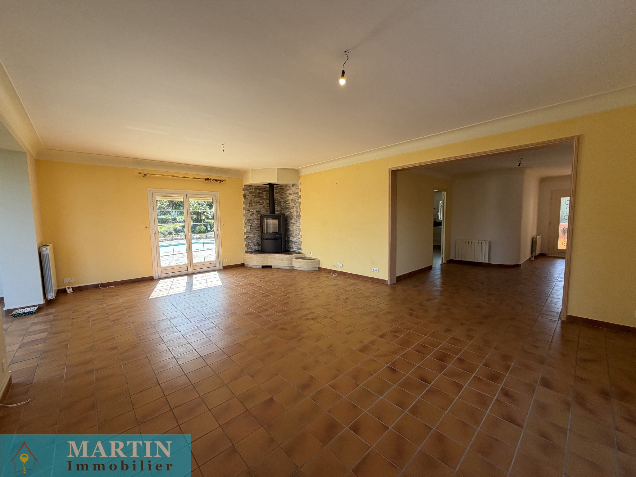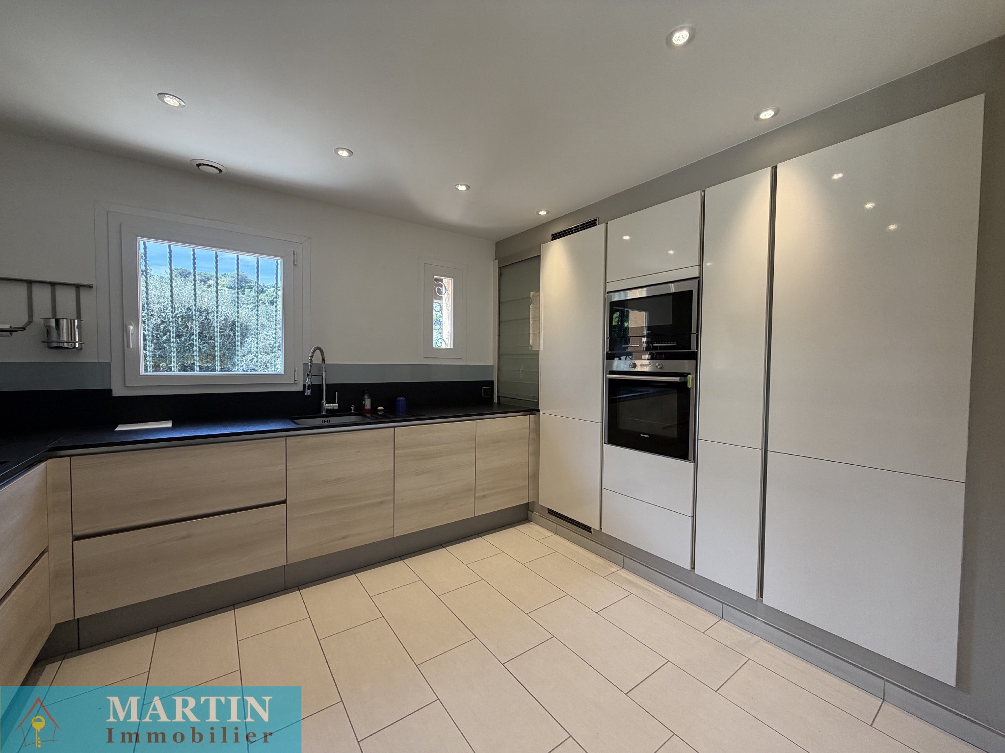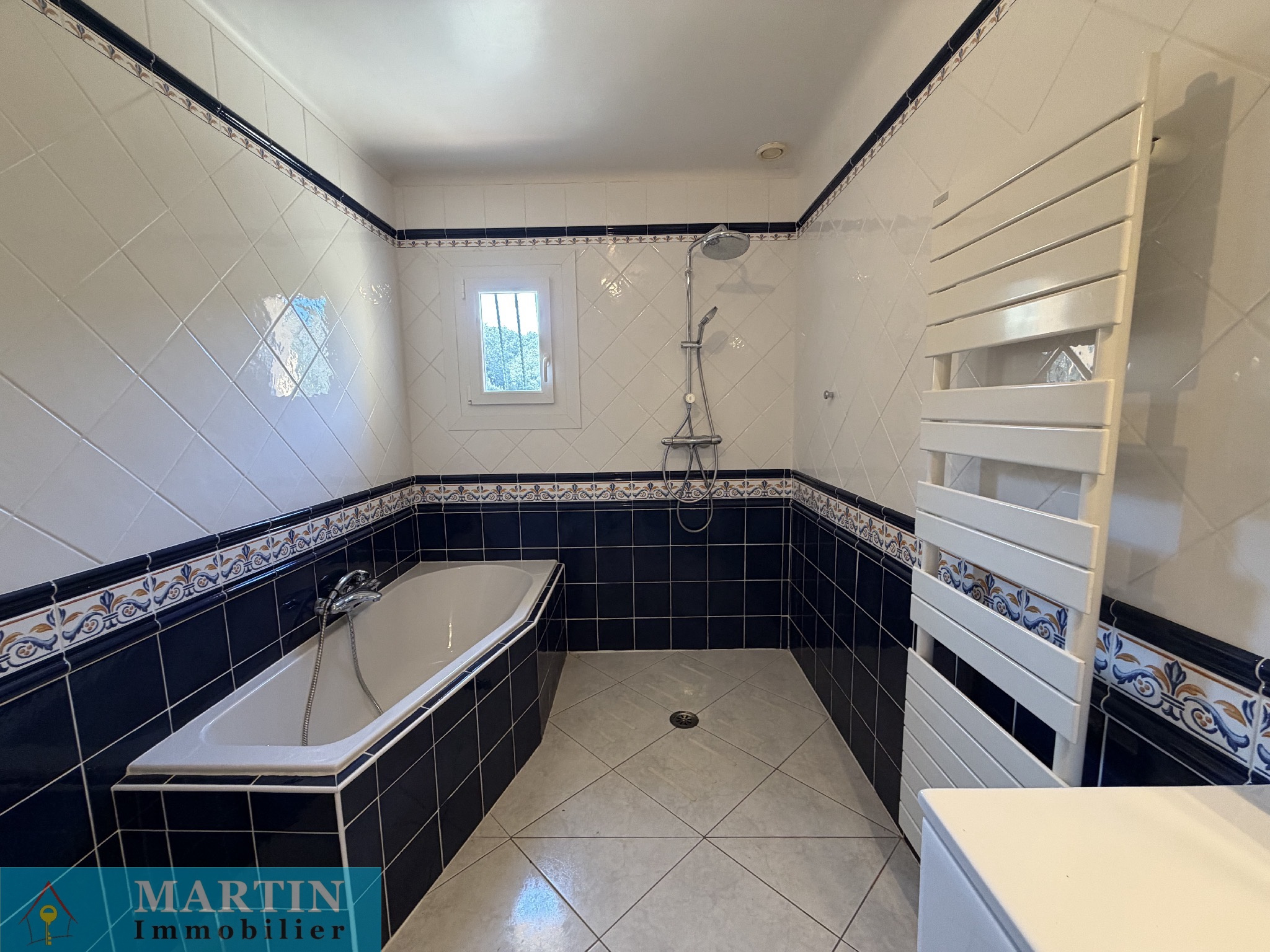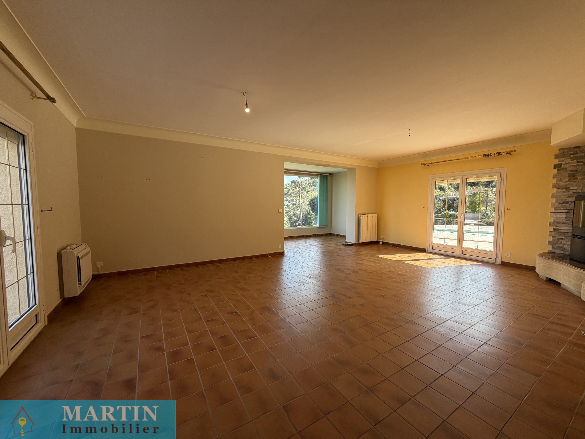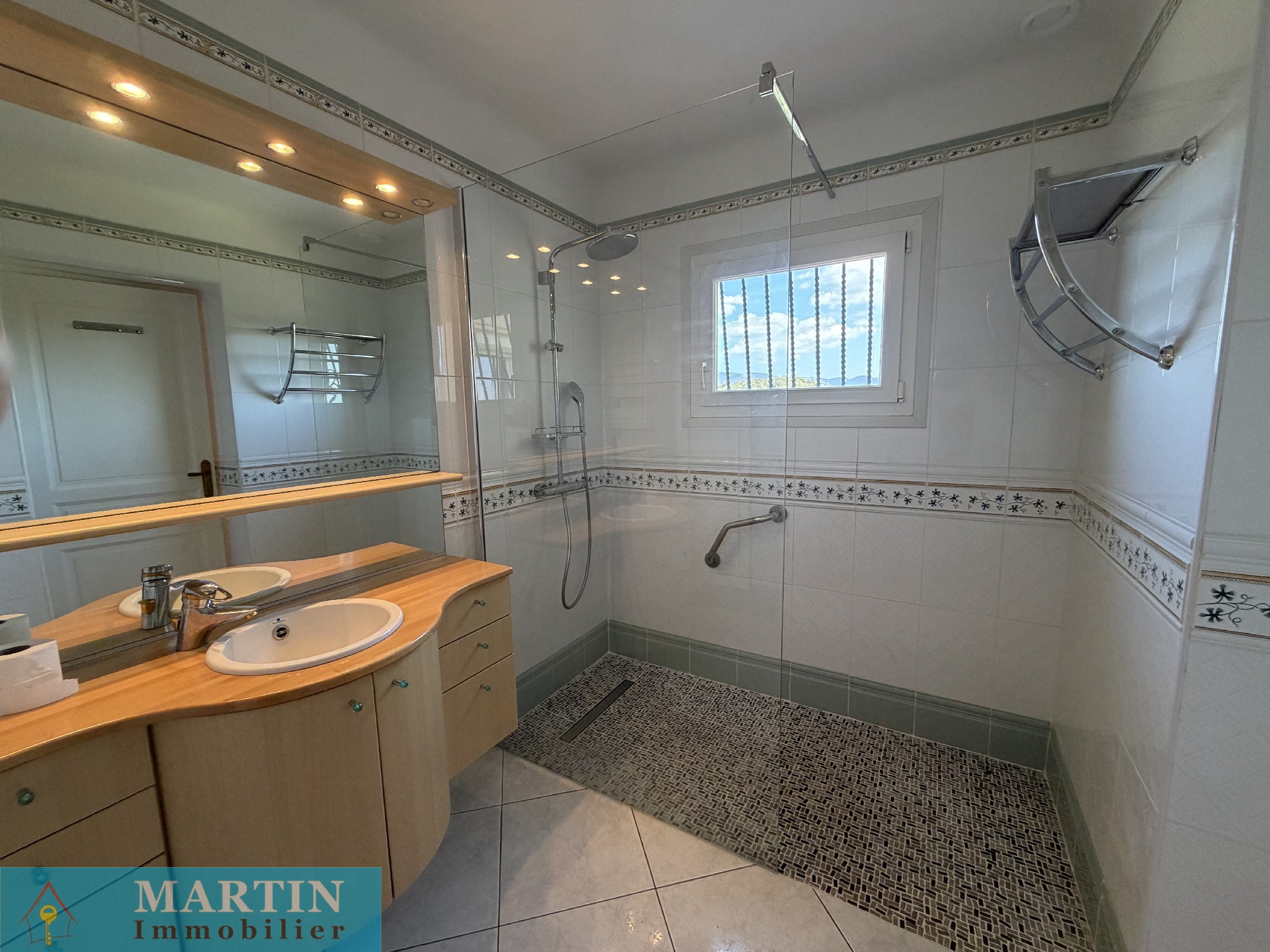 Cette maison, de son rez-de-jardin, se compose d'une très vaste pièce de vie donnant accès à une terrasse avec vue jusqu'à la méditerrannée, une cuisine séparée avec son accès direct vers la véranda. Coté nuit, on dispose d'une suite parentale avec douche et wc ayant aussi son accès vers la terrasse, deux belles chambres, une salle de bains avec douche et un wc séparé.