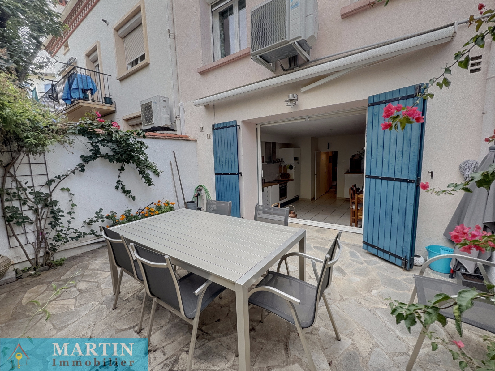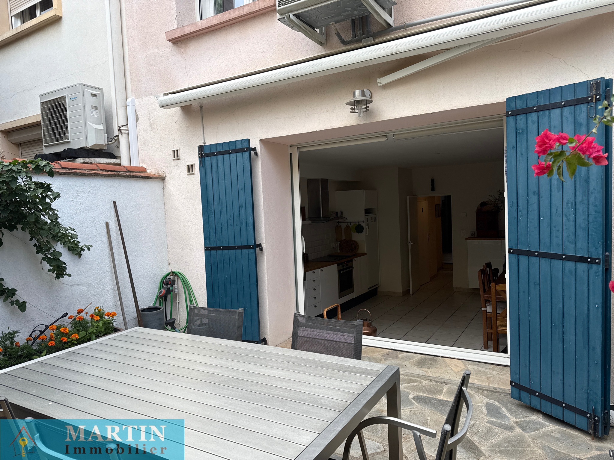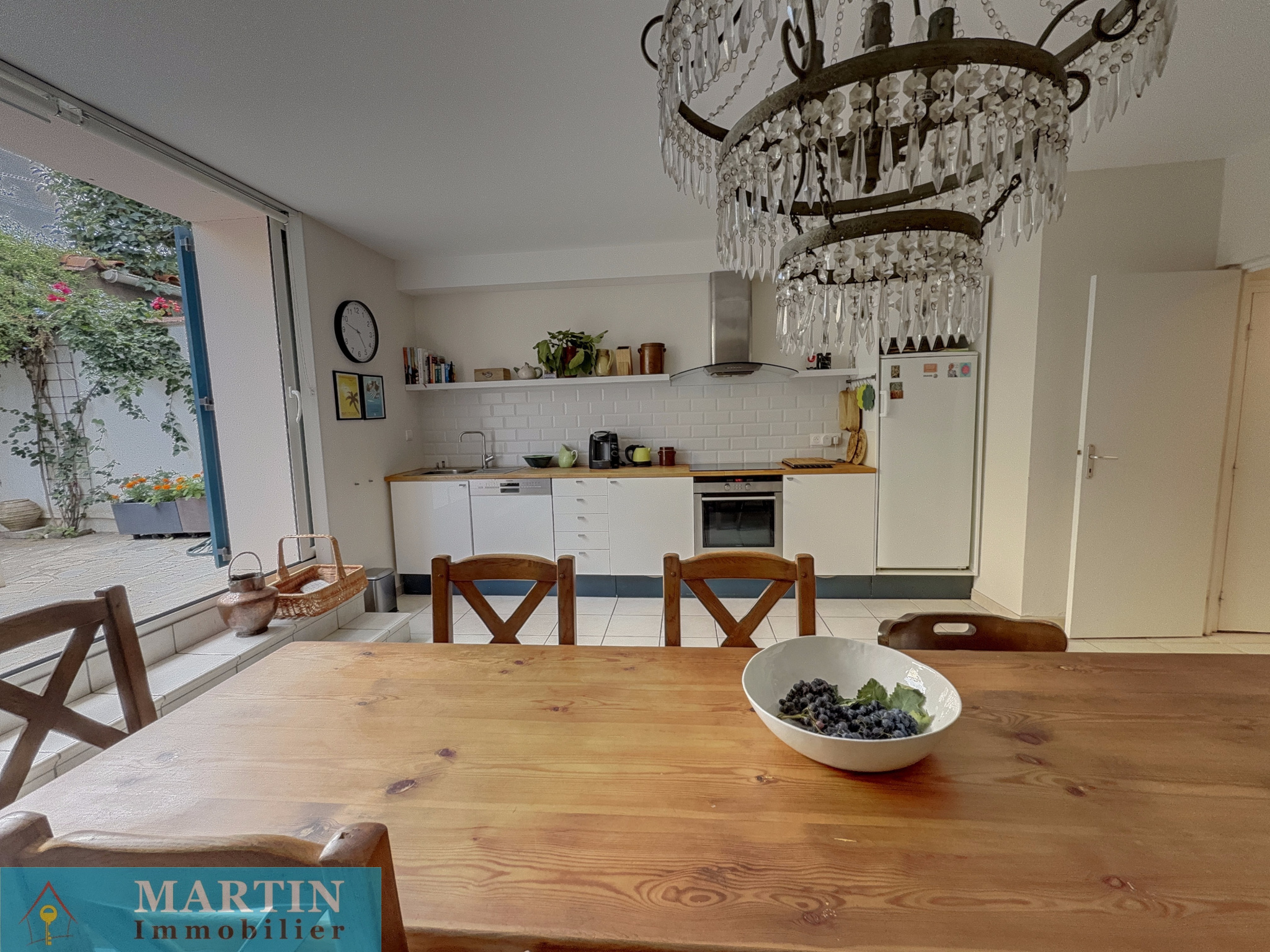 - Cuisine ouverte / salle à manger donnant sur un patio d’environ 20 m², parfait pour vos repas en extérieur