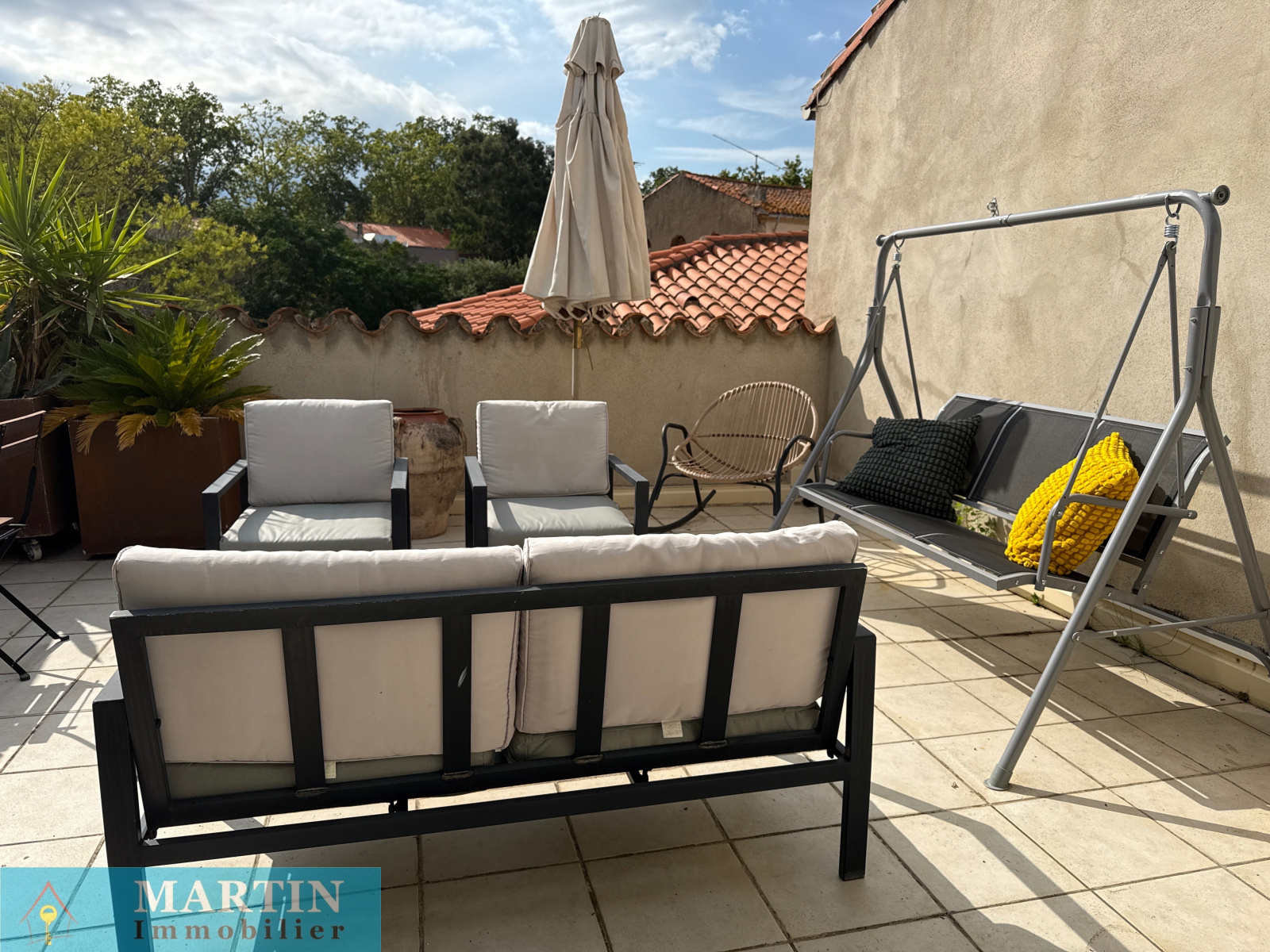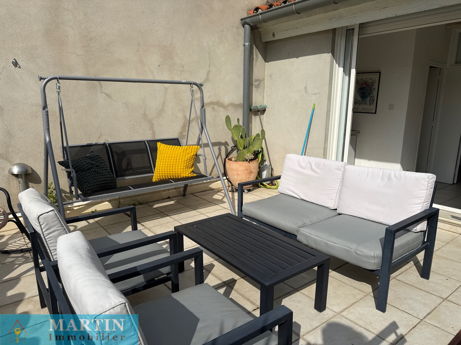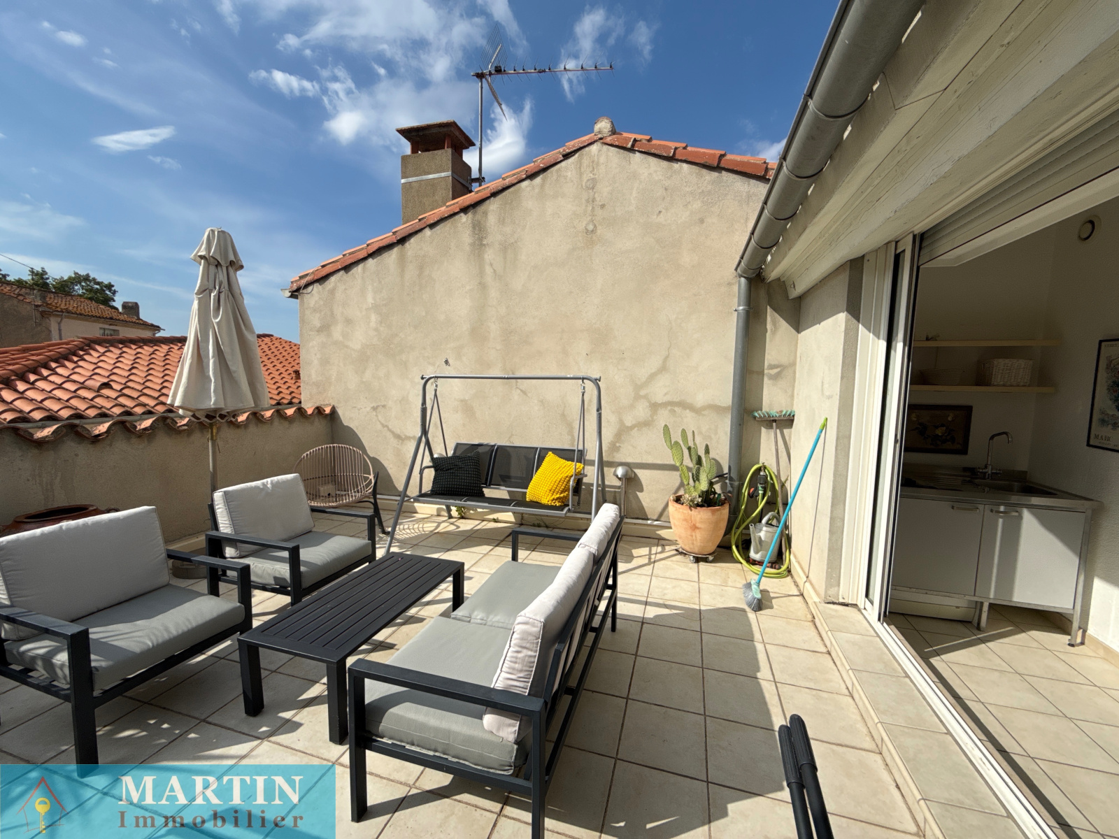 - Cuisine ouverte / salle à manger donnant sur un patio d’environ 20 m², parfait pour vos repas en extérieur