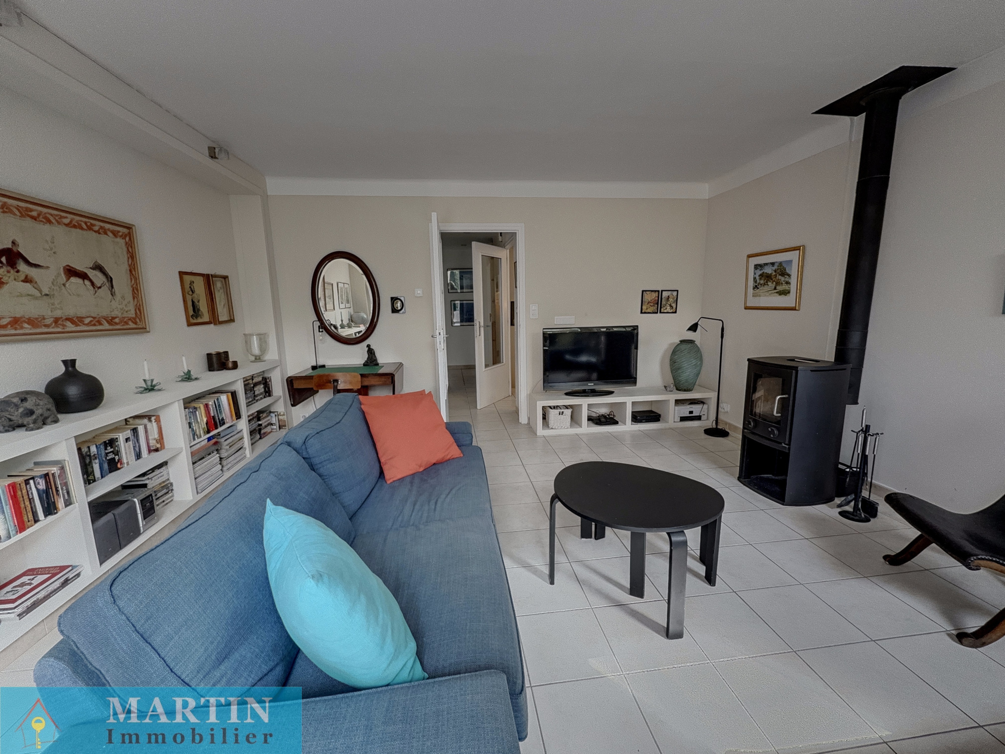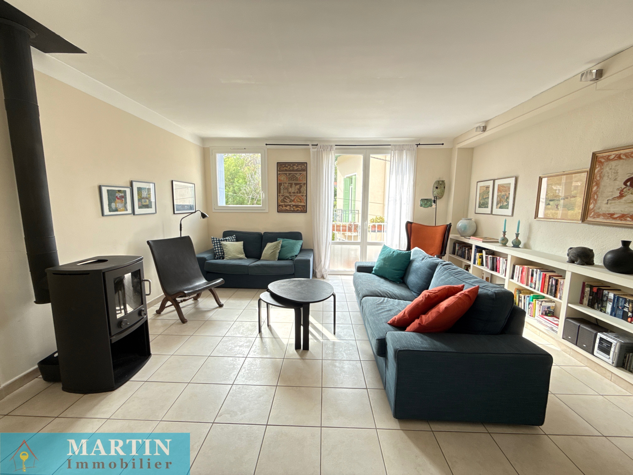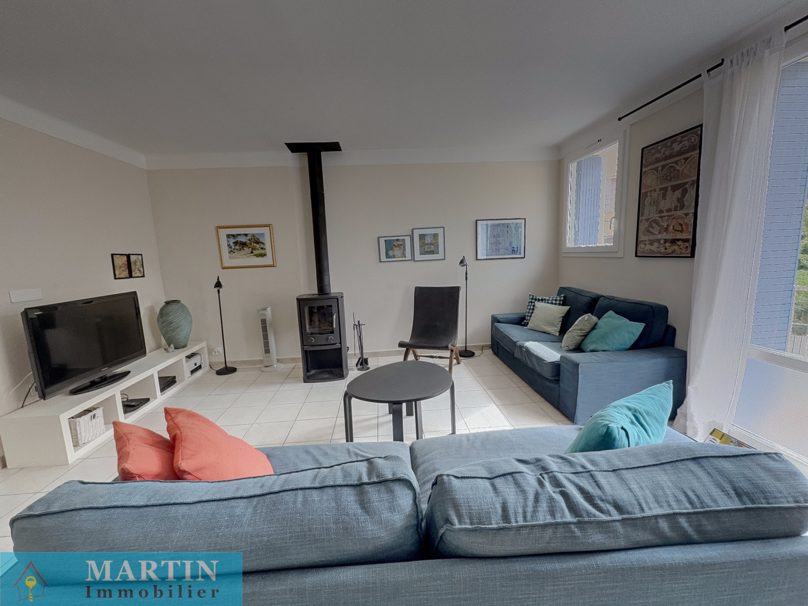 - Salon lumineux avec poêle à bois, idéal pour se détendre
