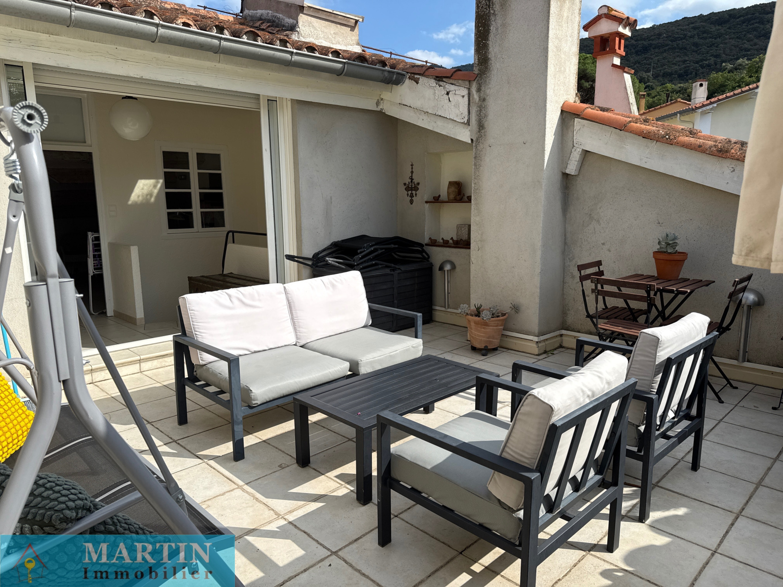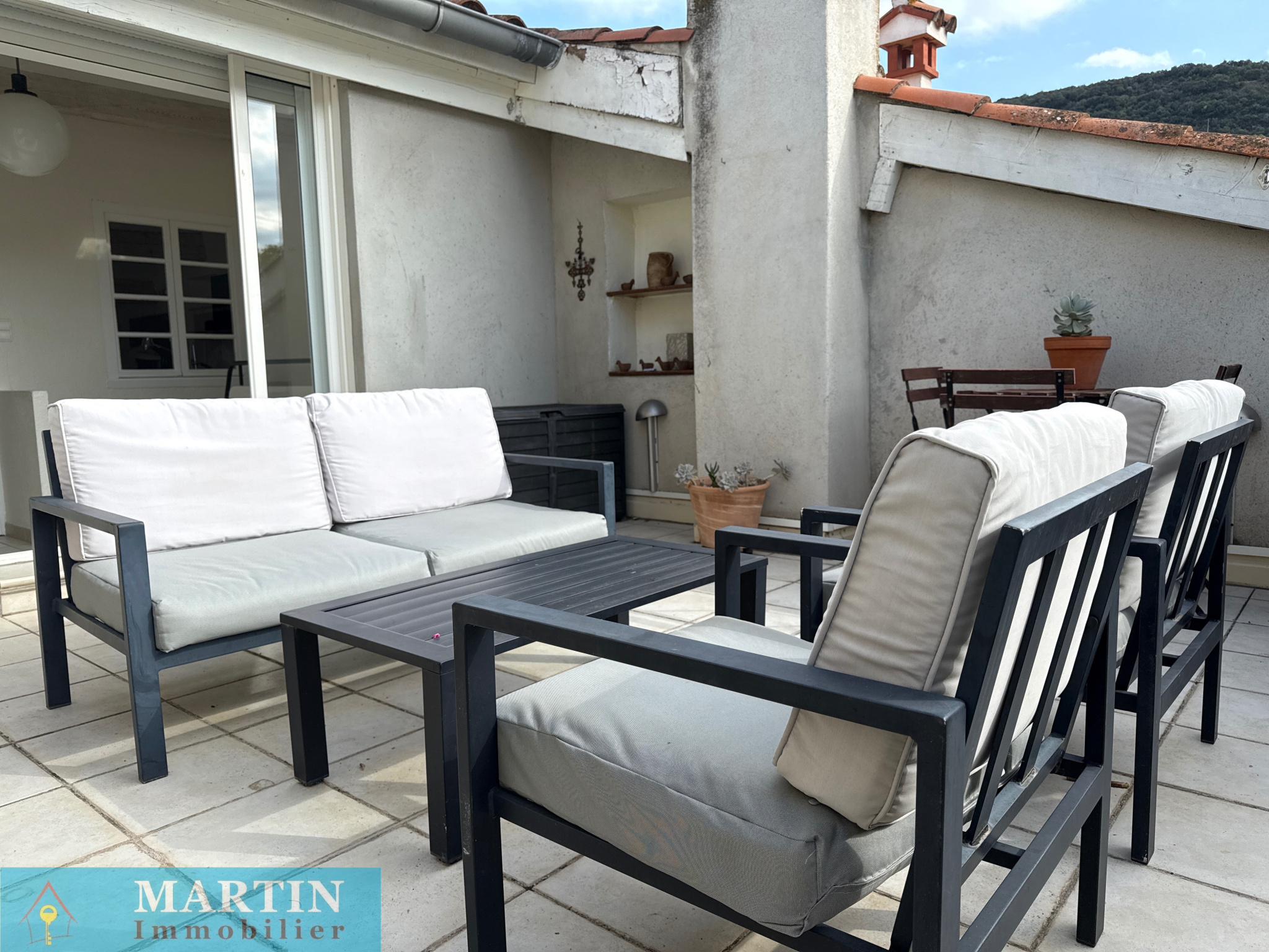 - Terrasse d’environ 21 m² exposée ouest, offrant une vue imprenable sur les montagnes
