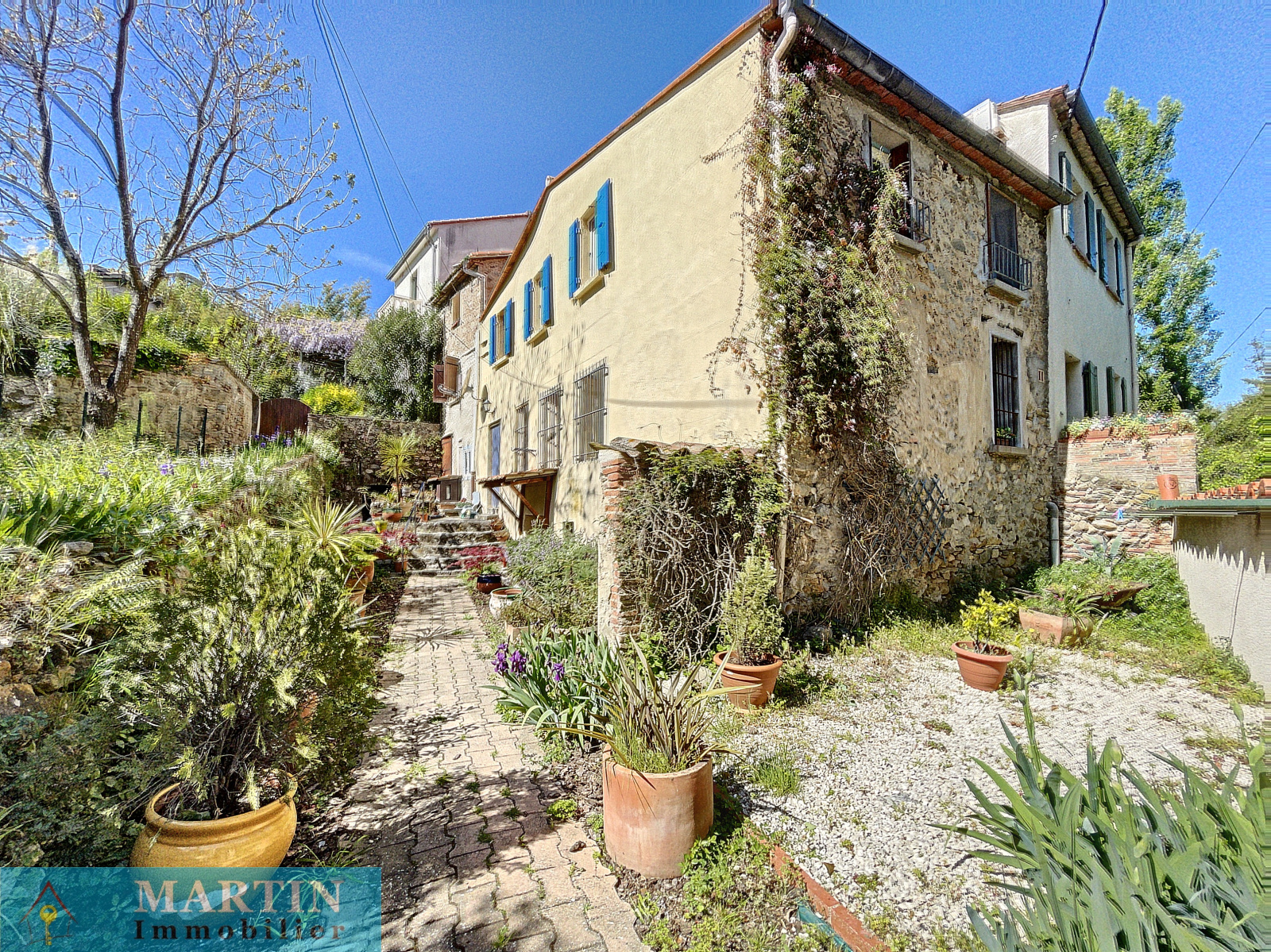 Céret centre : Idéalement située de par sa proximité avec les commerces, restaurants et les galeries d’art, cette charmante maison de village dispose de 7 pièces et un jardin d’environ 350 m².