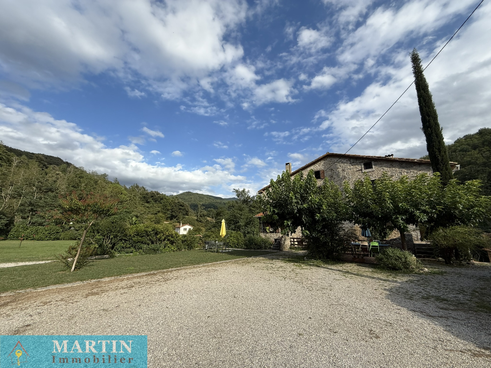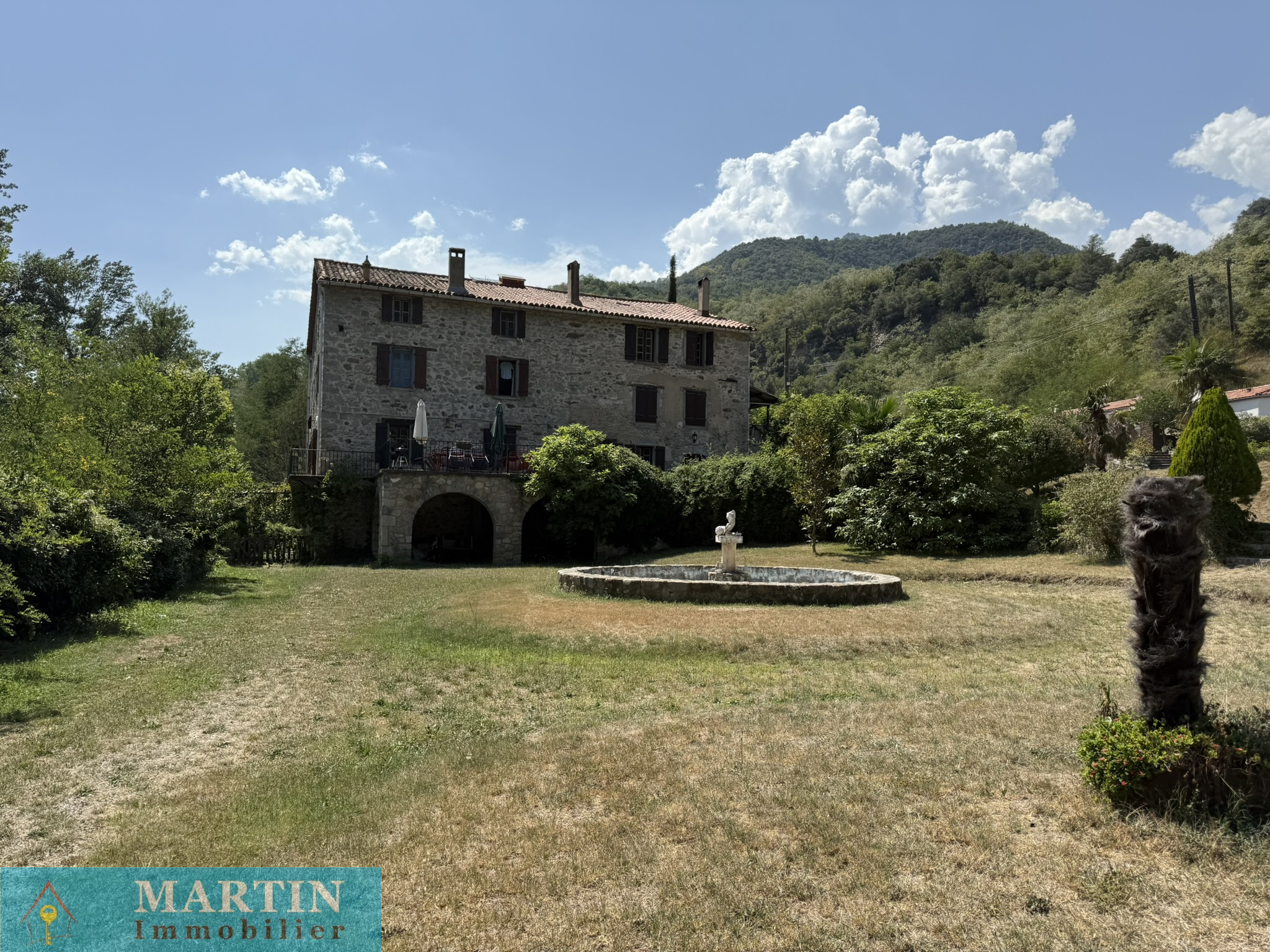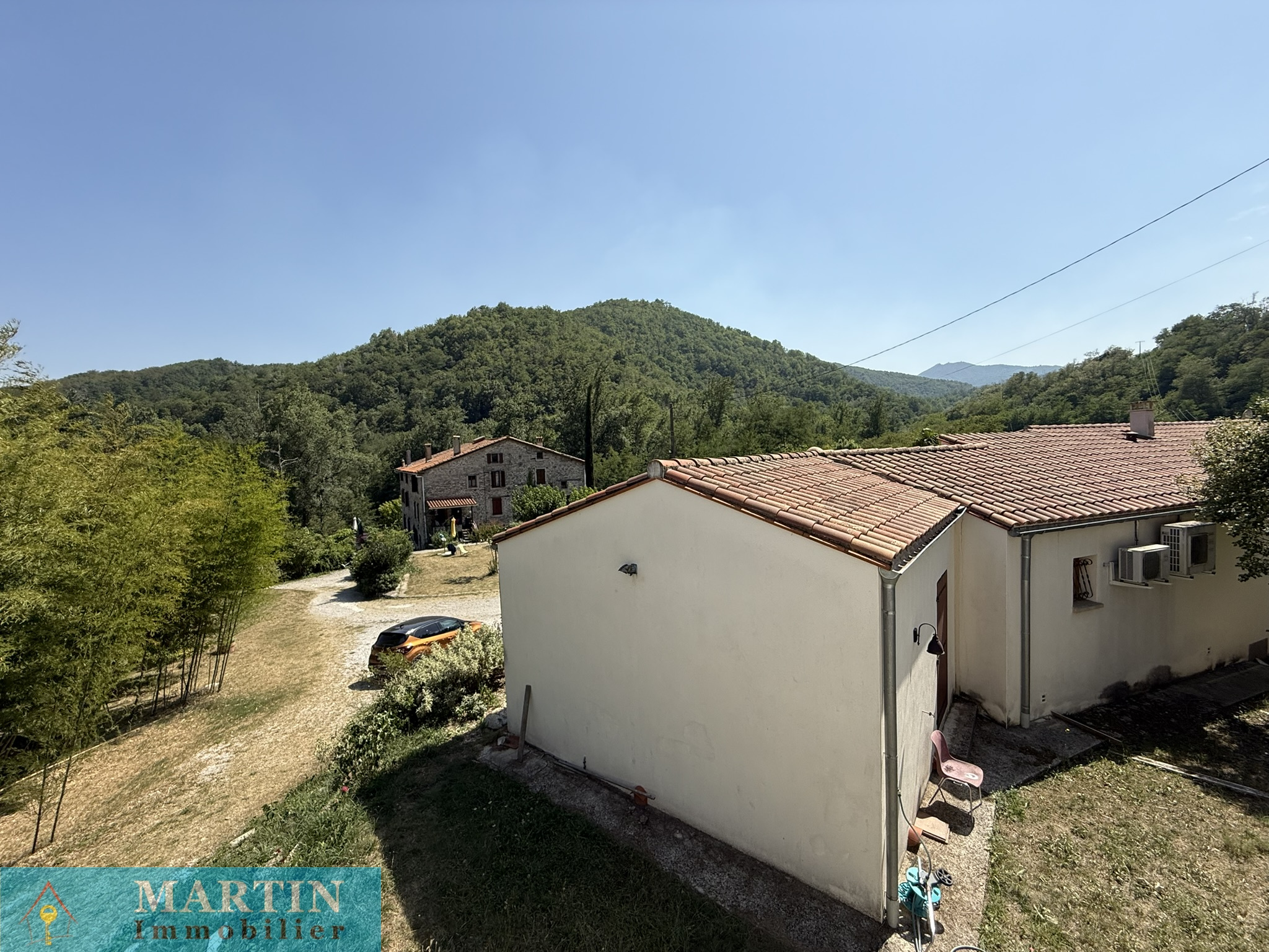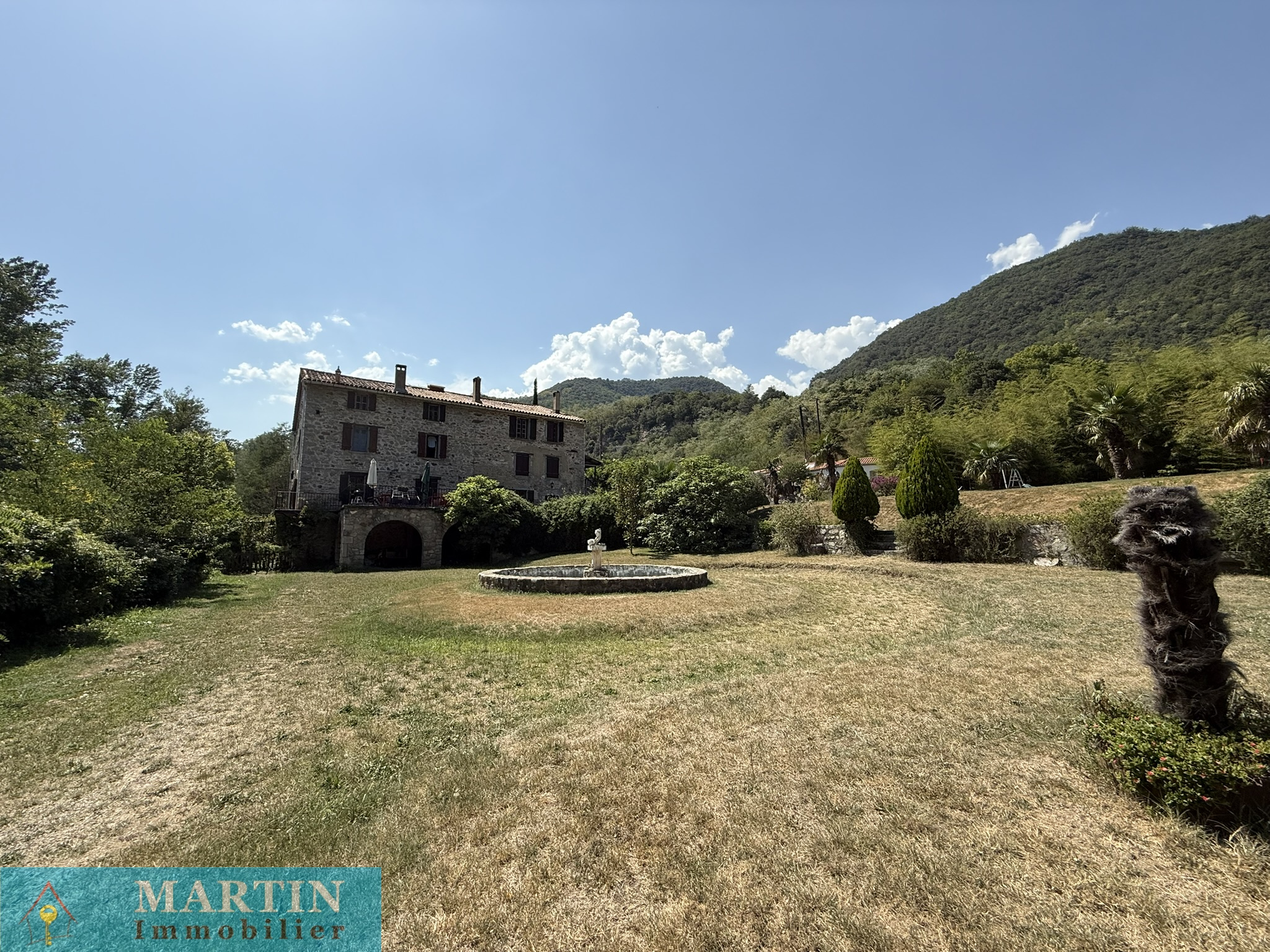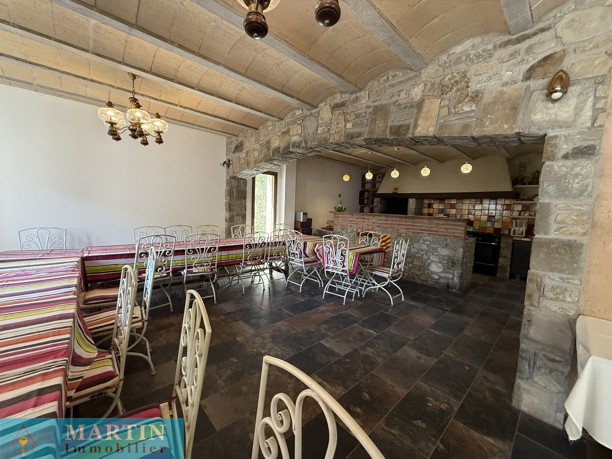 Située au sein d’un hameau paisible, cette propriété unique offre un accès privé à une rivière, entourée de forêts et de champs, alliant tranquillité et proximité des grands axes routiers. À seulement 20 minutes de l’Espagne, 50 minutes de Perpignan et de la mer, cette vaste demeure conjugue confort et authenticité. Cette propriété d’environ 770 m² habitables se compose d’un grand mas en pierres rénové d'environ 569m² habitable, réparti en 6 gîtes exploités en chambres d’hôtes 3 étoiles, une salle de réception, ainsi que 3 bâtiments principaux et 4 dépendances, le tout sur environ 7 hectares de prairies et forêts. L’habitation principale, construite en 2010, de plain-pied, de type T4 d’environ 129m², comprend un salon, une cuisine équipée, trois chambres (dont une avec salle d’eau attenante), salle de bains, deux WC, une cave et bénéficie d’une climatisation gainable. Un autre bâtiment, datant de 2013, abrite une salle de réception avec cuisine et WC, avec un appartement en cours de finition à l'étage. À l’extérieur, profitez d’une magnifique piscine de 20x5 mètres avec sa terrasse, d’une chapelle, d’un terrain de jeux, d’installations pour enfants et de petites plages au bord de la rivière, un atelier, une grange, une écurie et un espace de stockage. Terrain 6,5 hectares.
