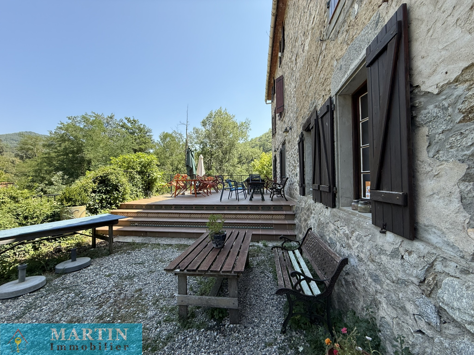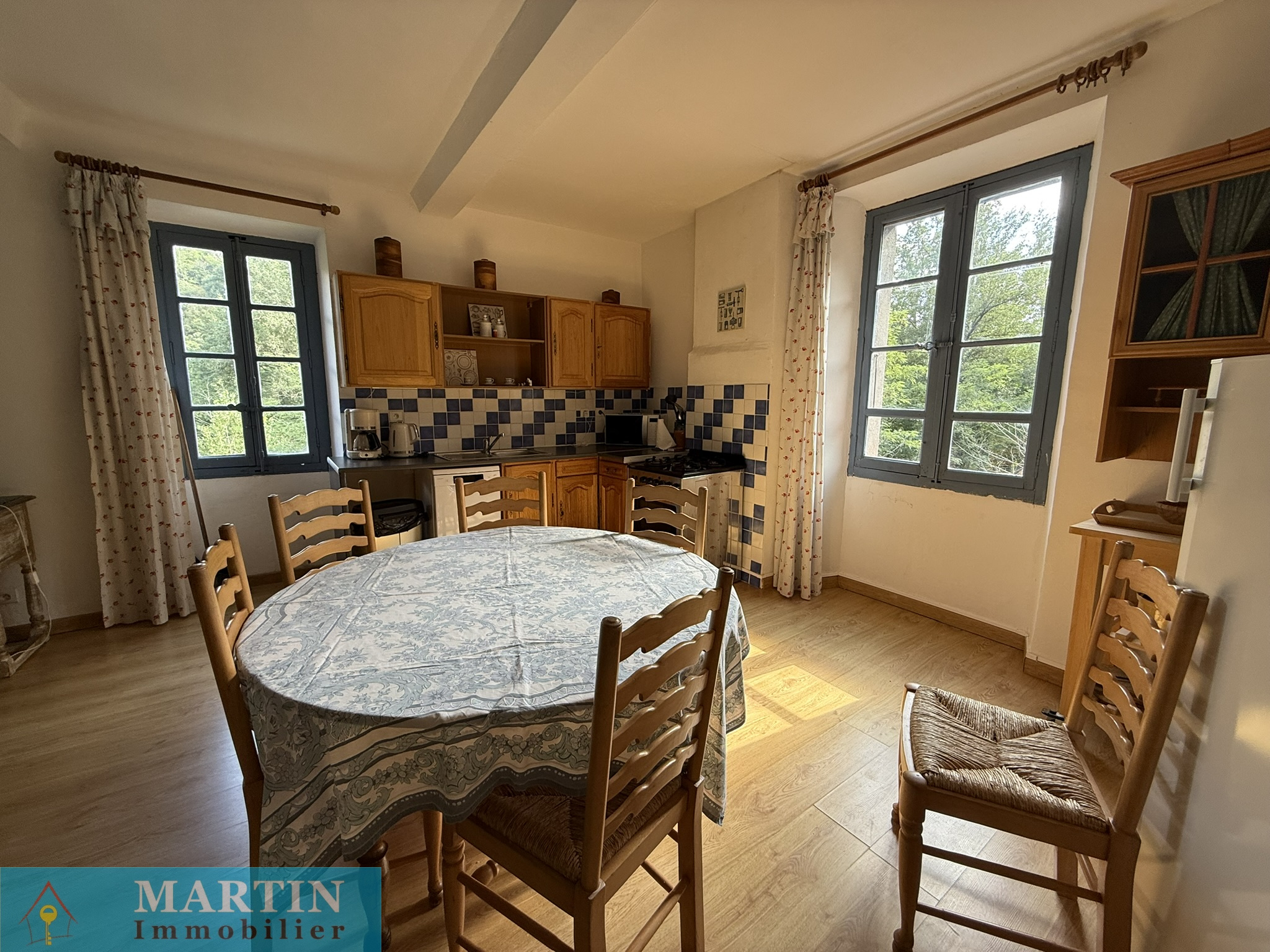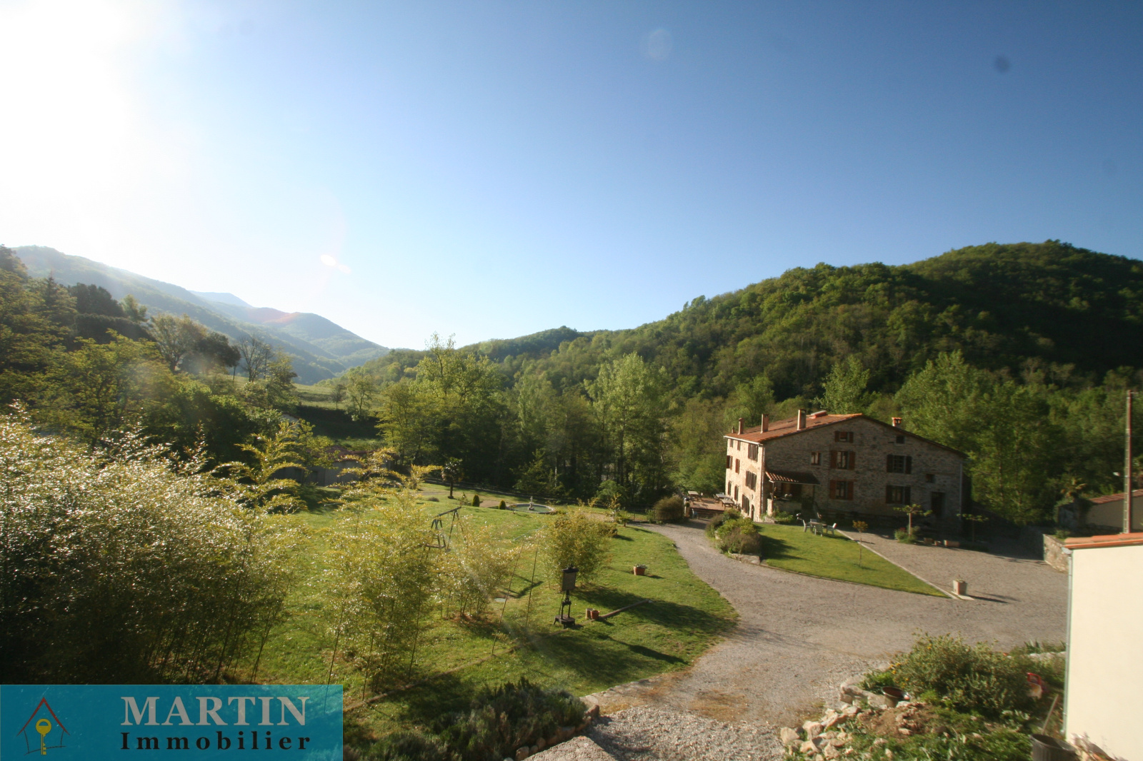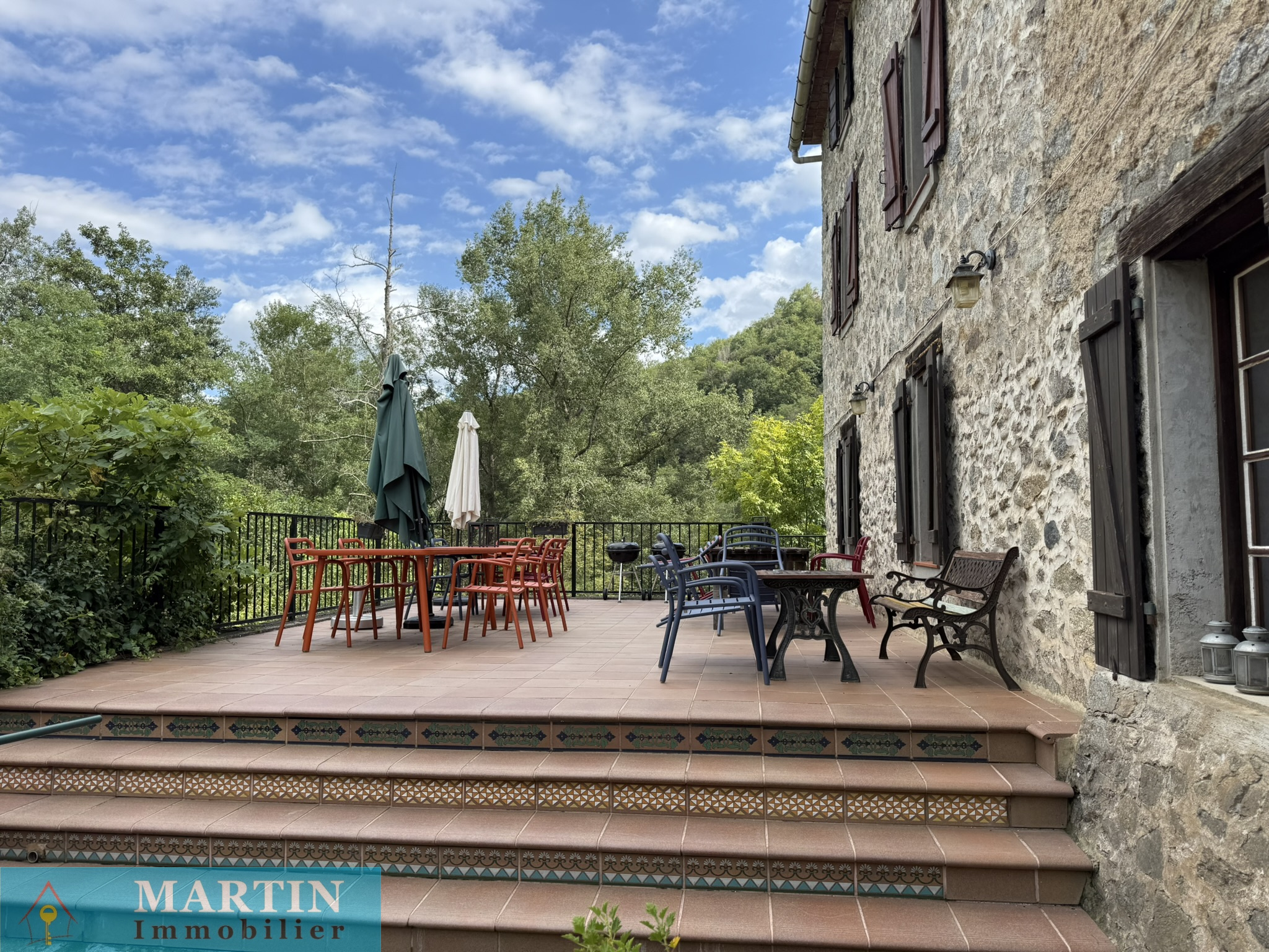 Située au sein d’un hameau paisible, cette propriété unique offre un accès privé à une rivière, entourée de forêts et de champs, alliant tranquillité et proximité des grands axes routiers. À seulement 20 minutes de l’Espagne, 50 minutes de Perpignan et de la mer, cette vaste demeure conjugue confort et authenticité. Cette propriété d’environ 770 m² habitables se compose d’un grand mas en pierres rénové d'environ 569m² habitable, réparti en 6 gîtes exploités en chambres d’hôtes 3 étoiles, une salle de réception, ainsi que 3 bâtiments principaux et 4 dépendances, le tout sur environ 7 hectares de prairies et forêts. L’habitation principale, construite en 2010, de plain-pied, de type T4 d’environ 129m², comprend un salon, une cuisine équipée, trois chambres (dont une avec salle d’eau attenante), salle de bains, deux WC, une cave et bénéficie d’une climatisation gainable. Un autre bâtiment, datant de 2013, abrite une salle de réception avec cuisine et WC, avec un appartement en cours de finition à l'étage. À l’extérieur, profitez d’une magnifique piscine de 20x5 mètres avec sa terrasse, d’une chapelle, d’un terrain de jeux, d’installations pour enfants et de petites plages au bord de la rivière, un atelier, une grange, une écurie et un espace de stockage. Terrain 6,5 hectares.