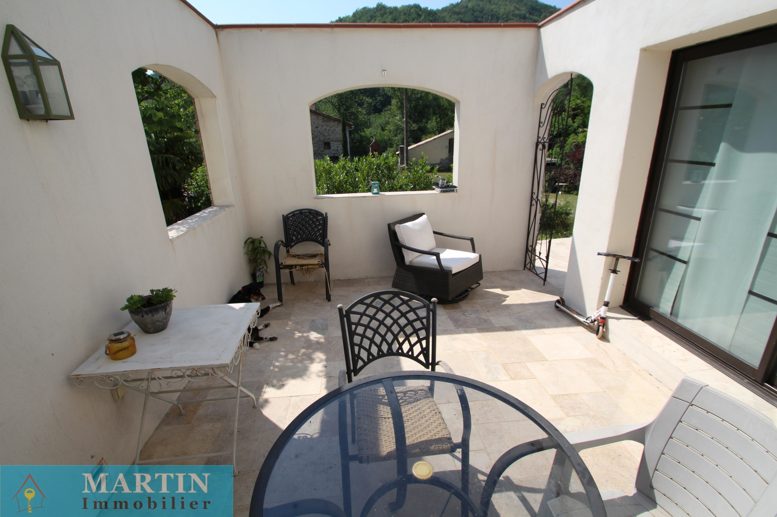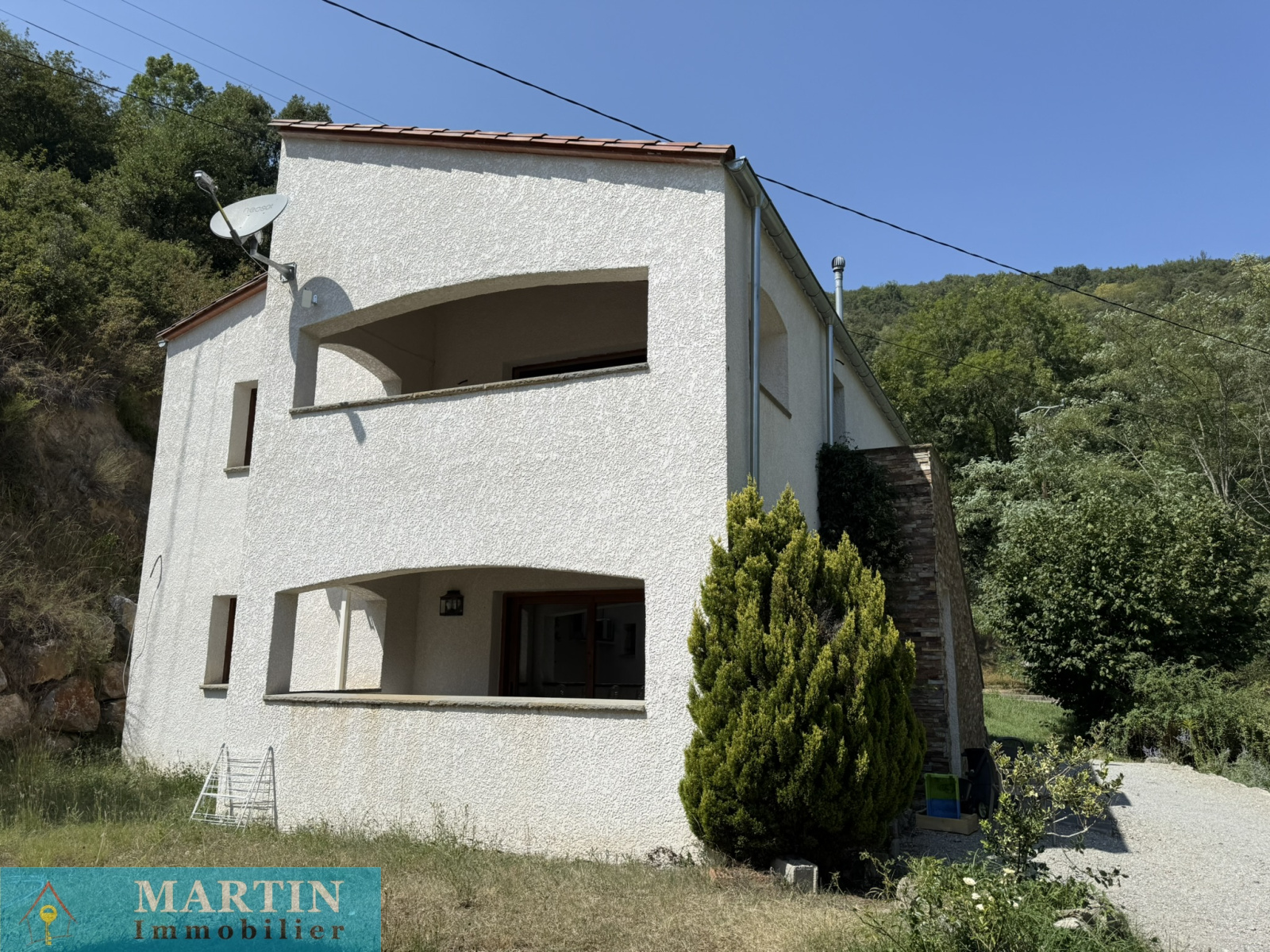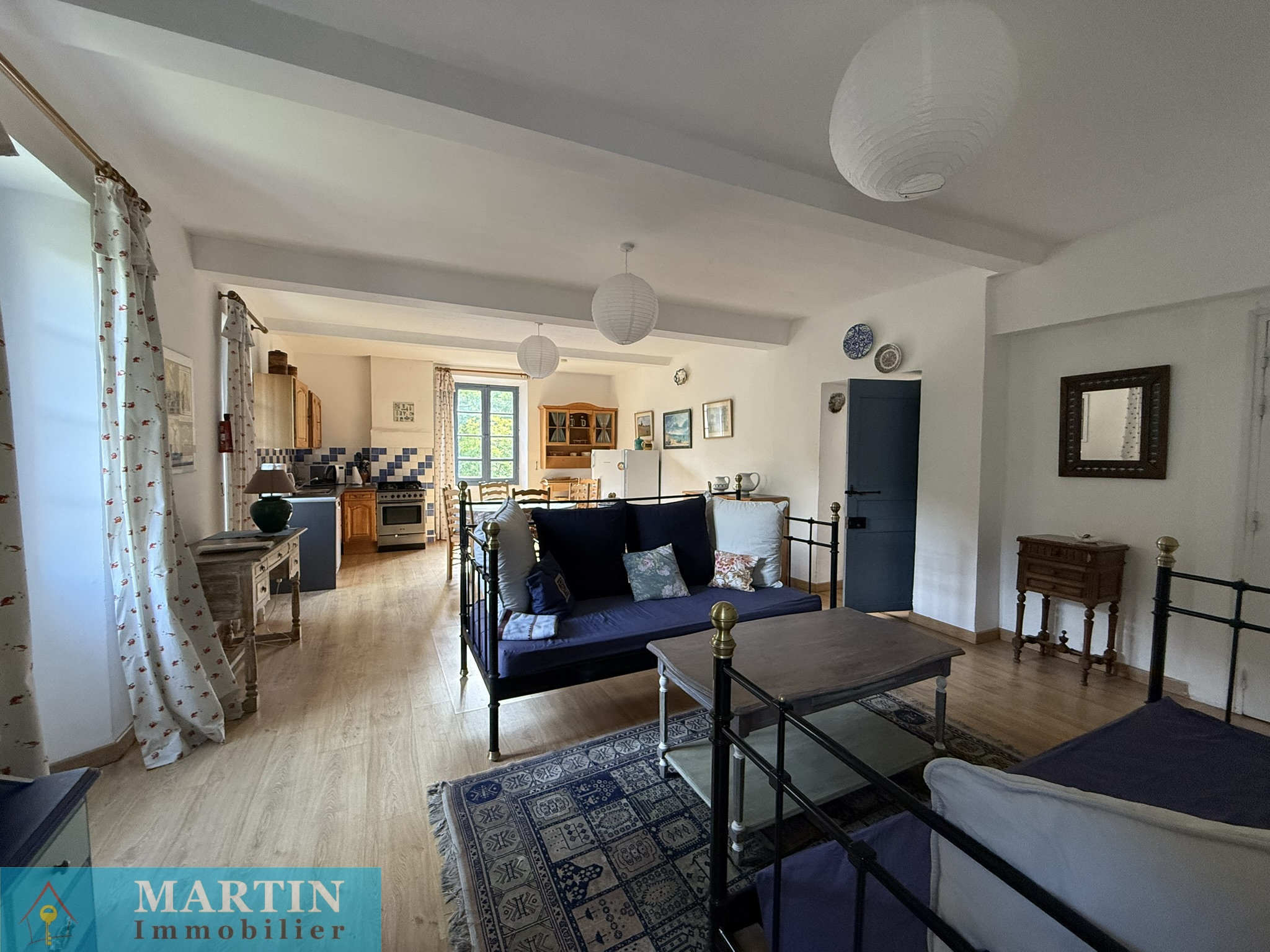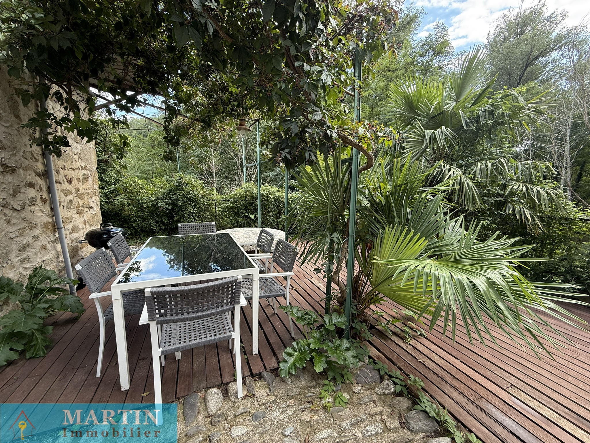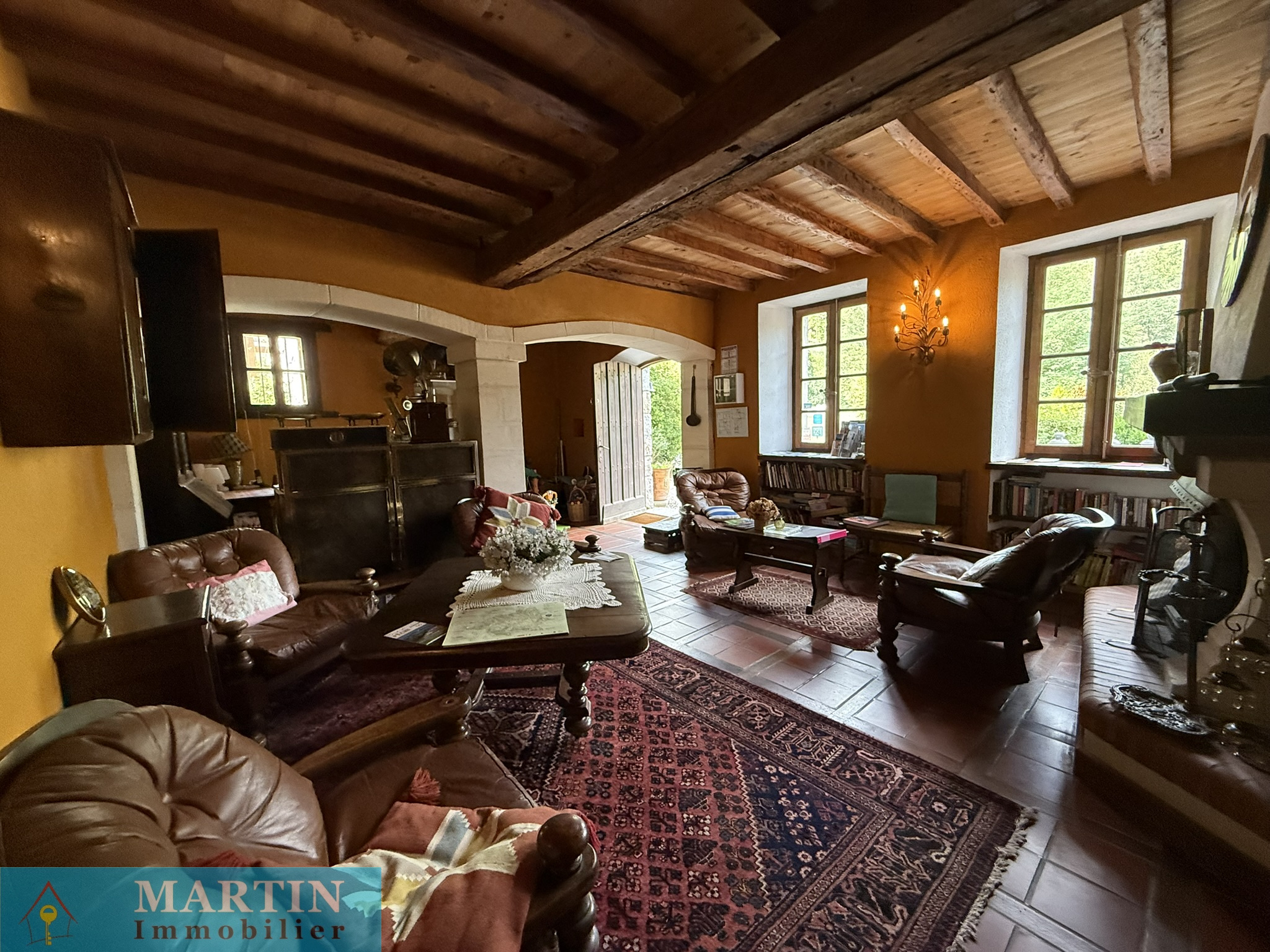 Située au sein d’un hameau paisible, cette propriété unique offre un accès privé à une rivière, entourée de forêts et de champs, alliant tranquillité et proximité des grands axes routiers. À seulement 20 minutes de l’Espagne, 50 minutes de Perpignan et de la mer, cette vaste demeure conjugue confort et authenticité. Cette propriété d’environ 770 m² habitables se compose d’un grand mas en pierres rénové d'environ 569m² habitable, réparti en 6 gîtes exploités en chambres d’hôtes 3 étoiles, une salle de réception, ainsi que 3 bâtiments principaux et 4 dépendances, le tout sur environ 7 hectares de prairies et forêts. L’habitation principale, construite en 2010, de plain-pied, de type T4 d’environ 129m², comprend un salon, une cuisine équipée, trois chambres (dont une avec salle d’eau attenante), salle de bains, deux WC, une cave et bénéficie d’une climatisation gainable. Un autre bâtiment, datant de 2013, abrite une salle de réception avec cuisine et WC, avec un appartement en cours de finition à l'étage. À l’extérieur, profitez d’une magnifique piscine de 20x5 mètres avec sa terrasse, d’une chapelle, d’un terrain de jeux, d’installations pour enfants et de petites plages au bord de la rivière, un atelier, une grange, une écurie et un espace de stockage. Terrain 6,5 hectares.