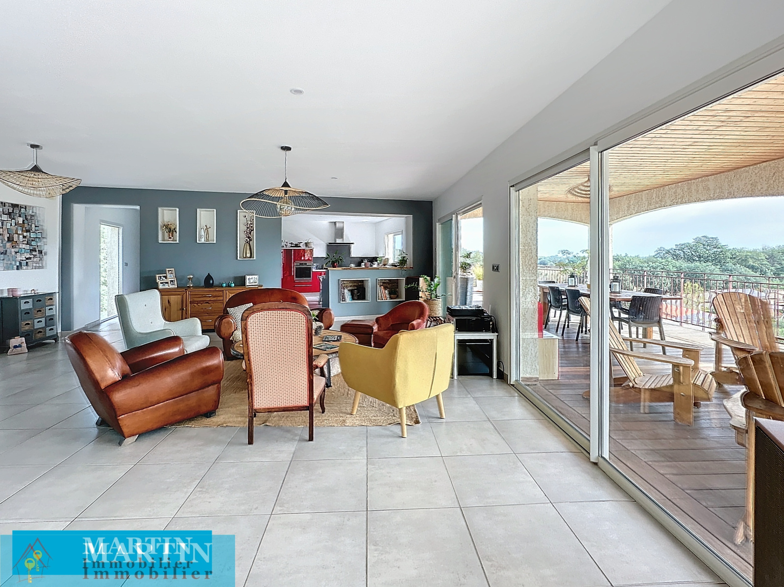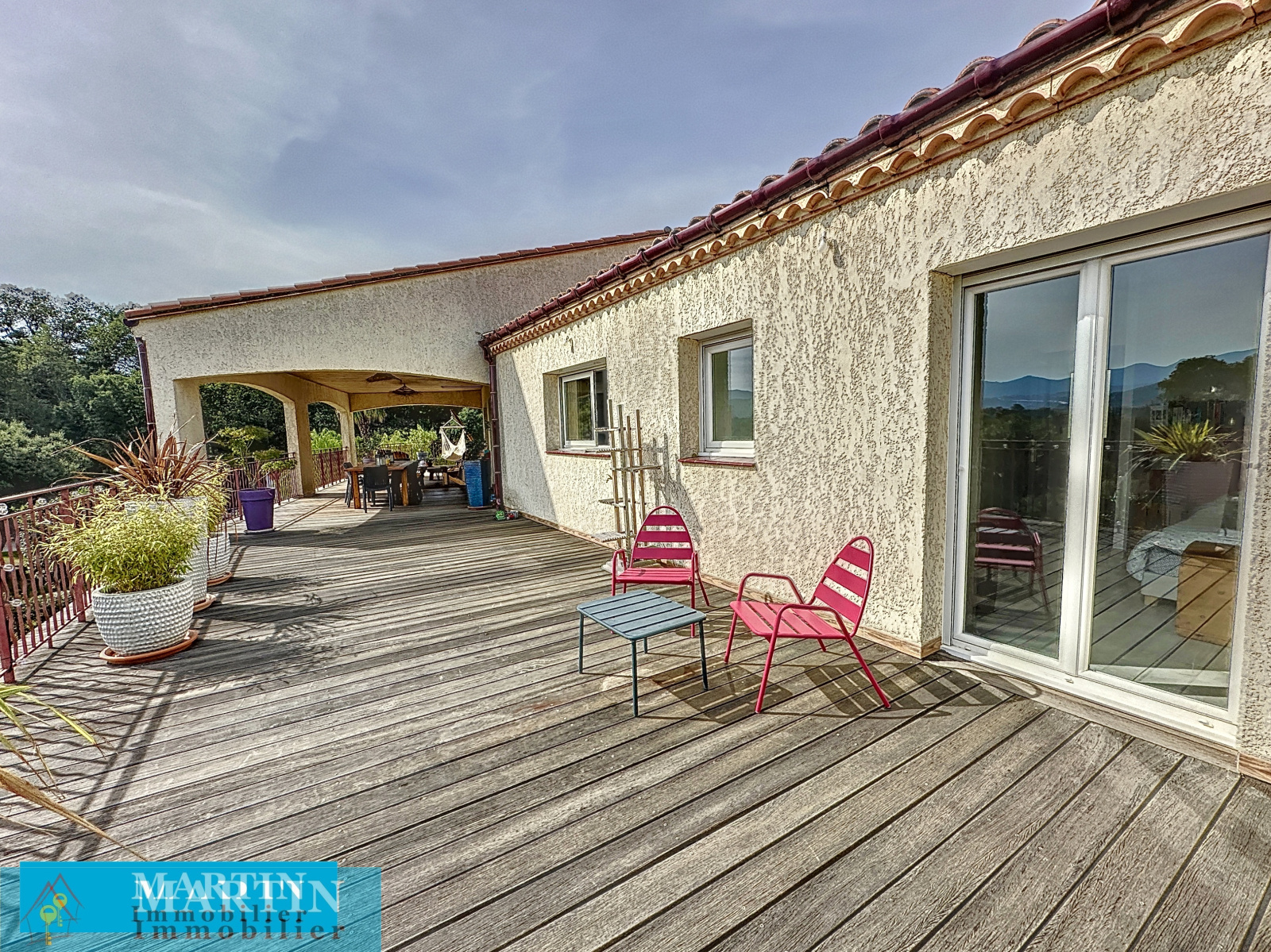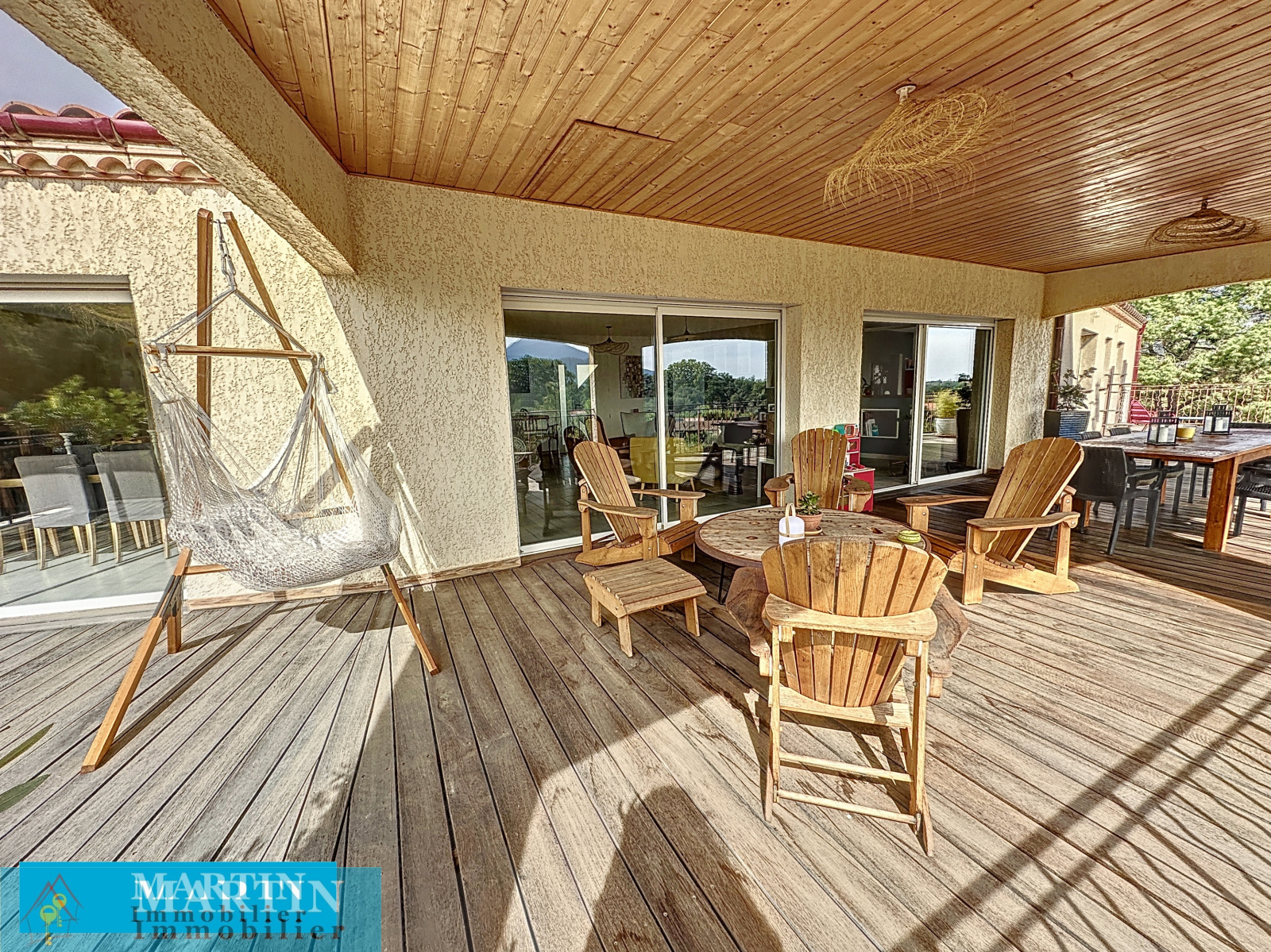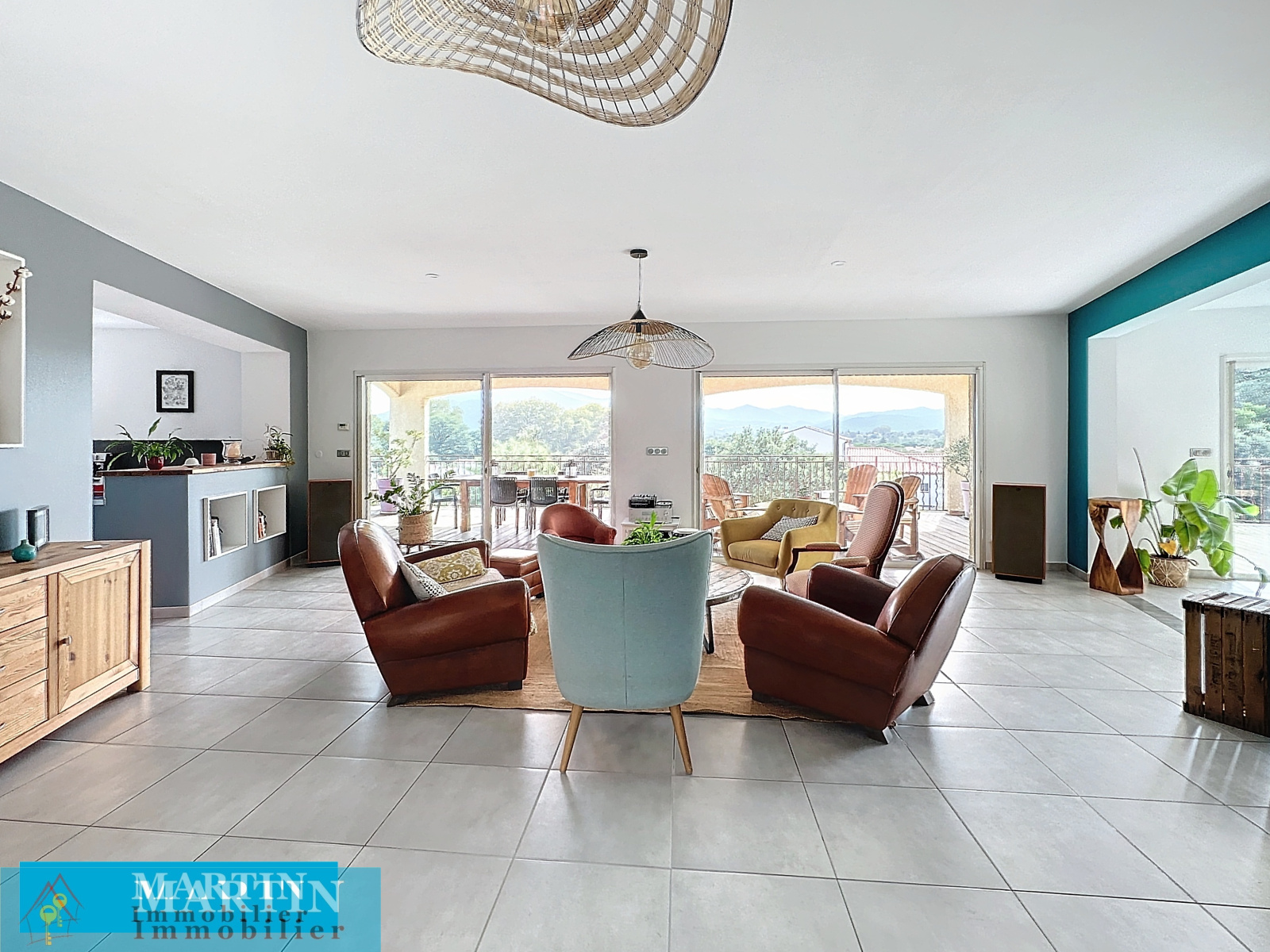 SAINT JEAN PLA DE CORTS, villa moderne d'environ 313 m² habitable sur une parcelle clôturée de 3340m² avec piscine et une vue époustouflante. Celle-ci est composée en rez-de-chaussée d'une grande pièce à vivre d'environ 100 m² donnant sur une belle terrasse en partie couverte, une suite parentale (dressing et salle d'eau) donnant sur la terrasse, un bureau et un WC indépendant. Le rez-de-jardin comprend 2 chambres, une salle d'eau, un WC indépendant et un appartement indépendant comprenant un salon / cuisine, 2 chambres, une chambre aveugle, une salle d'eau et un WC. Un garage d'environ 80 m² avec 2 portes motorisées. Piscine carrelée 4m x 7m traitée au sel. Prestations de qualité, chauffage au sol, double vitrage, portail électrique. Volumes très rares sur le marché, proche de toutes commodités.