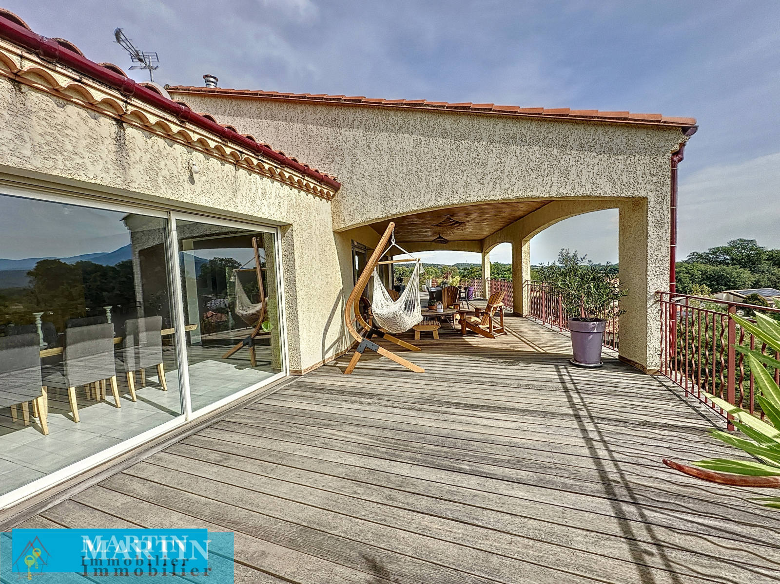 SAINT JEAN PLA DE CORTS, villa moderne d'environ 313 m² habitable sur une parcelle clôturée de 3340m² avec piscine et une vue époustouflante. Celle-ci est composée en rez-de-chaussée d'une grande pièce à vivre d'environ 100 m² donnant sur une belle terrasse en partie couverte, une suite parentale (dressing et salle d'eau) donnant sur la terrasse, un bureau et un WC indépendant. Le rez-de-jardin comprend 2 chambres, une salle d'eau, un WC indépendant et un appartement indépendant comprenant un salon / cuisine, 2 chambres, une chambre aveugle, une salle d'eau et un WC. Un garage d'environ 80 m² avec 2 portes motorisées. Piscine carrelée 4m x 7m traitée au sel. Prestations de qualité, chauffage au sol, double vitrage, portail électrique. Volumes très rares sur le marché, proche de toutes commodités.