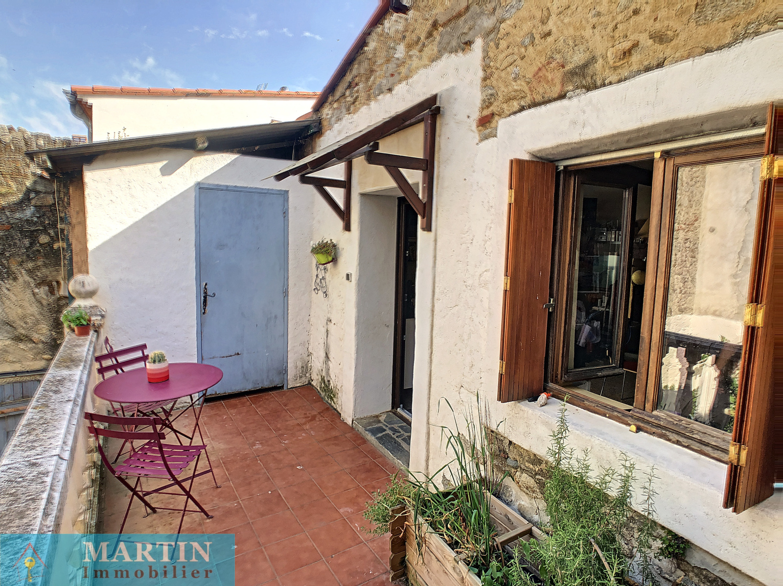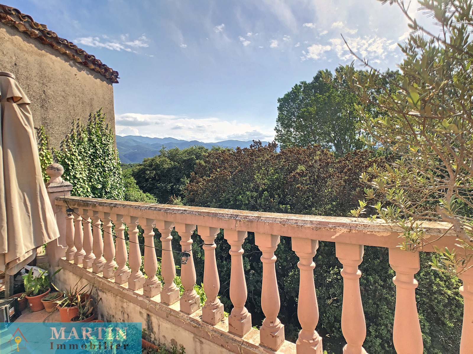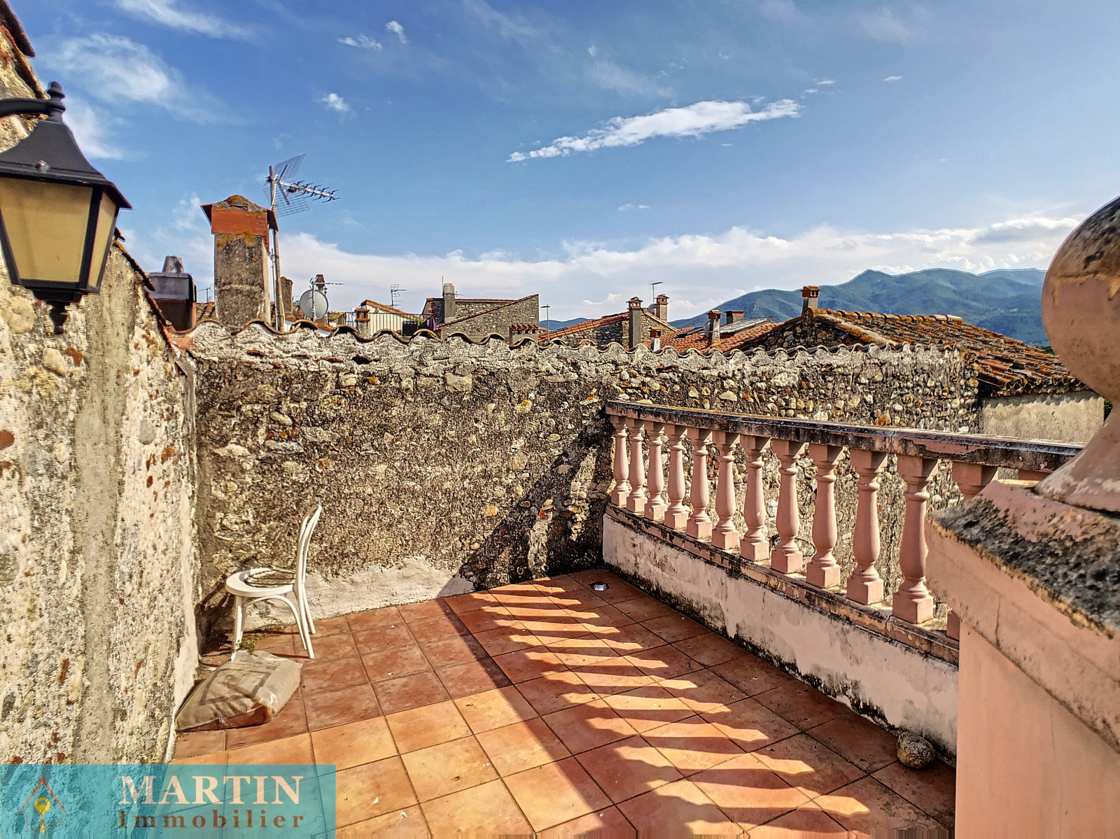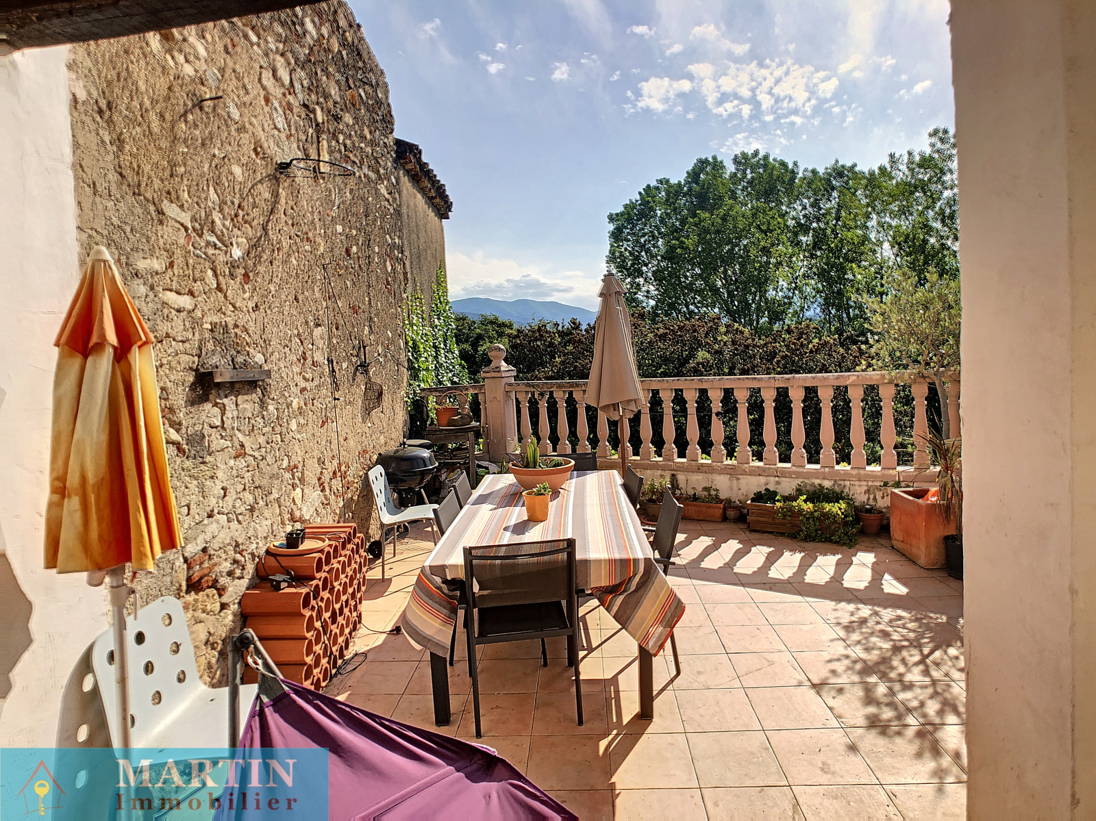 Au coeur du centre historique de Saint Jean Pla de Corts, au calme et à proximité des commerces, maison de village atypique avec 2 belles et grandes terrasses offrant une vue imprenable sur les Albères, les Aspres et le Canigou.
