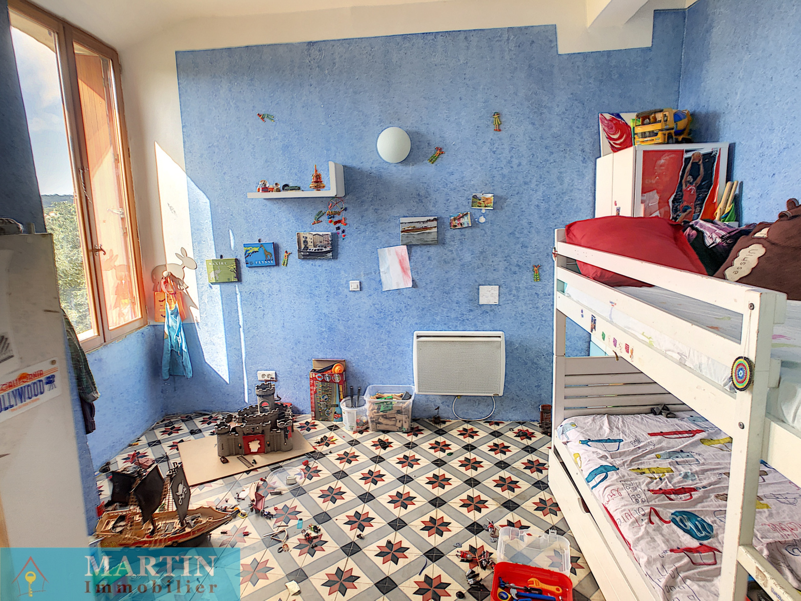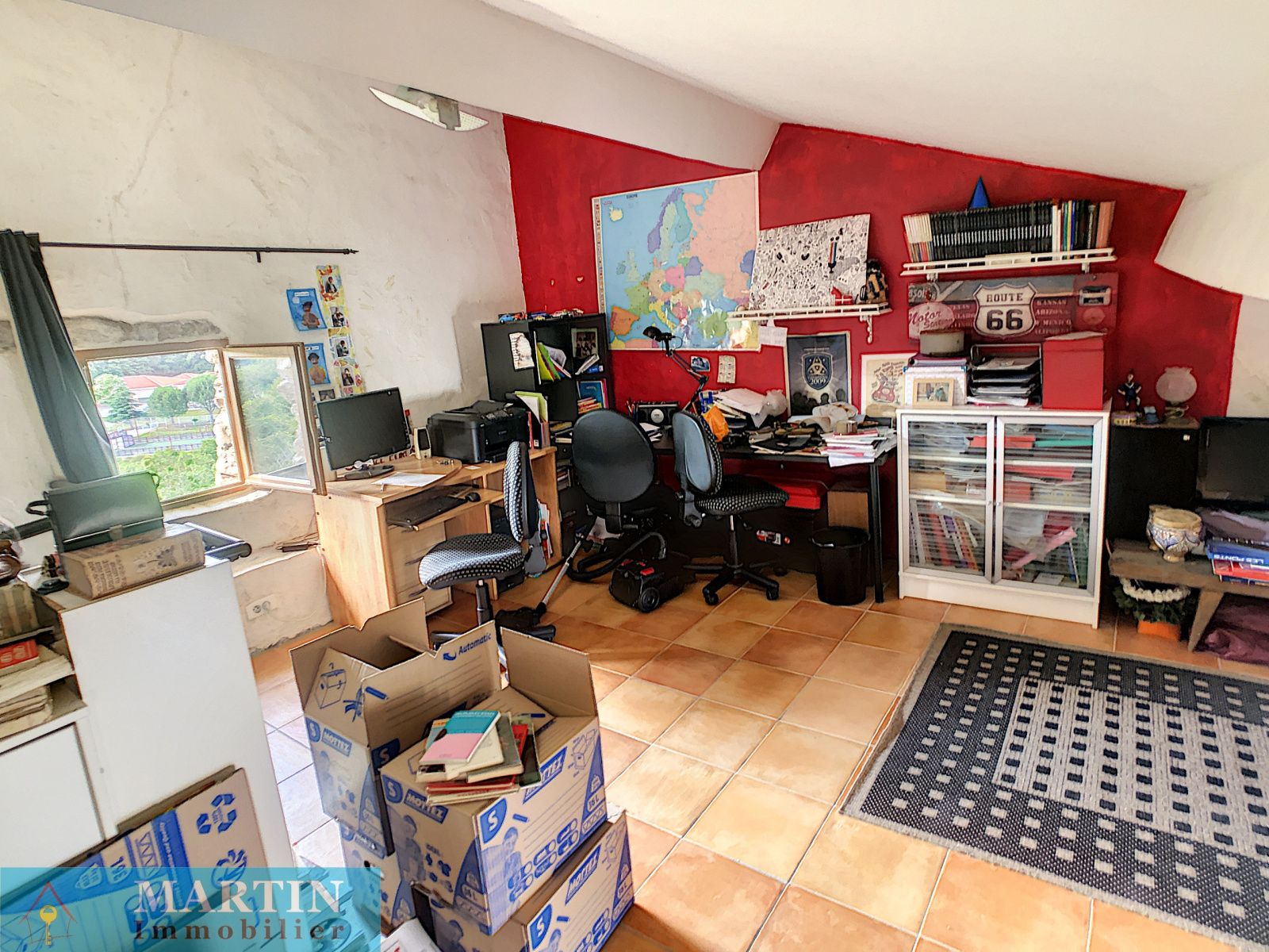 Composée d'une pièce à vivre d'environ 33 m², trois chambres dont deux avec salle d'eau, une salle de bains avec wc, un salon, un espace bureau mansardé et des combles aménagés pour rangement.