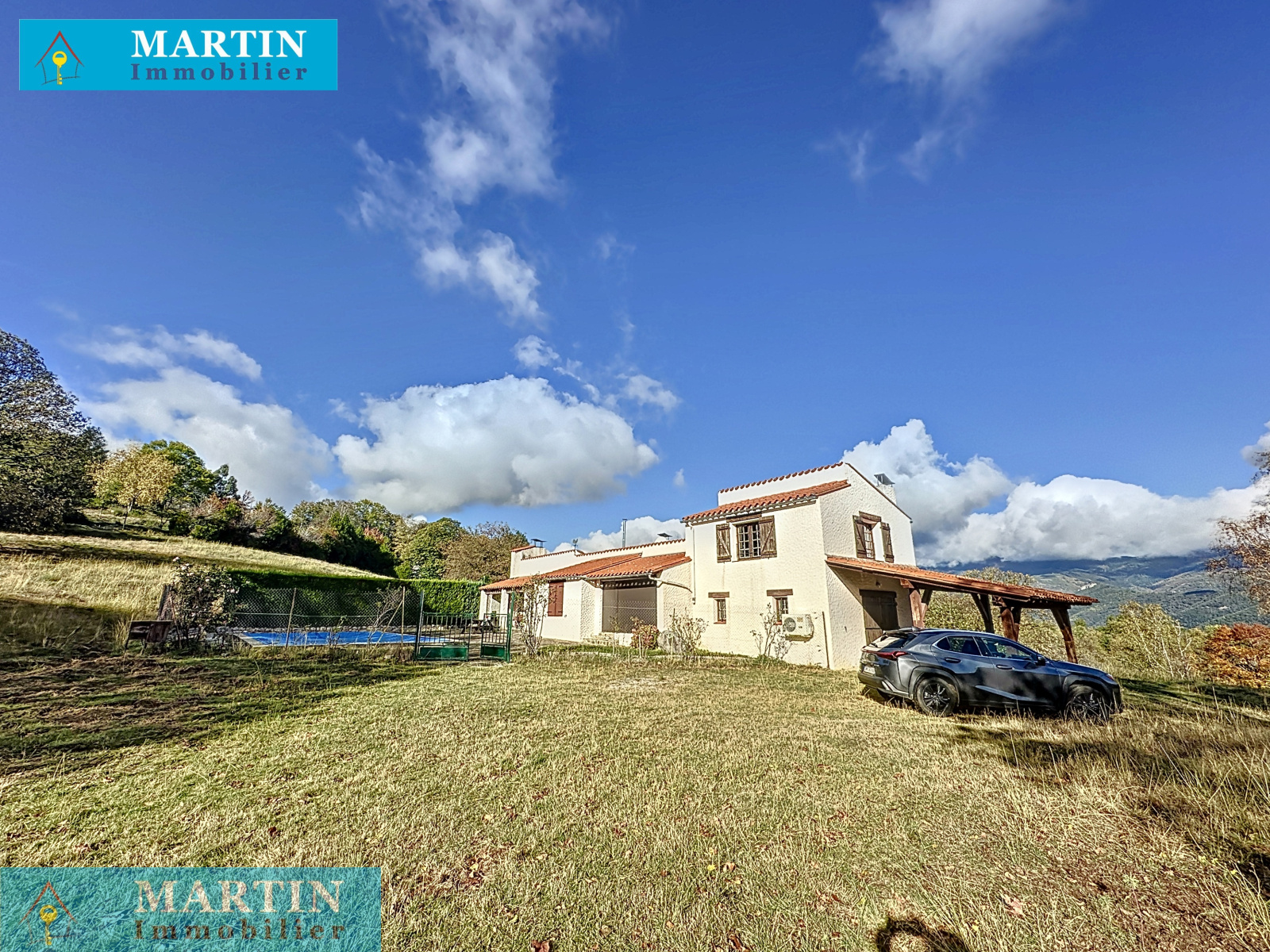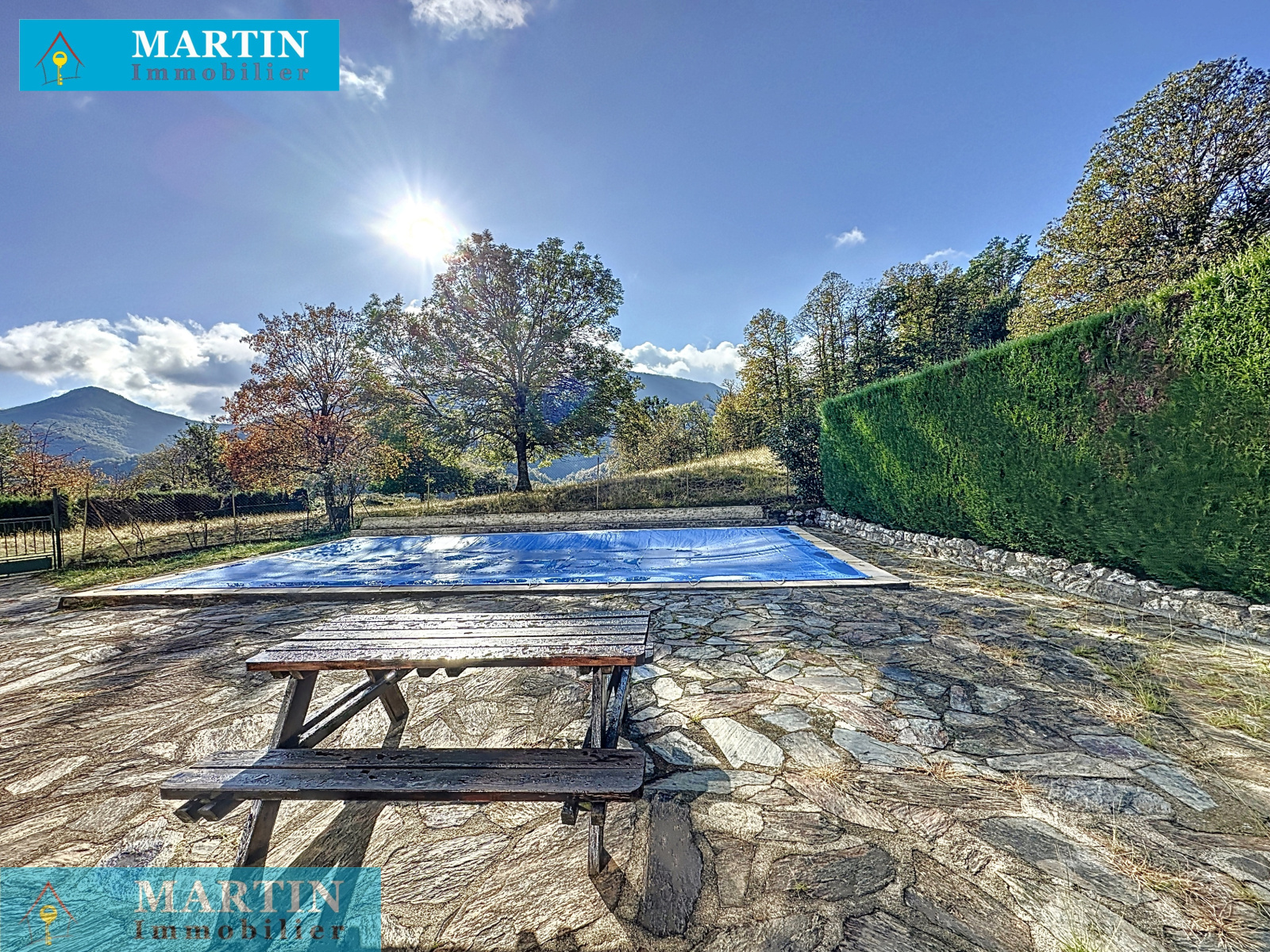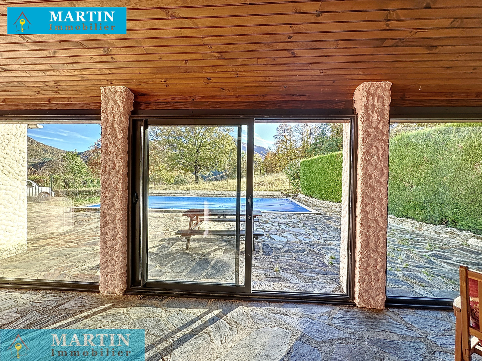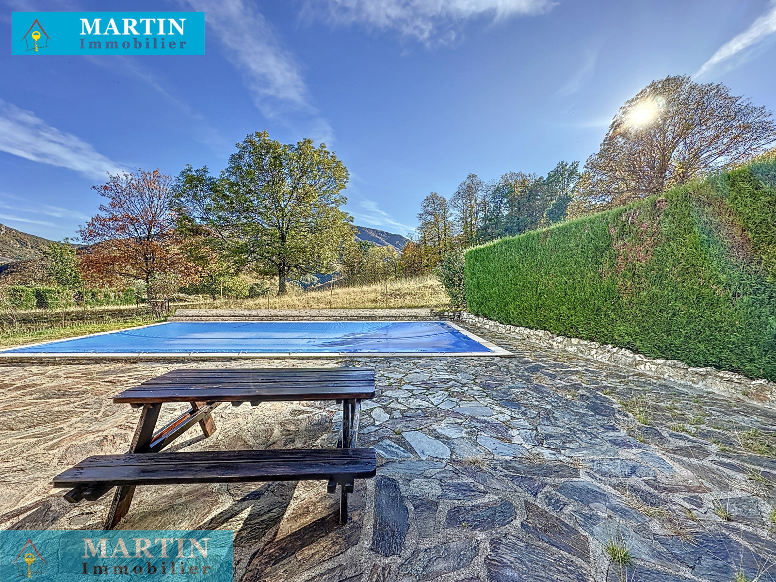 Idéalement située à 830 m d’altitude avec une vue époustouflante et à 30 minutes des commerces. Jolie maison d'environ 132 m² habitables avec piscine sur 118.575 m² de terrain entièrement clôturé. La maison est composée en rez-de-chaussée d'un séjour / cuisine d'environ 40 m² avec cheminée, 2 chambres, une salle d'eau / WC, un WC indépendant, 2 vérandas, un garage d'environ 16 m² avec une salle d'eau WC. A l'étage une grande chambre d'environ 28 m² avec une vue panoramique. Survitrage. Chauffage au gaz (la chaudière a été changé en 2021). A l'extérieur une piscine chauffée 5 m x 10 m avec liner, deux hangars en bois d'environ 80 m² et un autre de 33 m². La maison est alimentée par l'eau de ville et une source. 2 hectares de prairie. Quelques travaux à prévoir (électricité, fosse septique et rafraichissements).