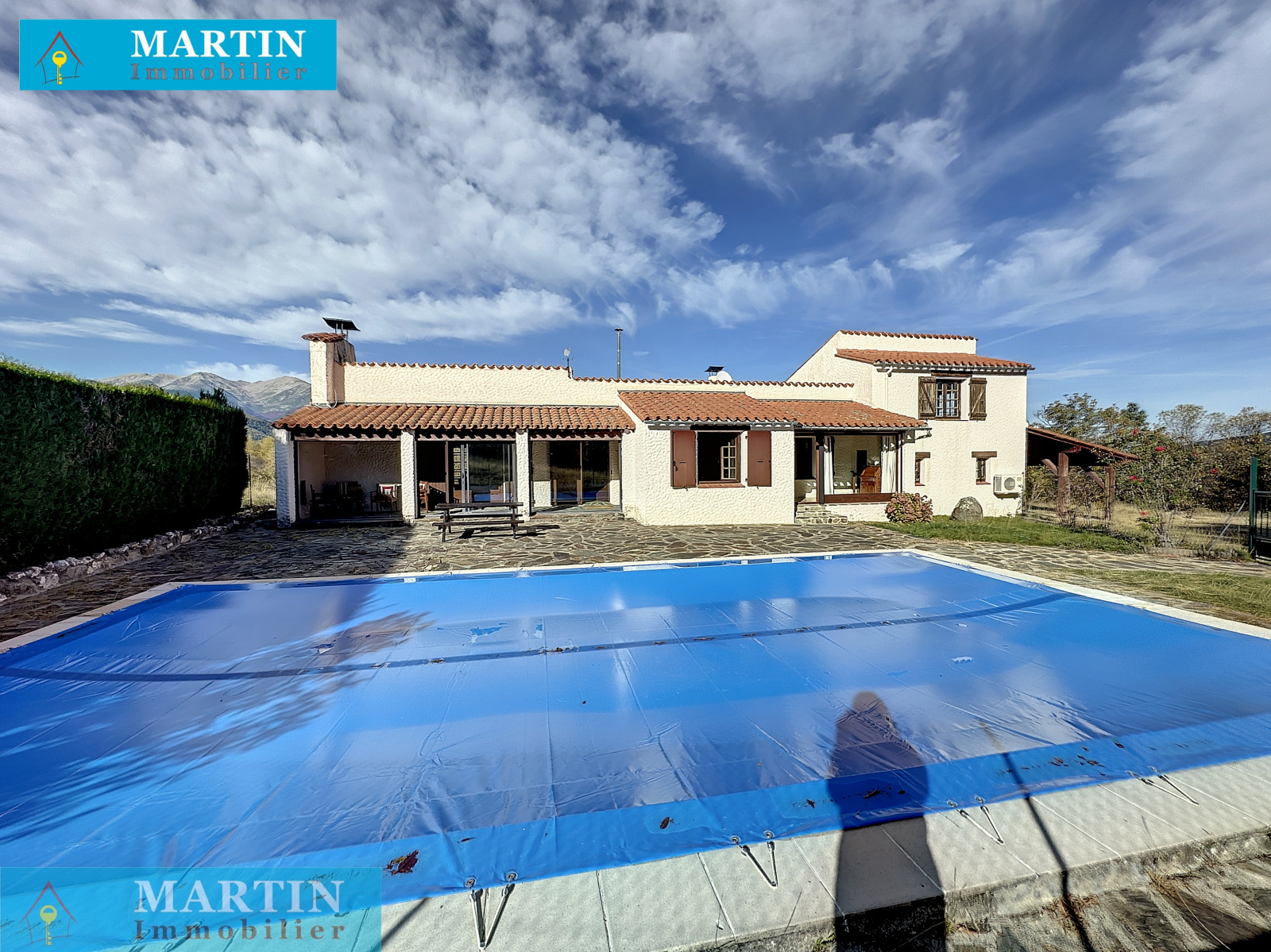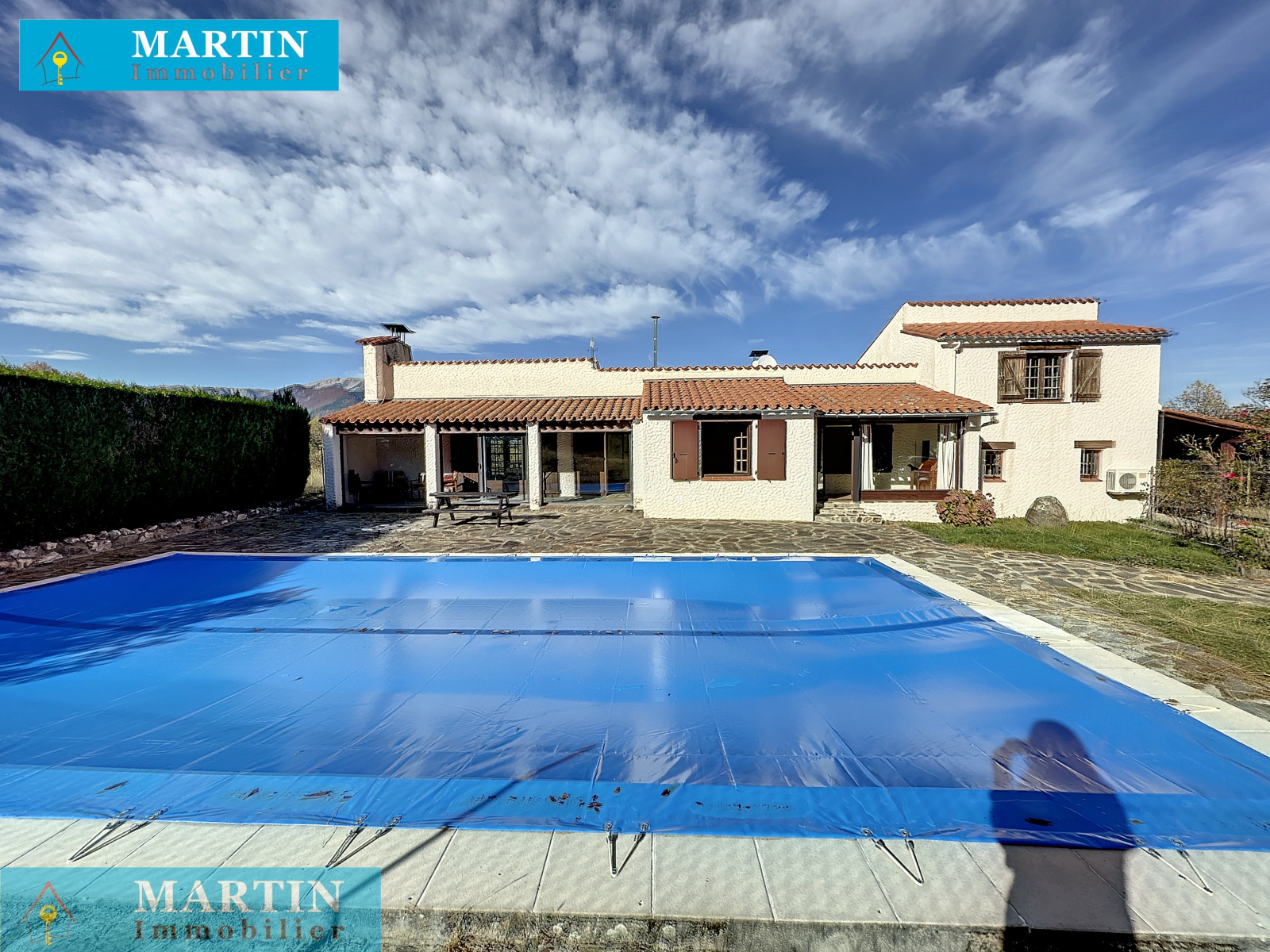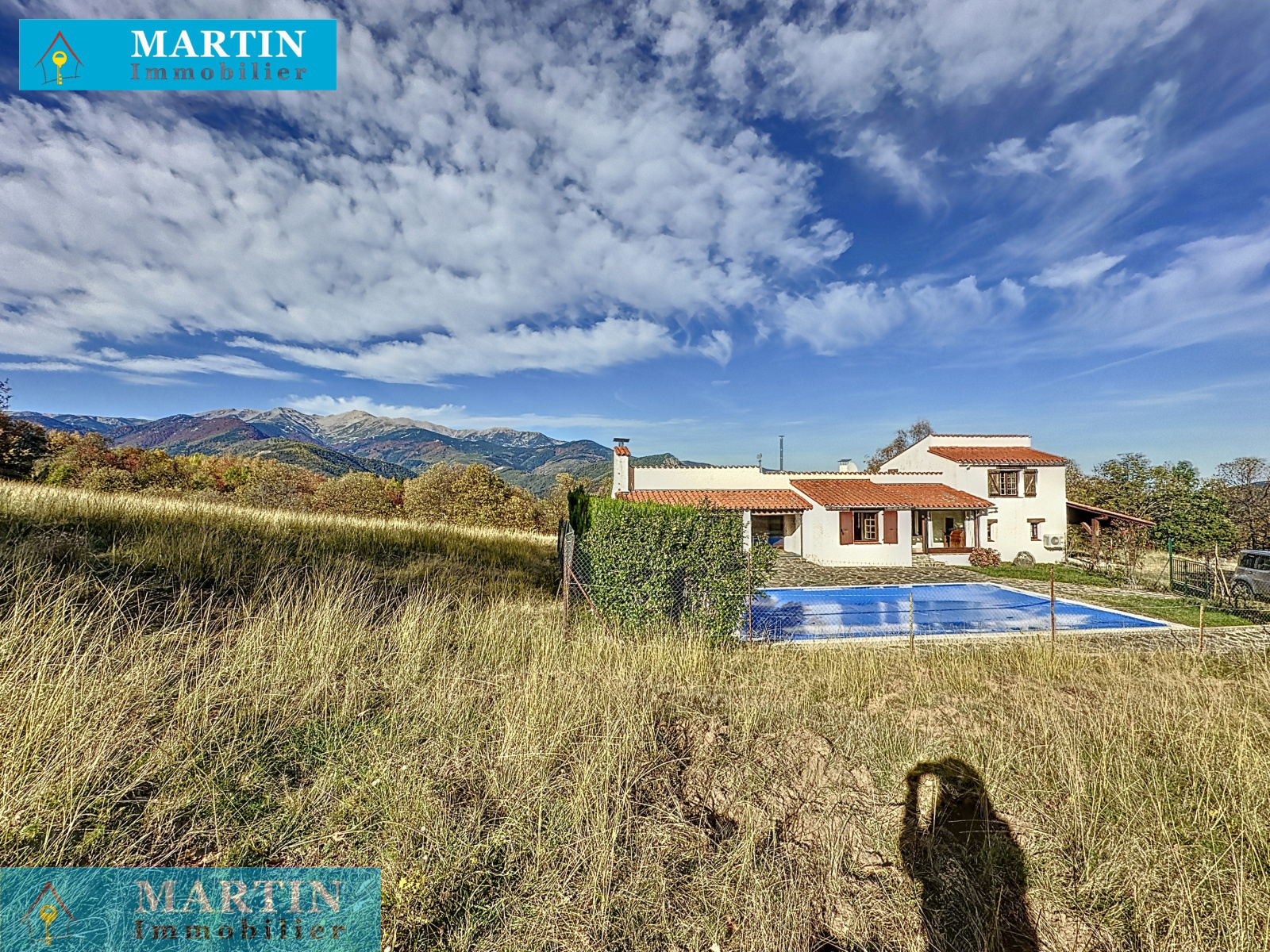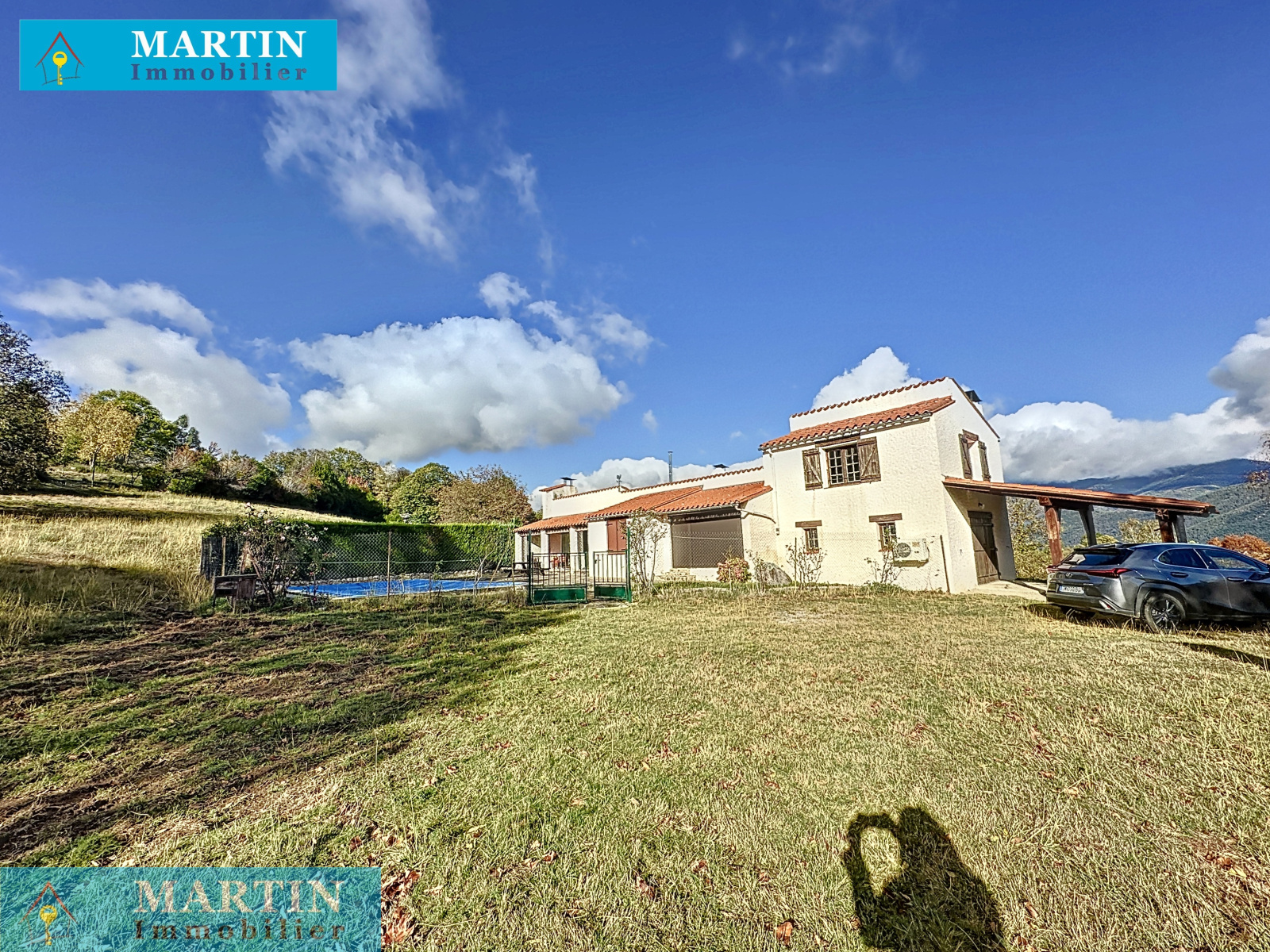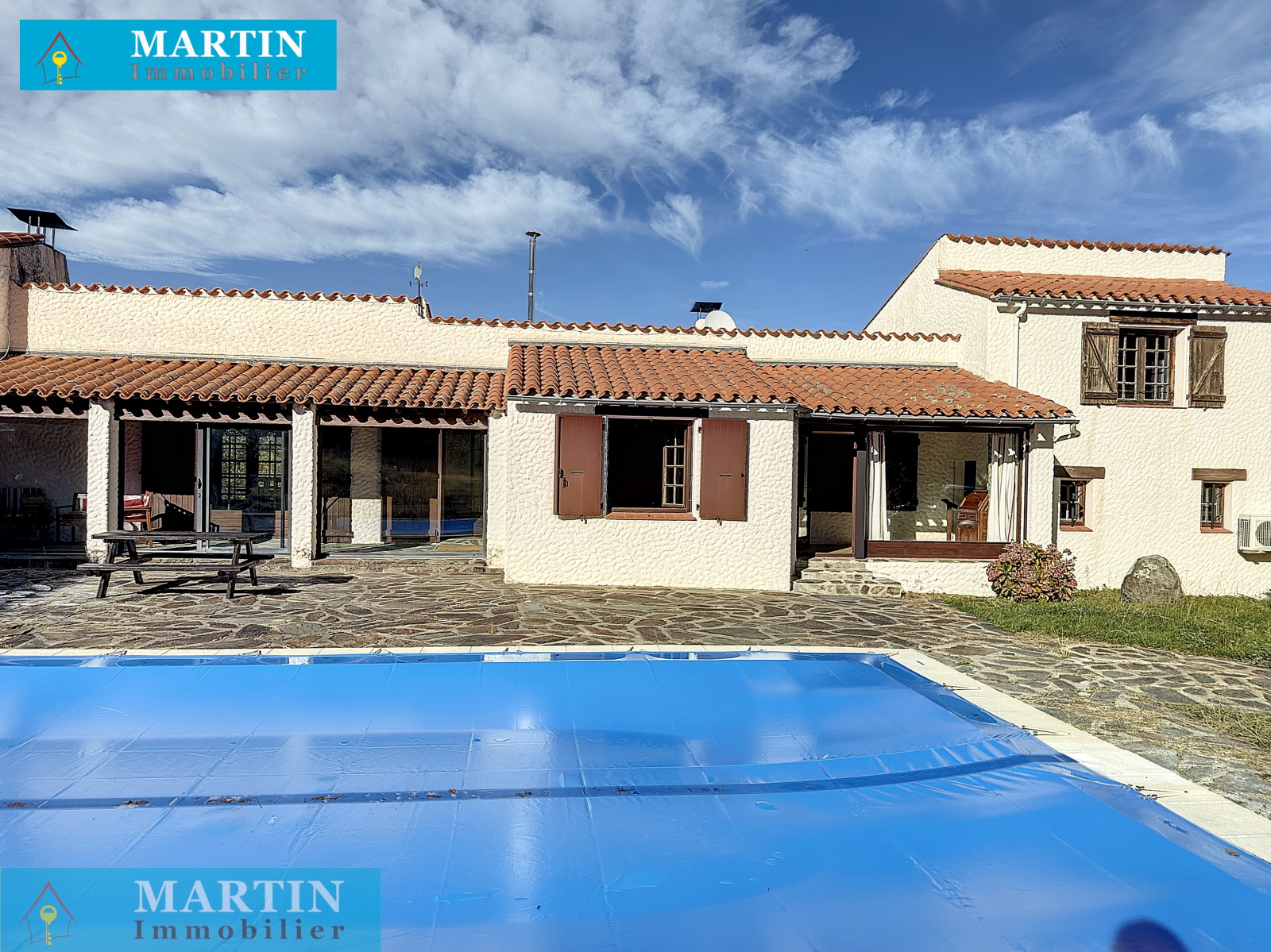 Idéalement située à 830 m d’altitude avec une vue époustouflante et à 30 minutes des commerces. Jolie maison d'environ 132 m² habitables avec piscine sur 118.575 m² de terrain entièrement clôturé. La maison est composée en rez-de-chaussée d'un séjour / cuisine d'environ 40 m² avec cheminée, 2 chambres, une salle d'eau / WC, un WC indépendant, 2 vérandas, un garage d'environ 16 m² avec une salle d'eau WC. A l'étage une grande chambre d'environ 28 m² avec une vue panoramique. Survitrage. Chauffage au gaz (la chaudière a été changé en 2021). A l'extérieur une piscine chauffée 5 m x 10 m avec liner, deux hangars en bois d'environ 80 m² et un autre de 33 m². La maison est alimentée par l'eau de ville et une source. 2 hectares de prairie. Quelques travaux à prévoir (électricité, fosse septique et rafraichissements).