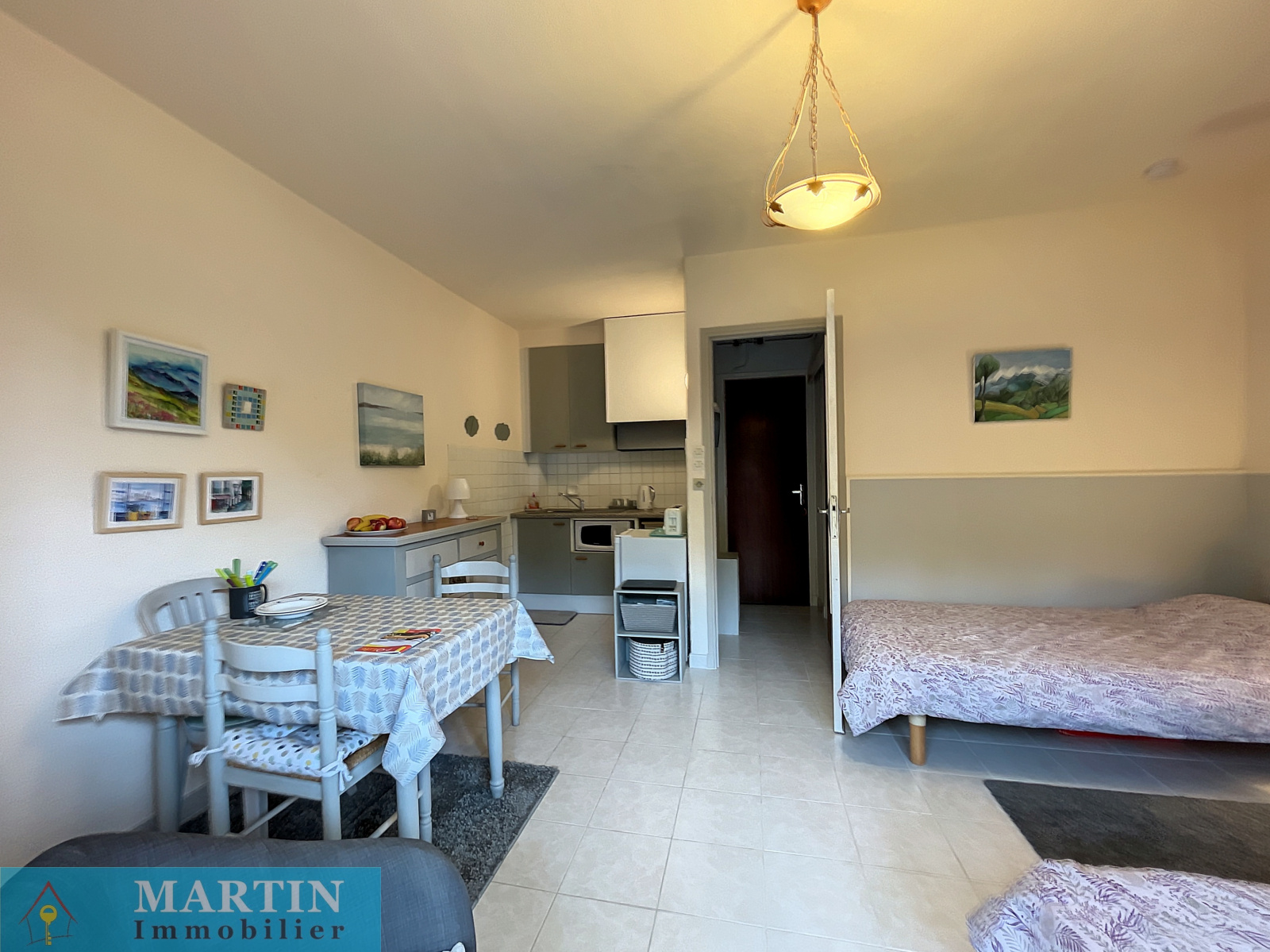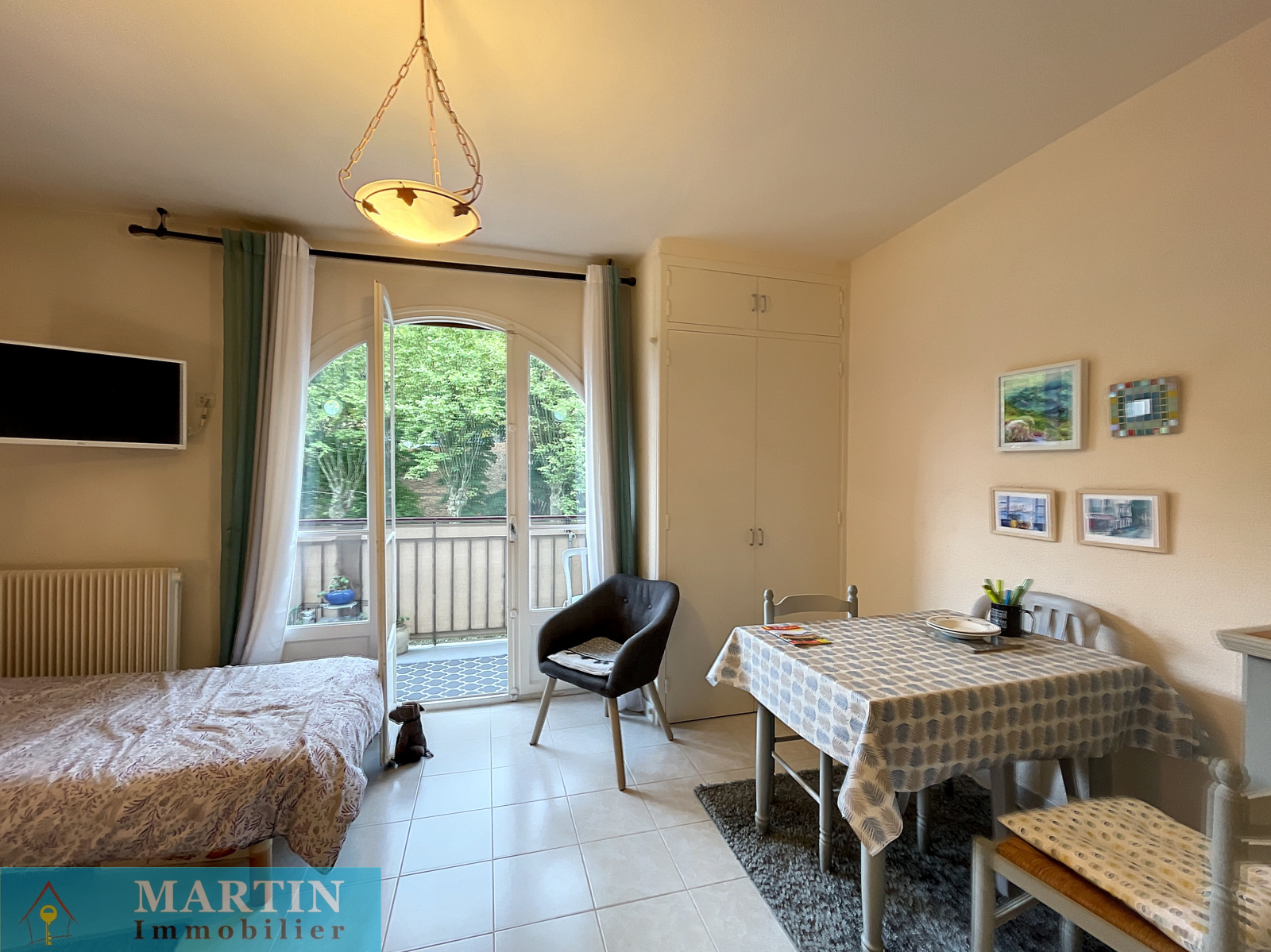 Proche des thermes et des commerces, dans une résidence avec ascenseur, un charmant studio d'environ 22,29 m² avec terrasse et une jolie vue dégagée.