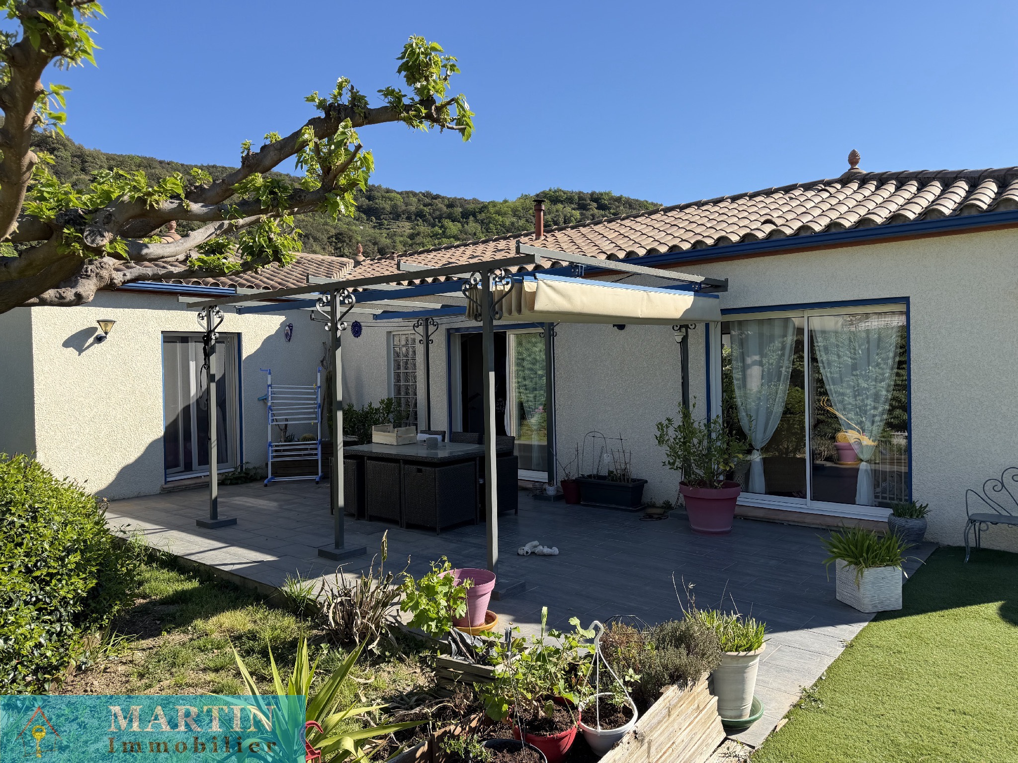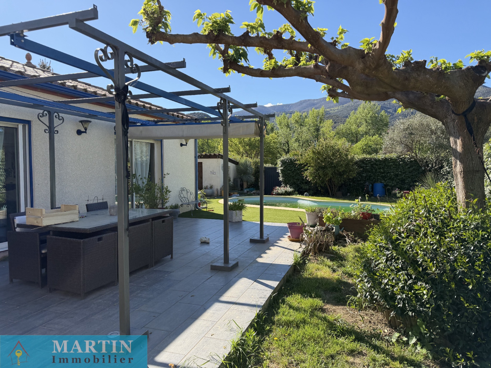Très belle villa 5 pièces construite en 2008, de plain pied, de 4 faces avec jardin, piscine, cuisine d'été et terrasse.