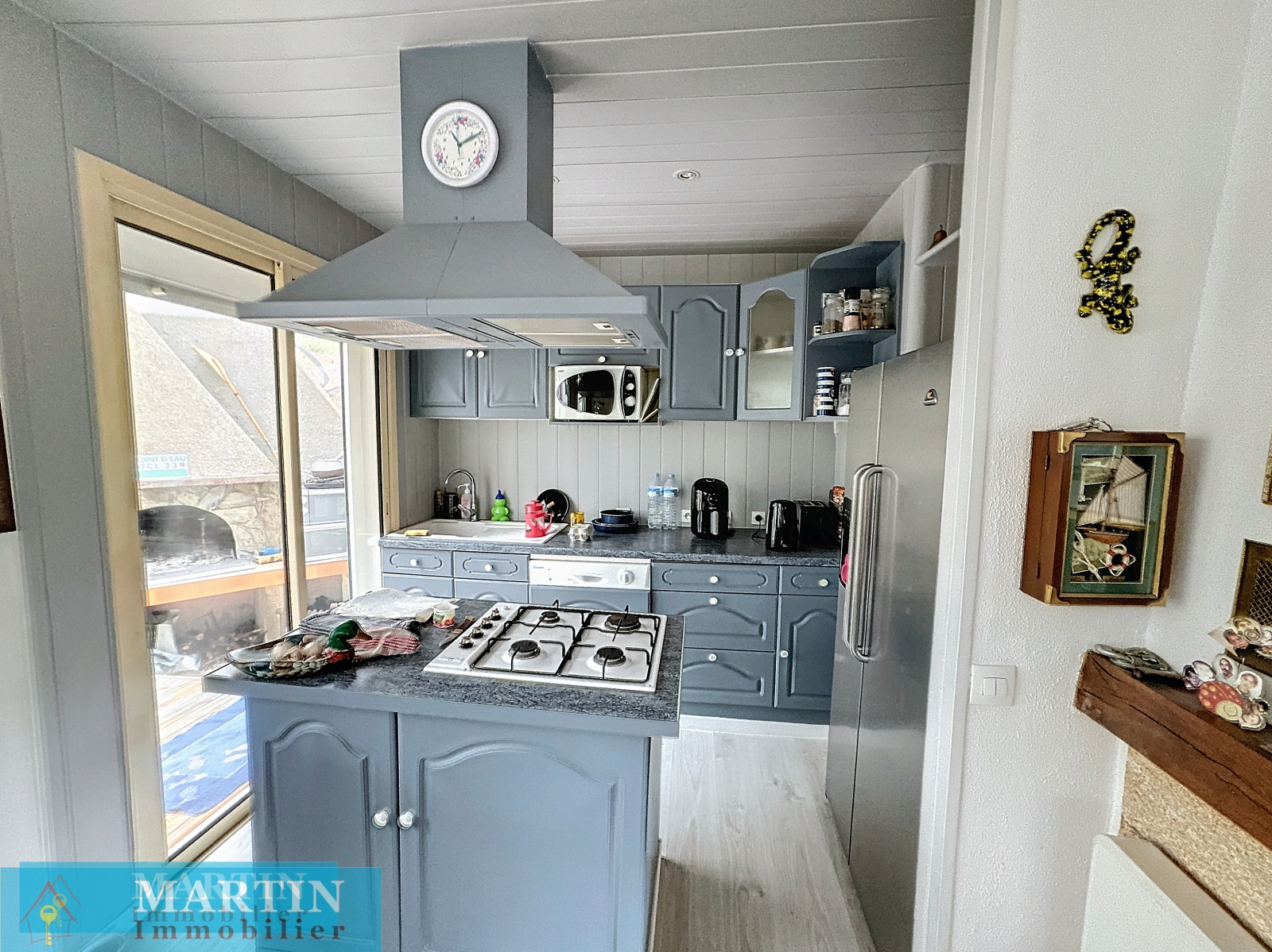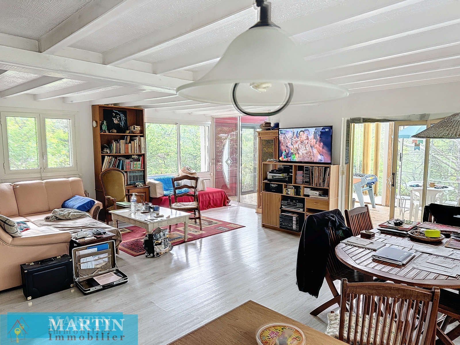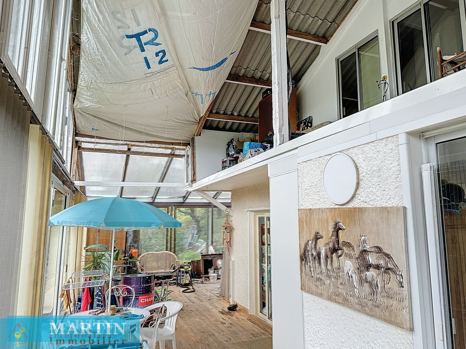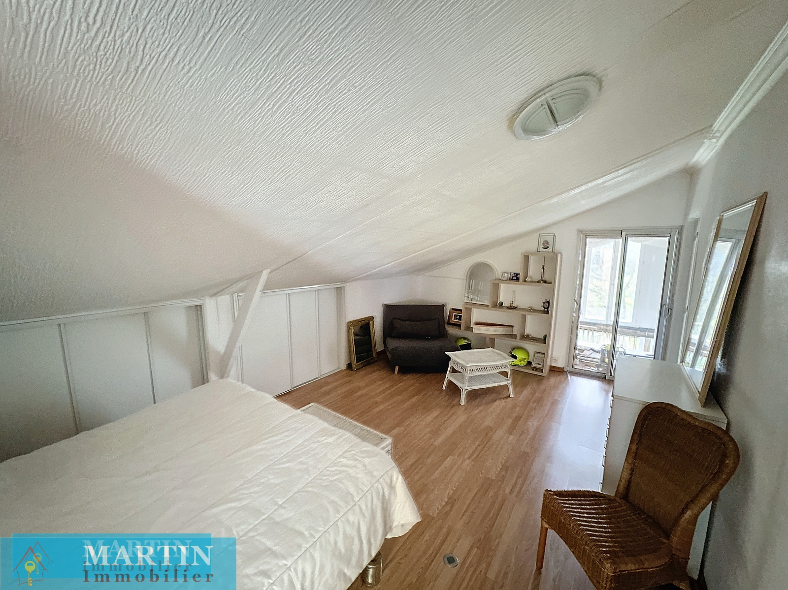 Cette maison se compose en rez-de-chaussée d'un salon, salle à manger, une cusine, une salle d'eau wc, ainsi qu'une grande véranda. A l'étage nous retrouvons deux chambres, ainsi qu'une pièce chambre / bureau.