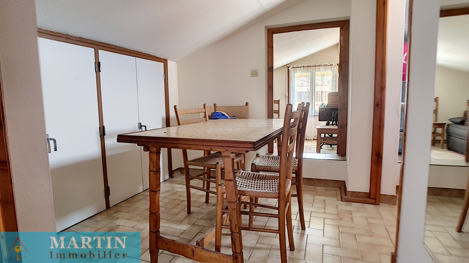 Elle se compose d'un séjour-salon, une grande cuisine équipée, deux chambres, une salle d'eau, un wc séparé et un garage.