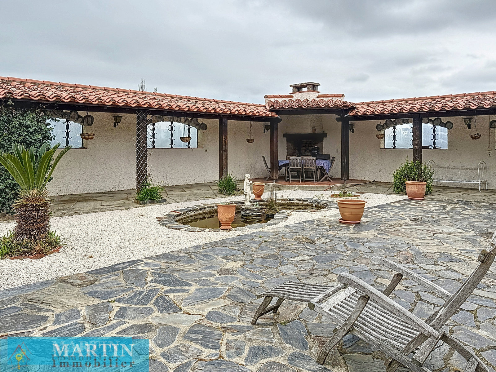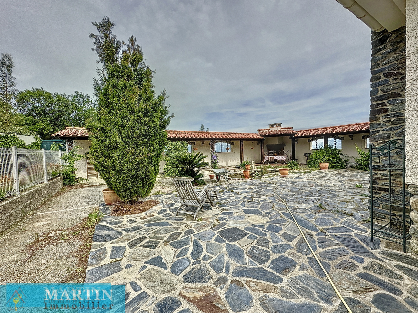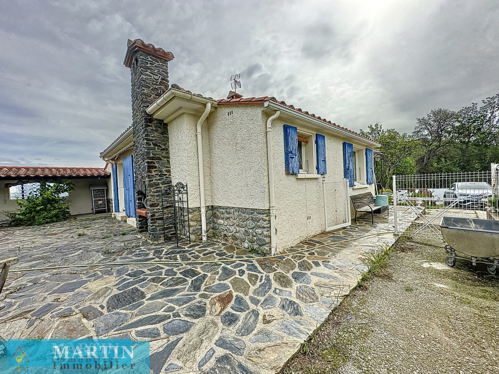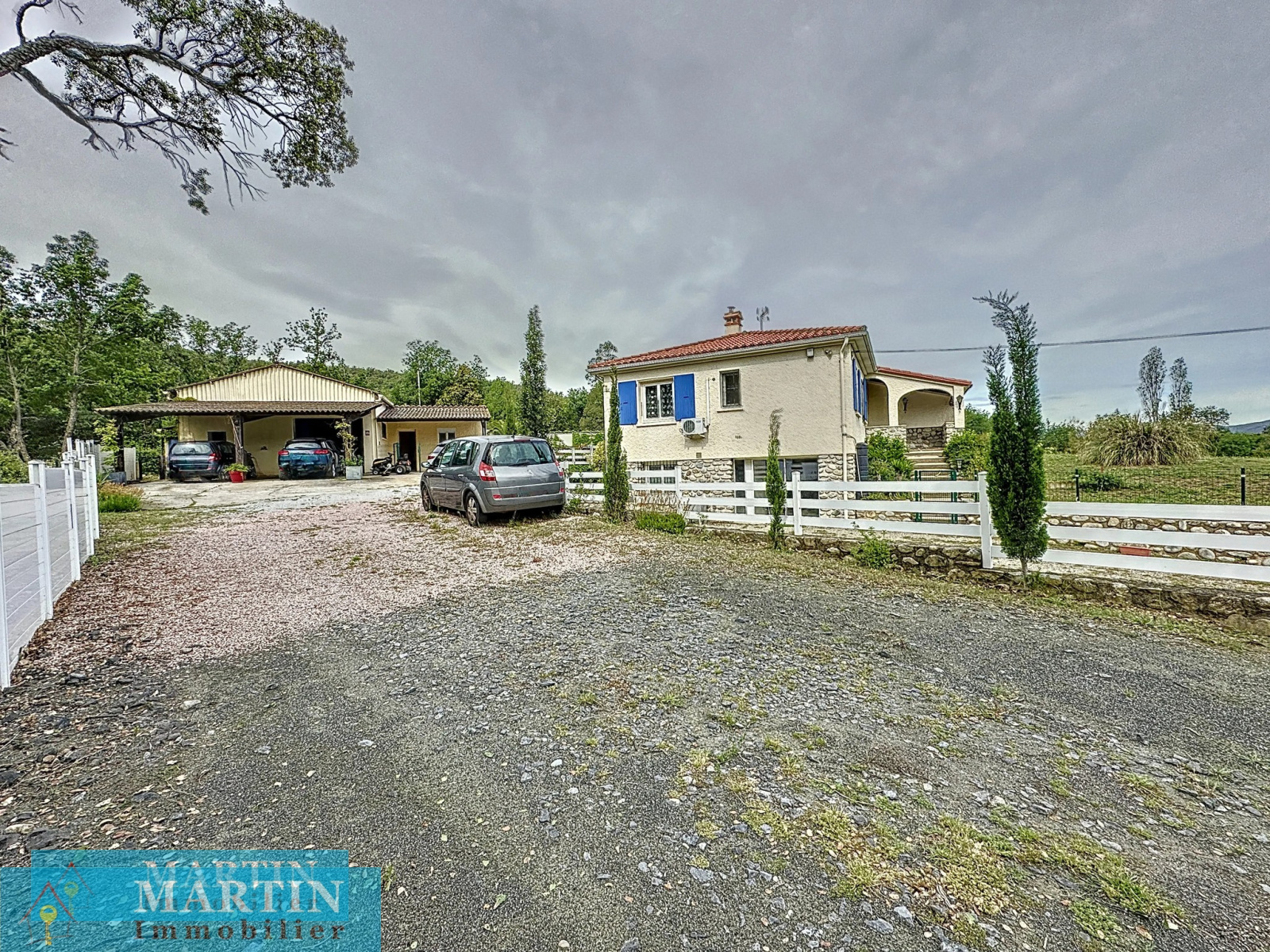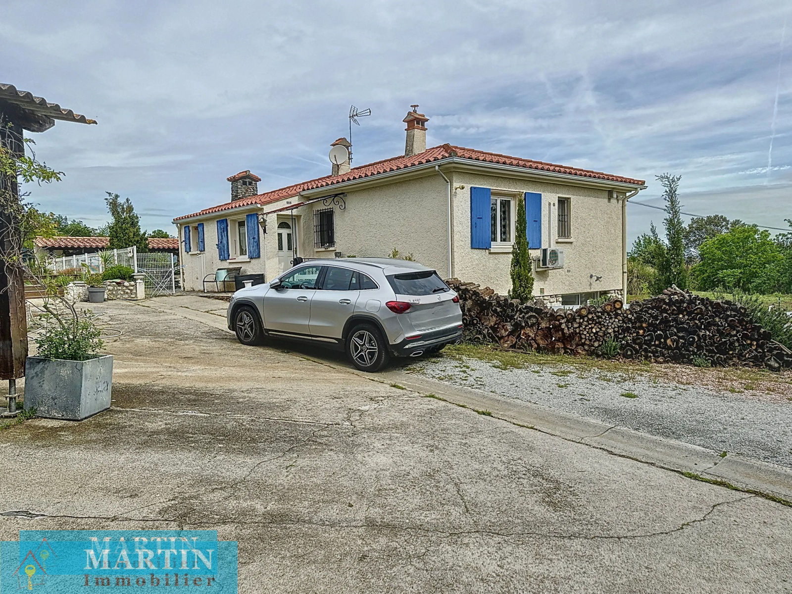 Climatisation réversible. Double vitrage. Poêle à granules. Fosse septique . Portail motorisé. Abris pour véhicules.