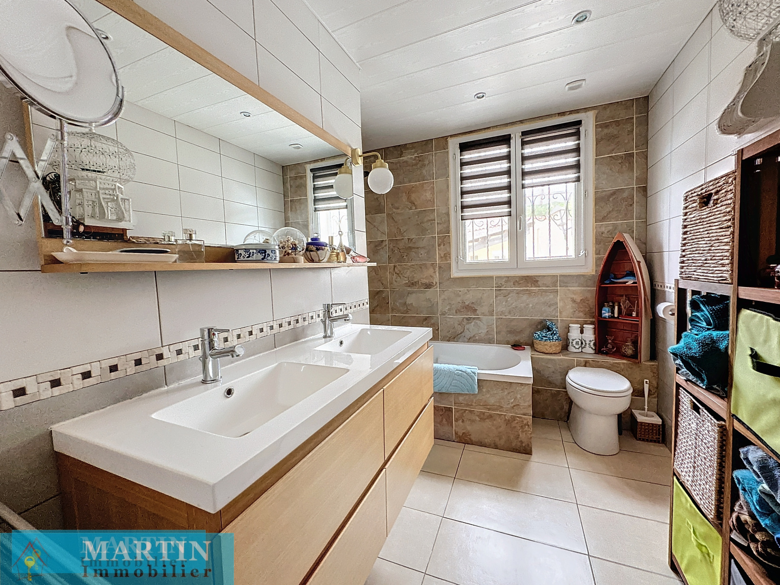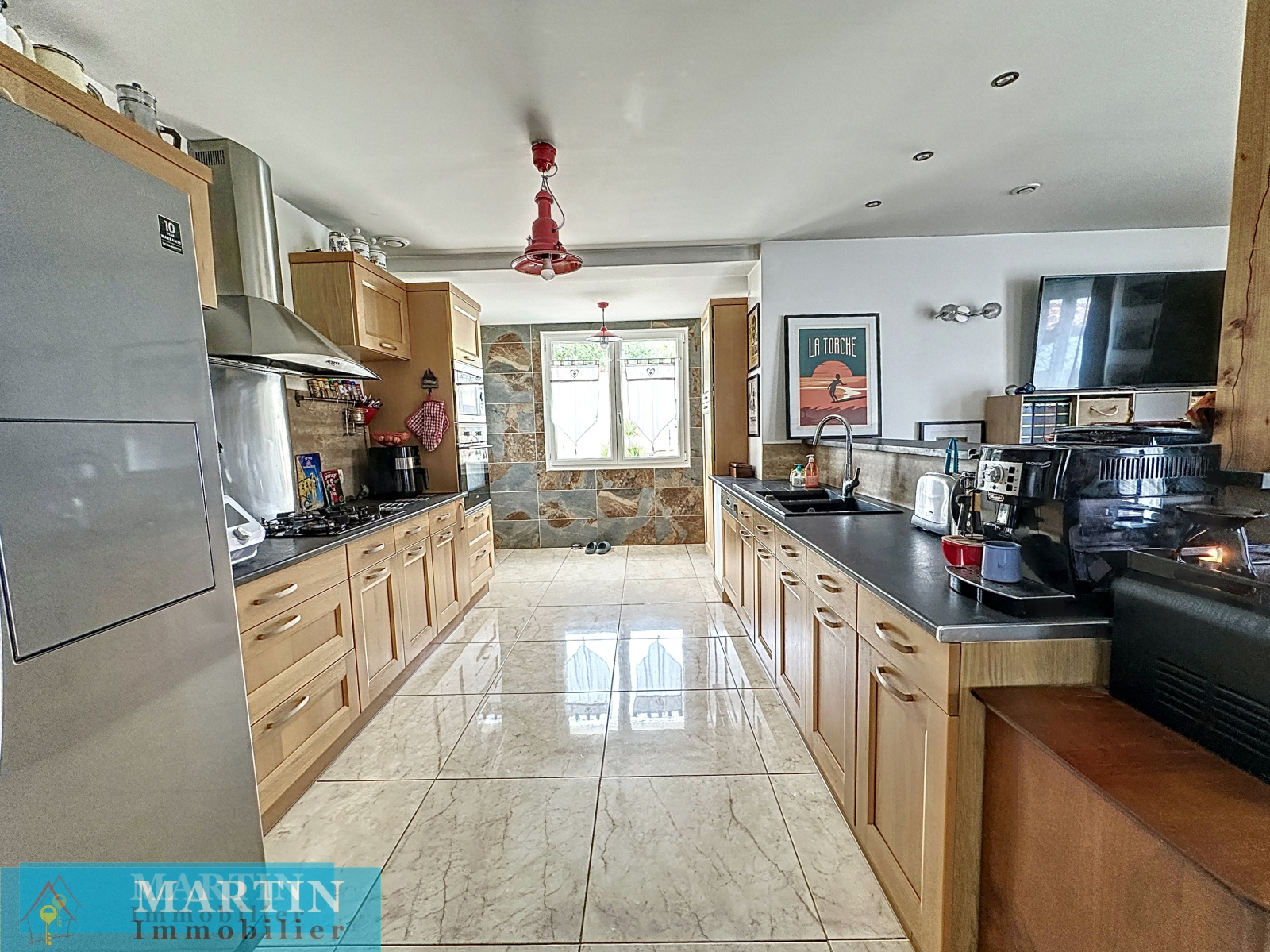 La villa dispose en rez-de-chaussée d'une pièce de vie d'environ 72 m² donnant sur un patio, 2 chambres, un bureau, une salle de bains et un WC. En rez-de-jardin un salon donnant sur le jardin, une chambre avec salle d'eau / WC attenant et un grand bureau.
