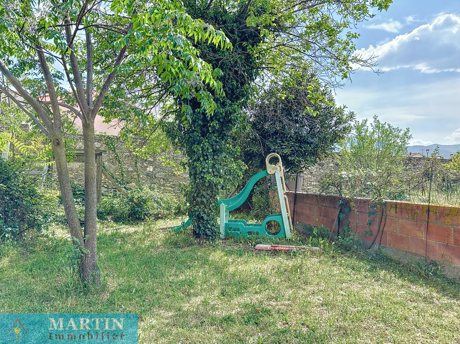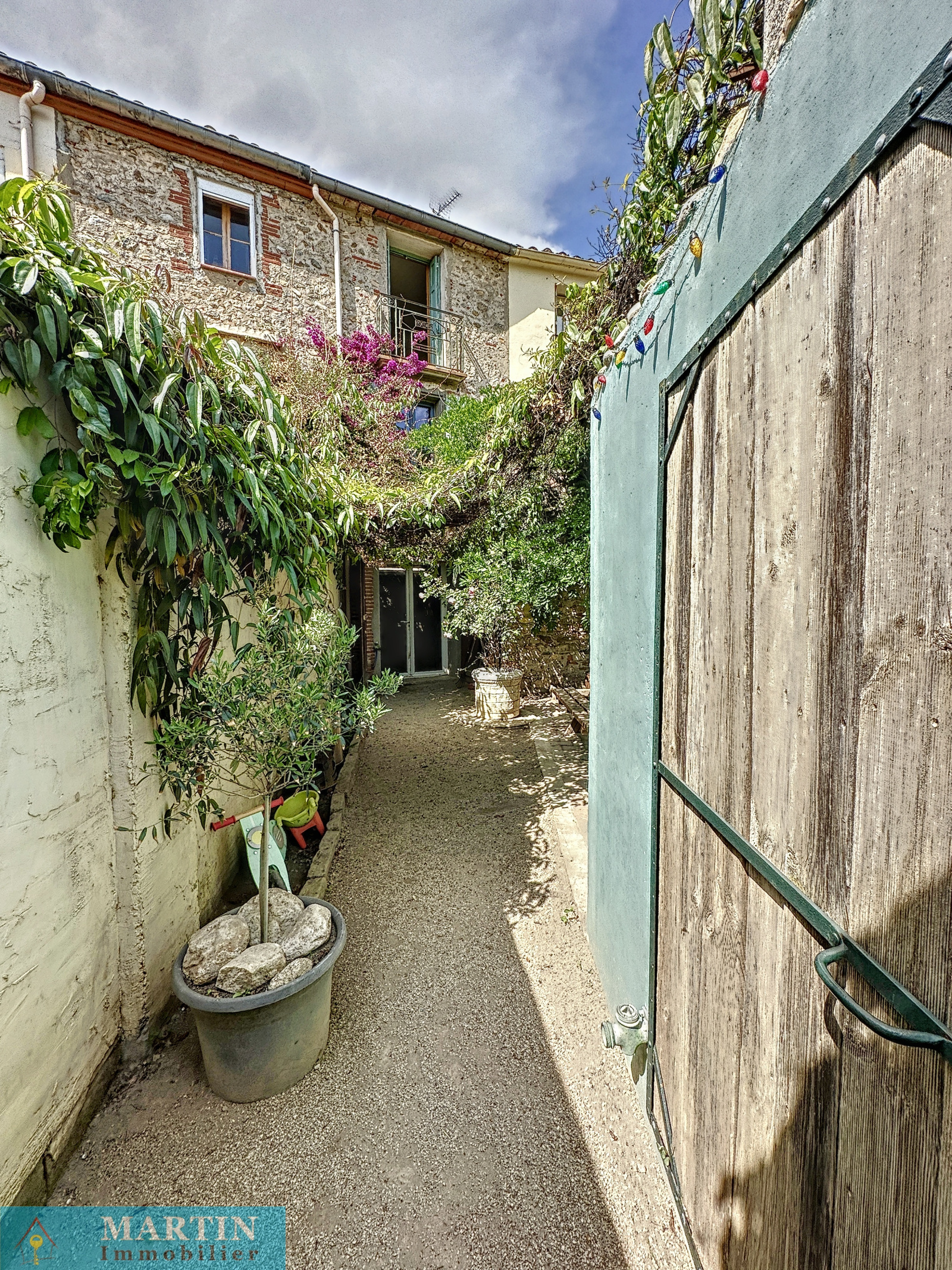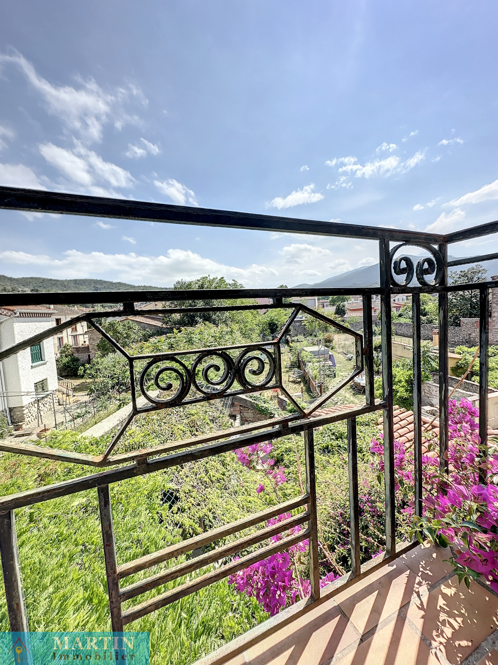 Charmante maison de village traversante avec jardin composée en rez-de-chaussée d'un garage (pas d'accès voiture) / buanderie, WC et accès sur le jardin avec dépendances dont une cuisine d'été et une terrasse abritée d'environ 10,60 m². A l'étage un salon avec balcon et une cuisine rénovée équipée. Au 2ème étage 2 chambres avec balcon et une salle d'eau / WC. Exposition plein sud. Quelques travaux et finitions à prévoir. Double vitrage. Une belle vue dégagée. Canal d'arrosage. Surfaces utiles d'environ 112m². Surface de terrain 338m². Double vitrage.