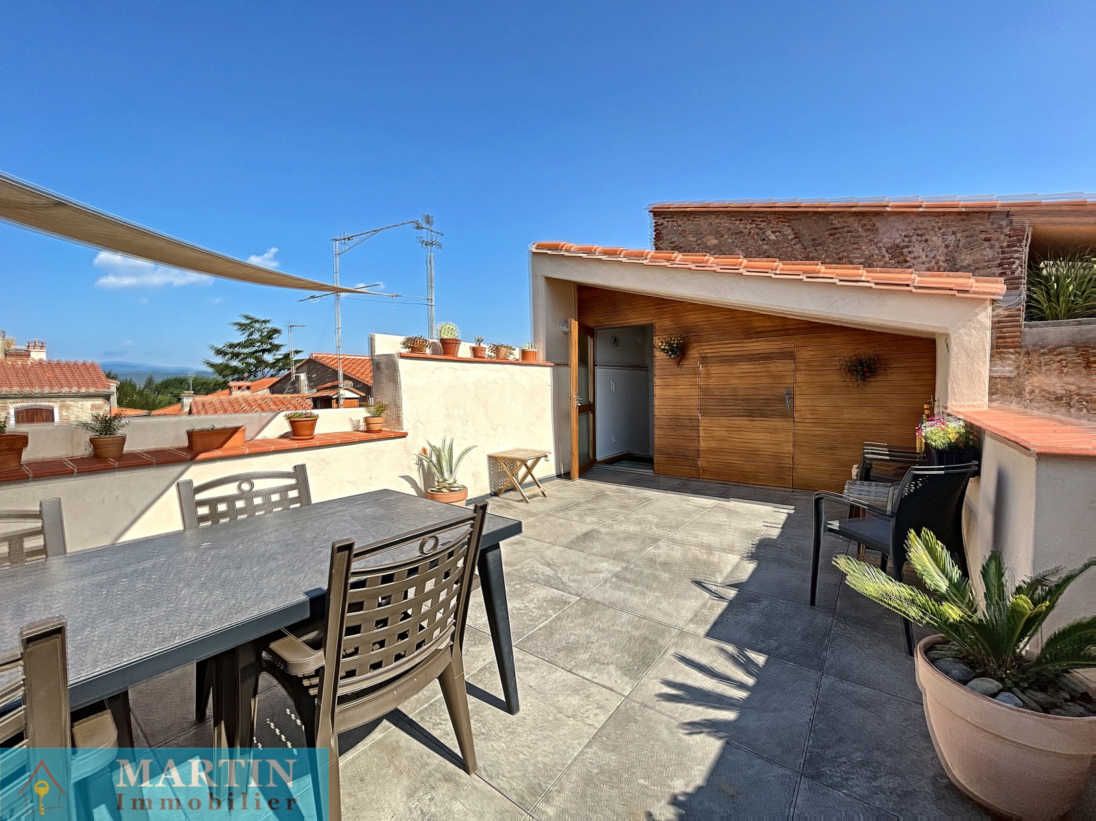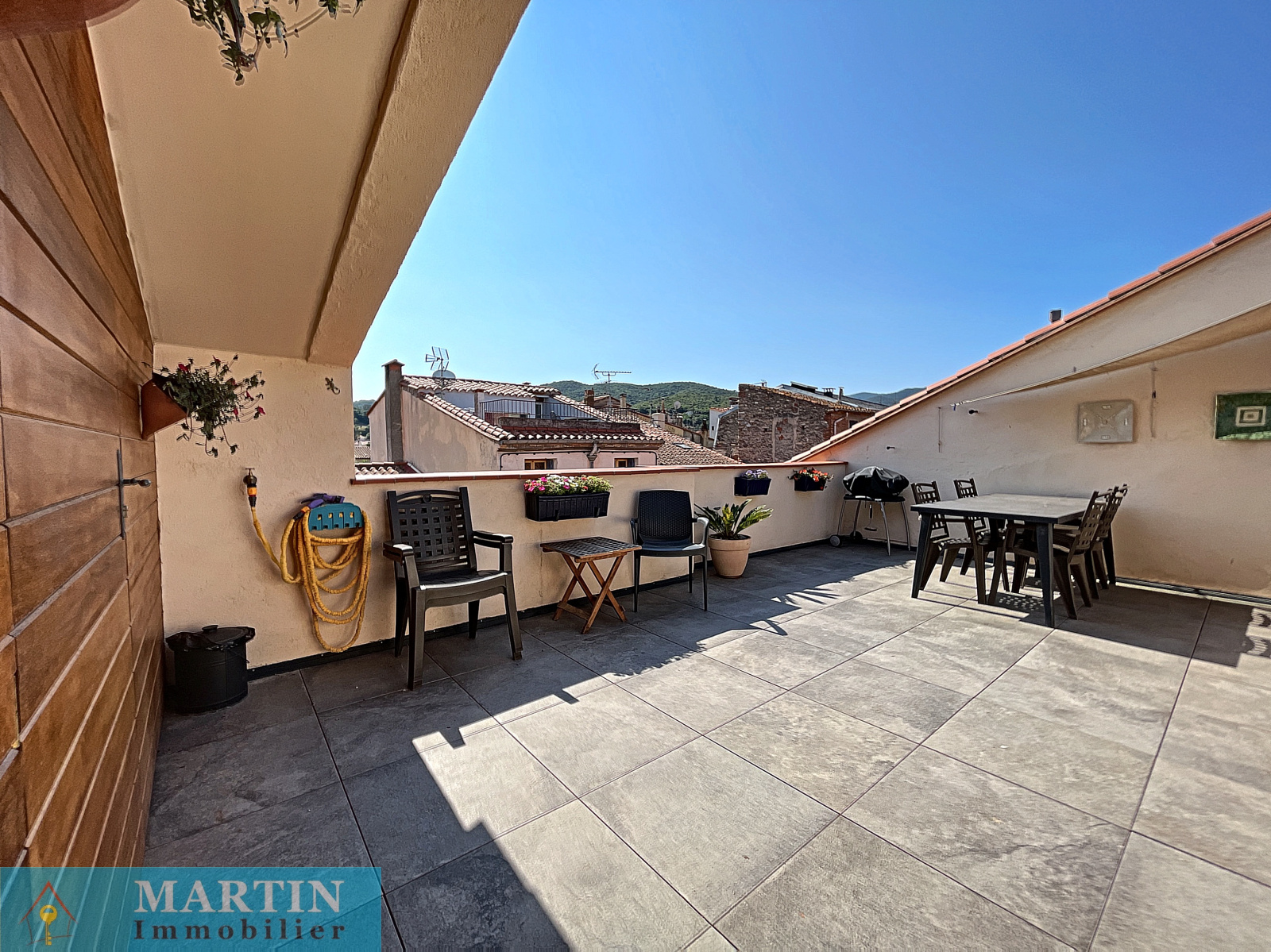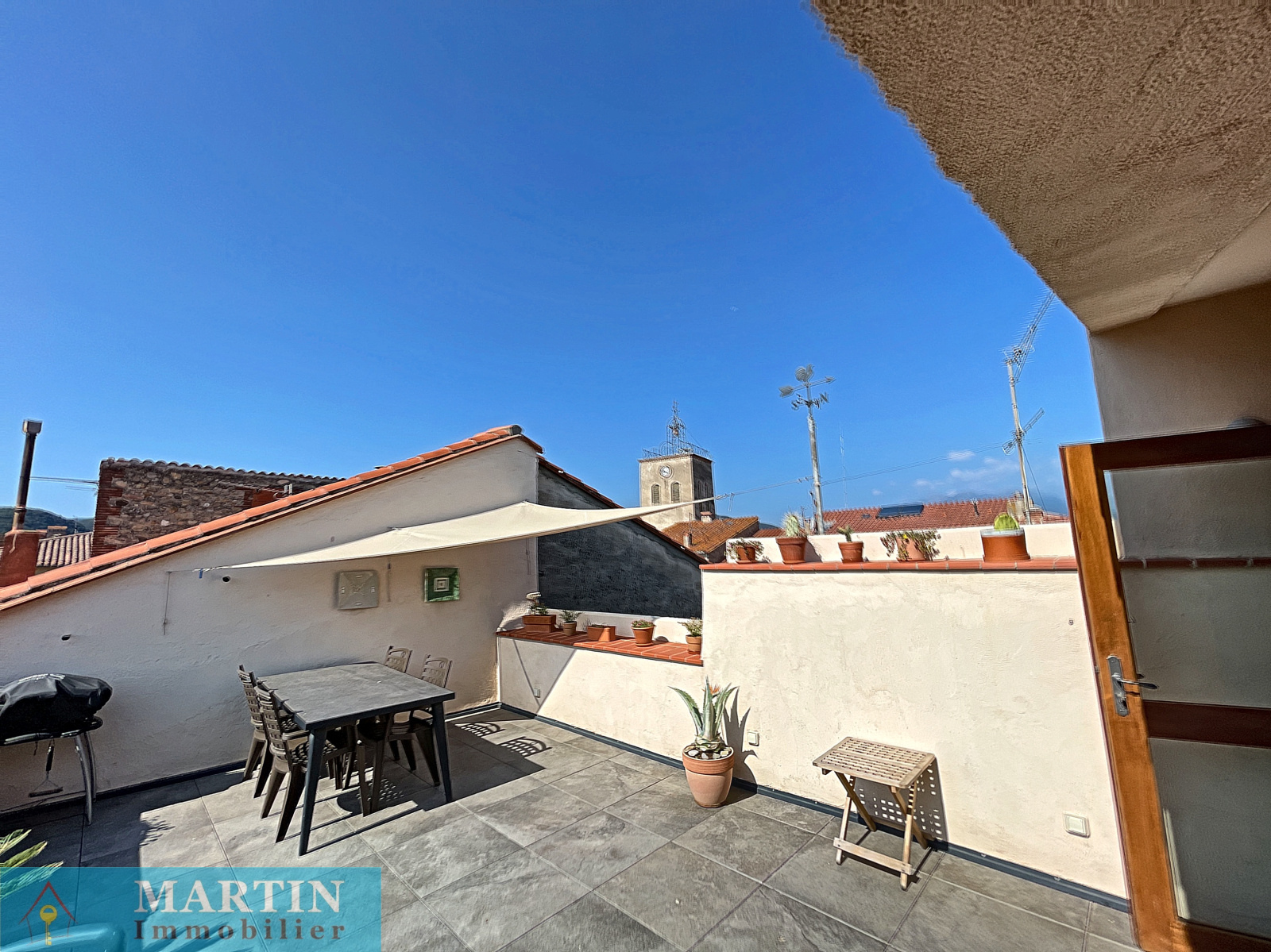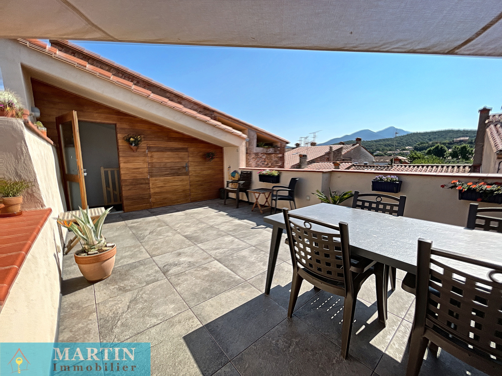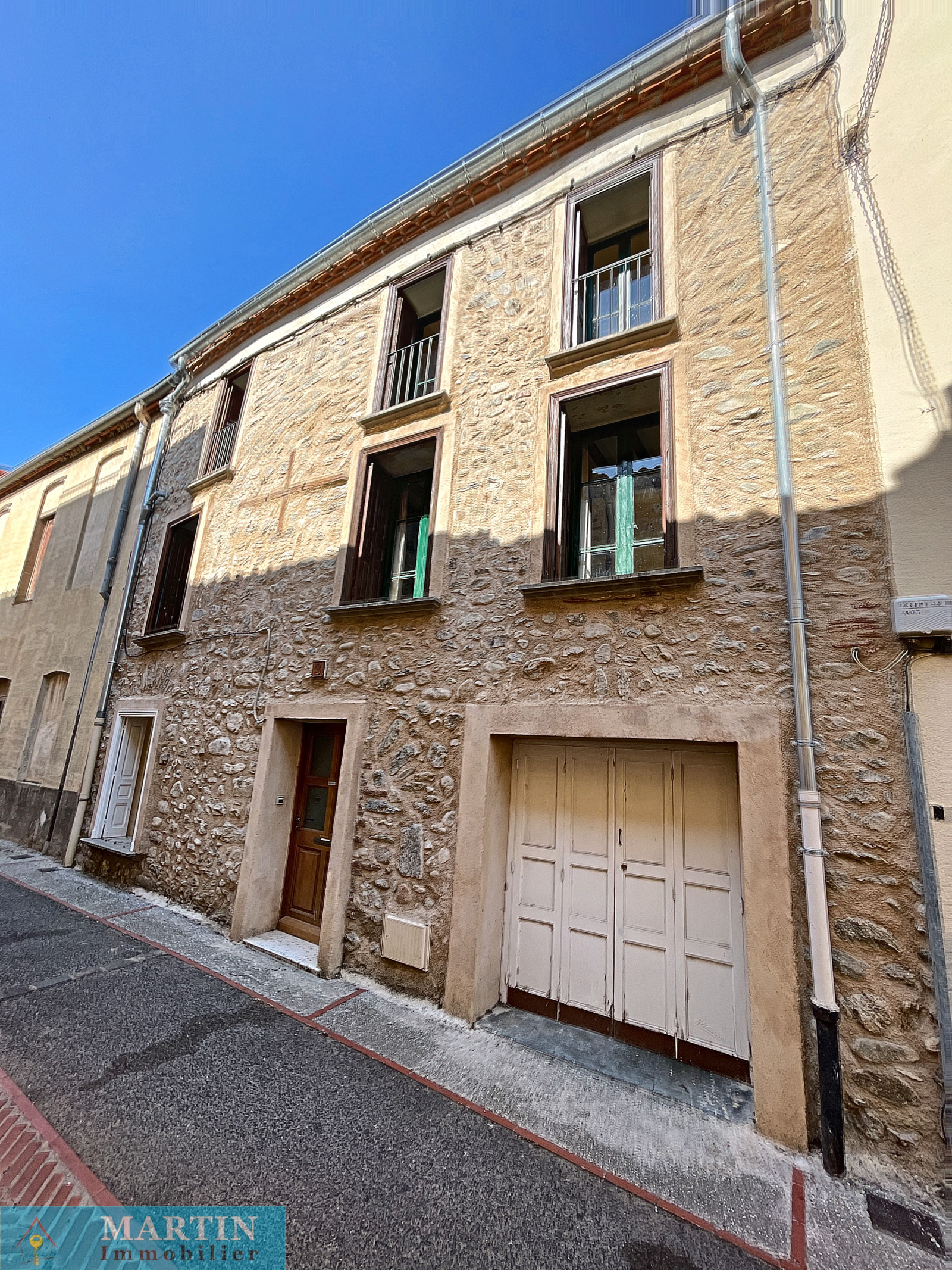 Maison de village avec toit terrasse et une vue sur le Canigou composée en rez-de-chaussée d'un atelier, un local à vélos et une cave à vin. au 1er étage un salon d'environ 28m², bureau, une chambre, espace dressing, salle d'eau avec WC. Au 2nd, salle à manger, une cuisine séparée, une chambre, salle d'eau avec WC et au 3eme une belle terrasse d'environ 24m² avec une vue sur le Canigou et les Albères.