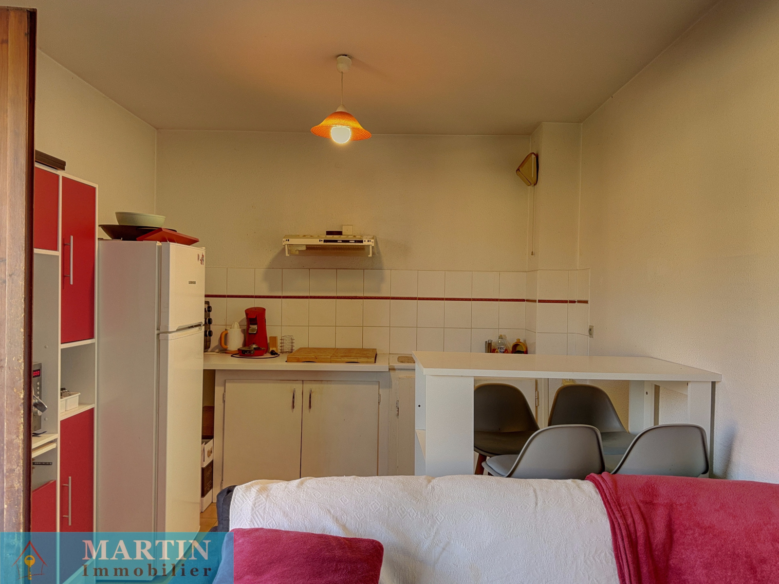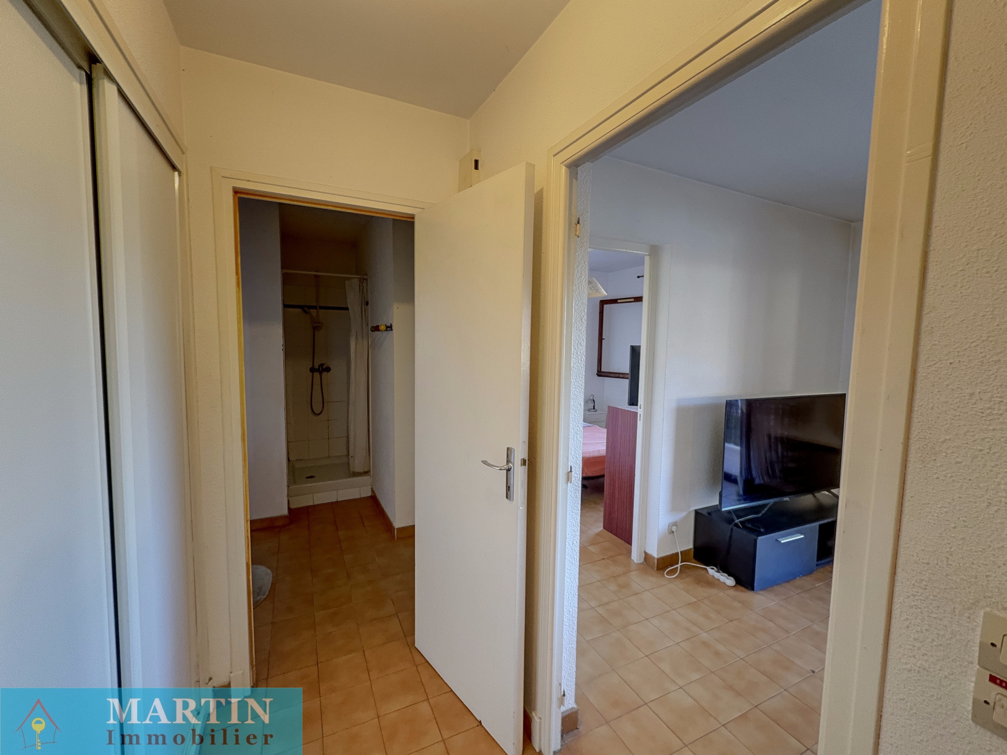 Il se compose d'une pièce à vivre donnant accès à une grande terrasse, une chambre, et une salle d'eau avec wc et il dispose également deux places de parking attitrées.