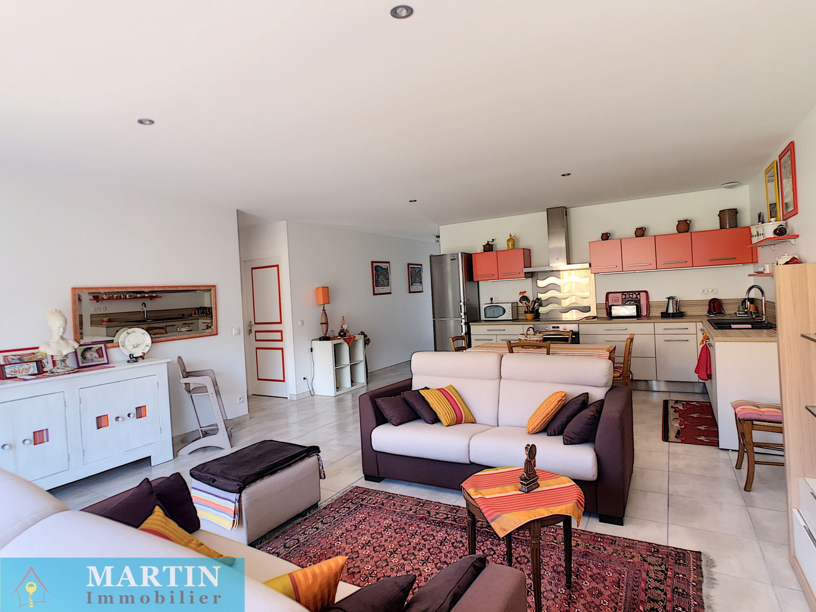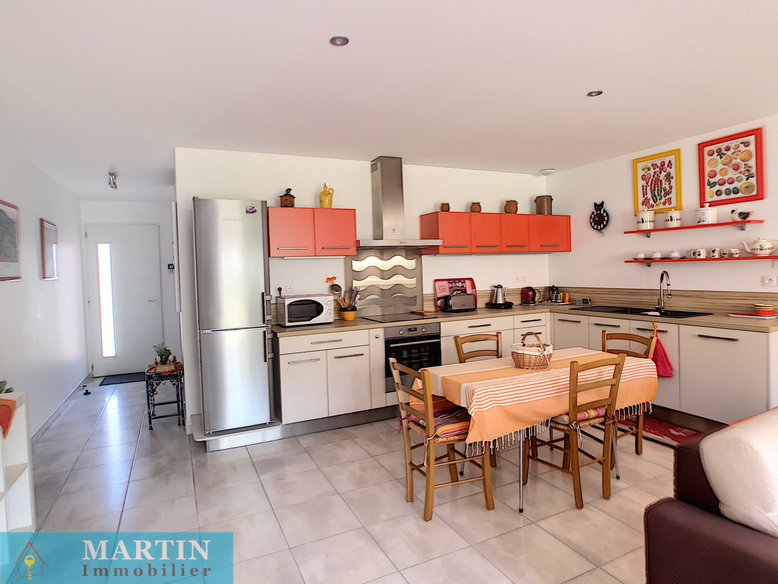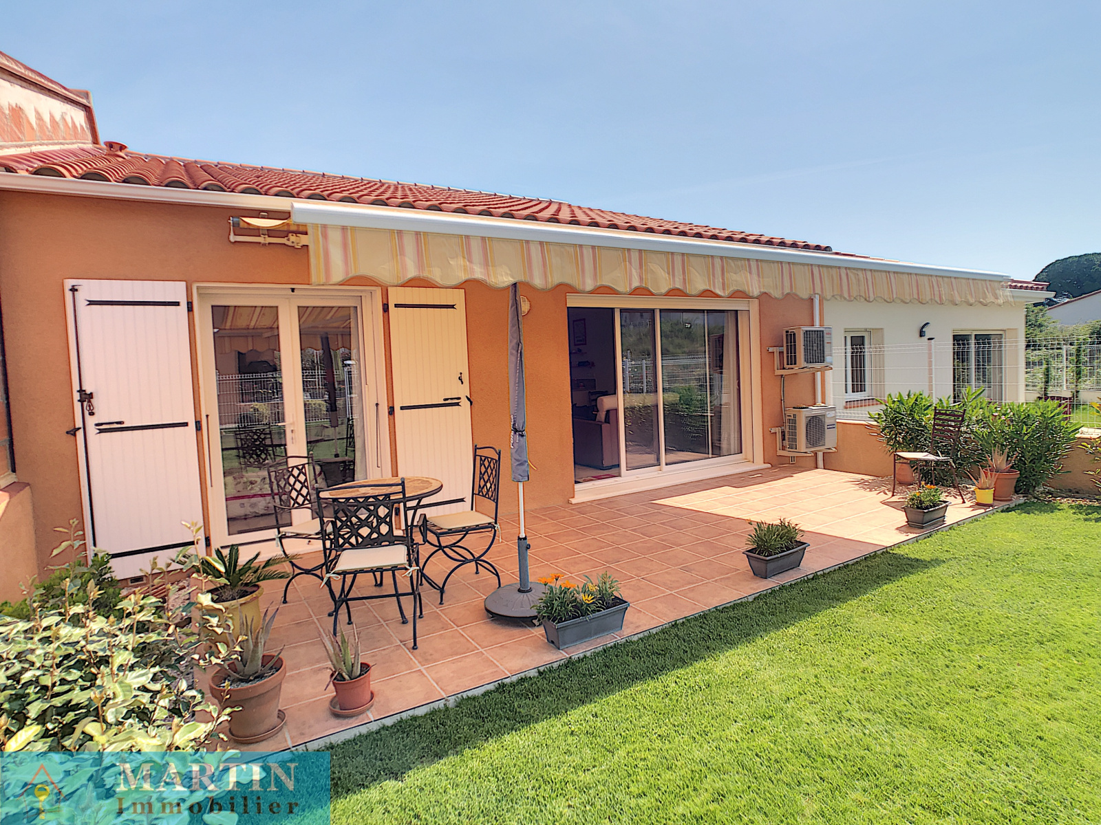 Une jolie villa récente très lumineuse de plain-pied en deux faces composée d’une cuisine équipée ouverte sur le salon et une terrasse exposée plein sud de 21m², 2 chambres, une salle d’eau, WC indépendant et un garage carrelé et isolé.