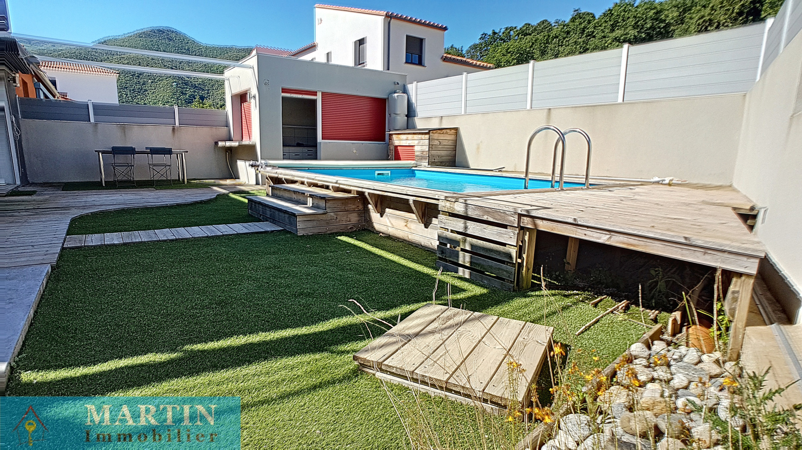 Céret, à quelques pas du centre historique de la ville, très jolie villa d'architecte dans un style contemporain sur un très beau terrain totalement clos et parfaitement aménagé.