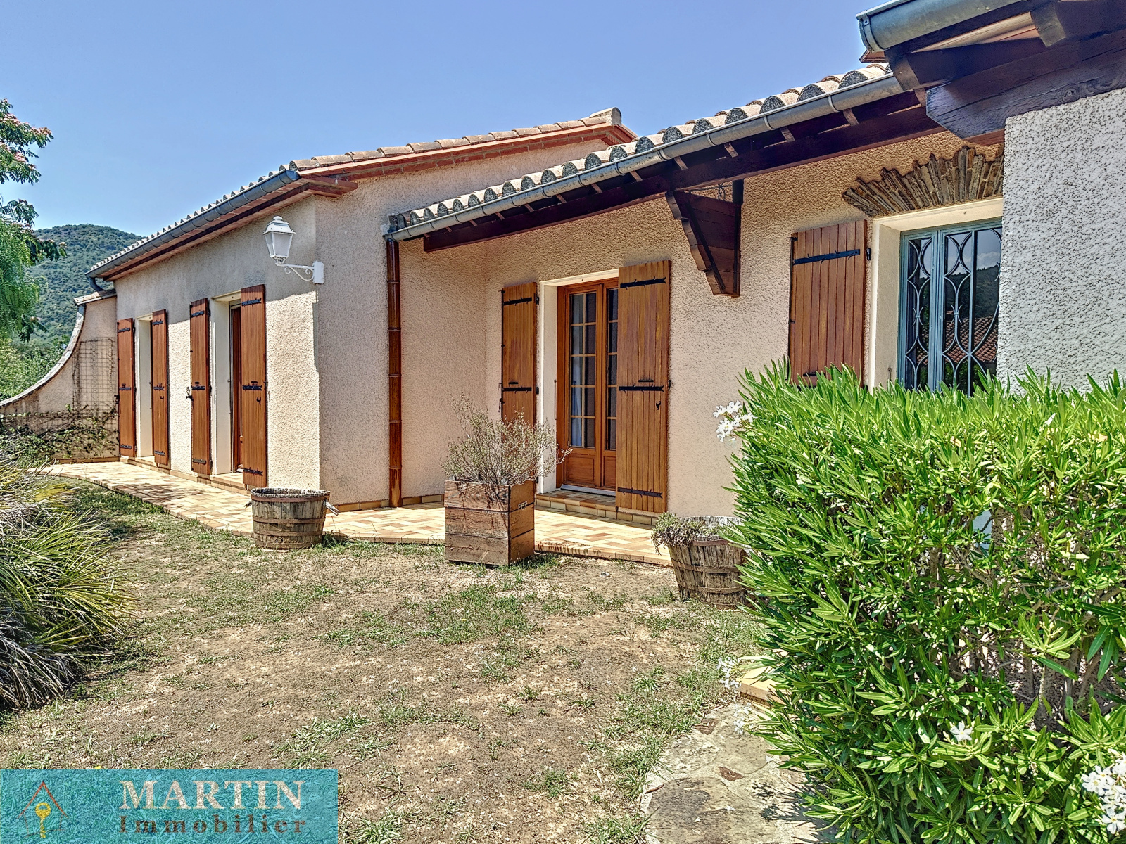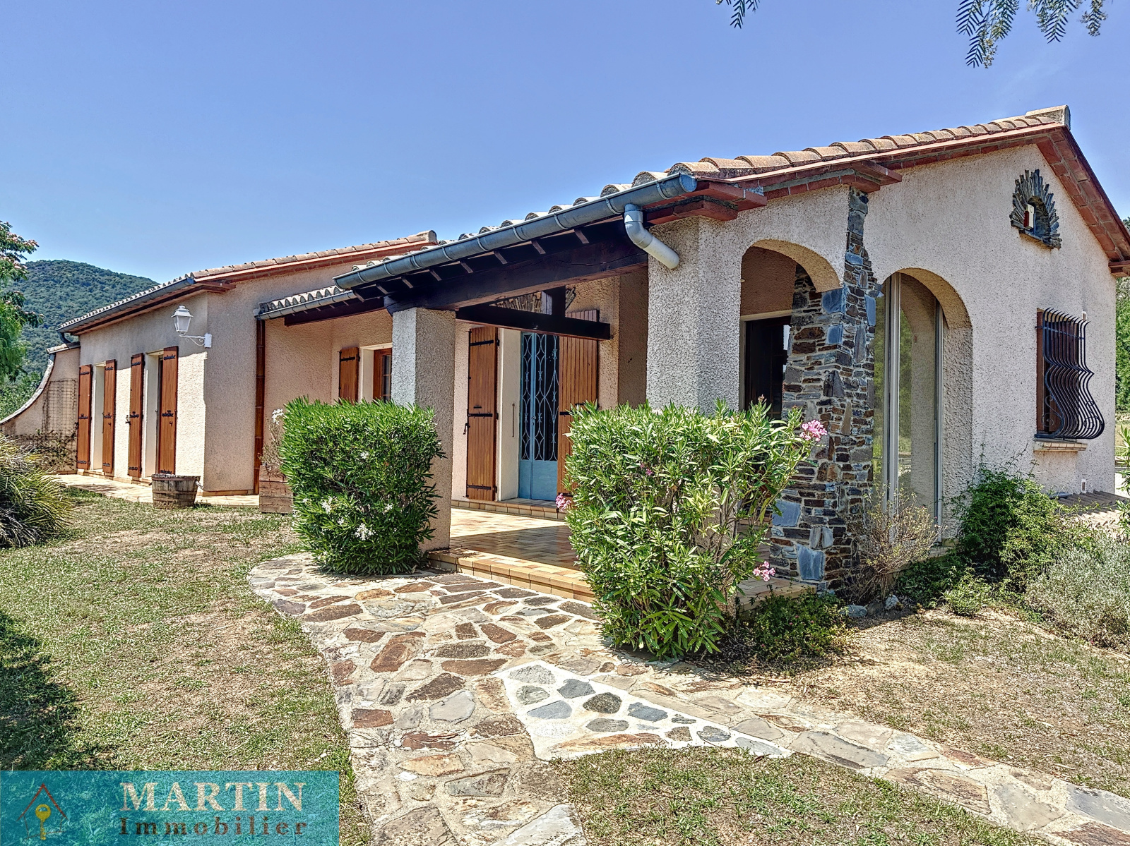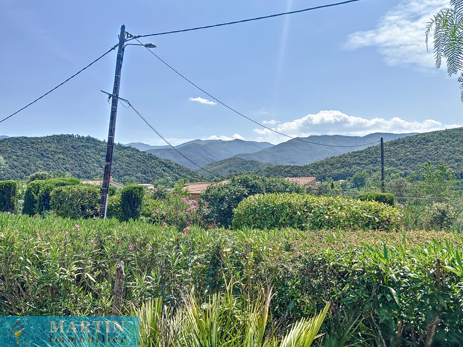 Jolie villa plain-pied de 96m² sur une parcelle de 2295 m² entièrement plate avec des arbres fruitiers, située à 5 minutes de Céret dans un secteur calme et apprécié.