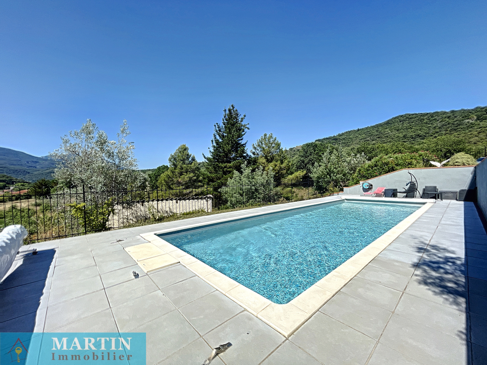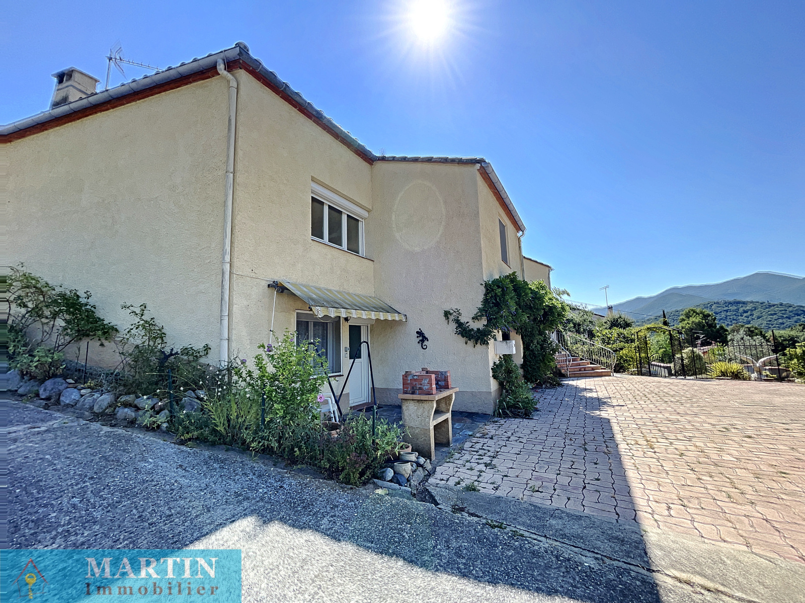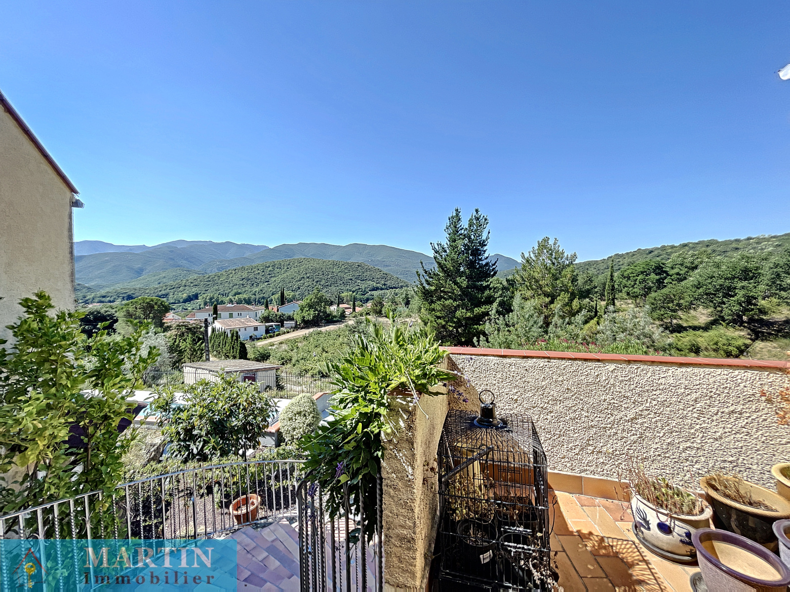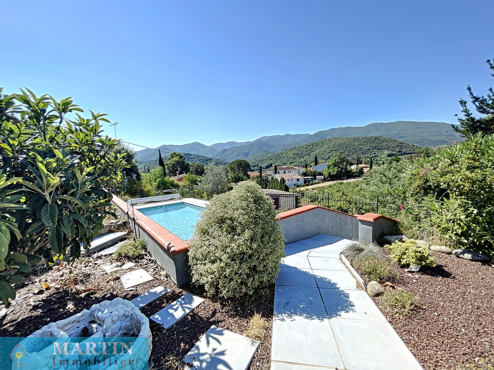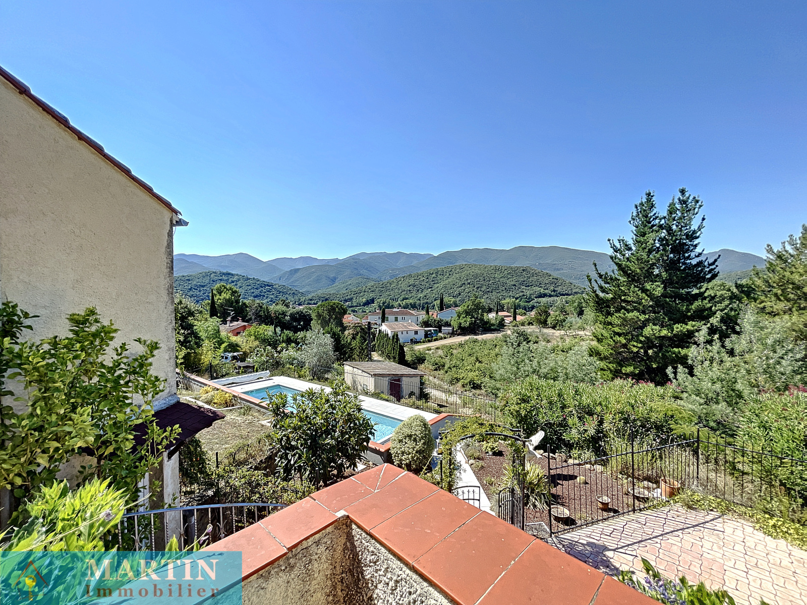 Martin Immobilier vous propose en EXCLUSIVITE une belle villa avec piscine de 4 faces d'environ 176 m² habitables sur une parcelle de 2975 m² ainsi qu'une autre de 1140 m² non attenante. La villa se compose d'une partie principale et de plusieurs dépendances offrant une belle vue dégagée sur les montagnes environnantes. La partie principale d'environ 96 m² dispose d'un salon, une cuisine donnant sur un patio, 2 chambres dont une possédant un dressing et un wc et l'autre une loggia, une salle d'eau / wc. La villa dispose également de deux studios indépendants et la possibilité de créer une troisième dépendance, un garage d'environ 26 m², un casot, un forage non raccordé. Une piscine 12 m x 4 m chauffée et traitée au sel. Bonne exposition. Double vitrage. Volets roulants électriques. Moustiquaires. Chauffe-eau solaire. Climatisation réversible. Beaucoup de potentiel pour cette maison aux portes de Céret dans un cadre privilégié.