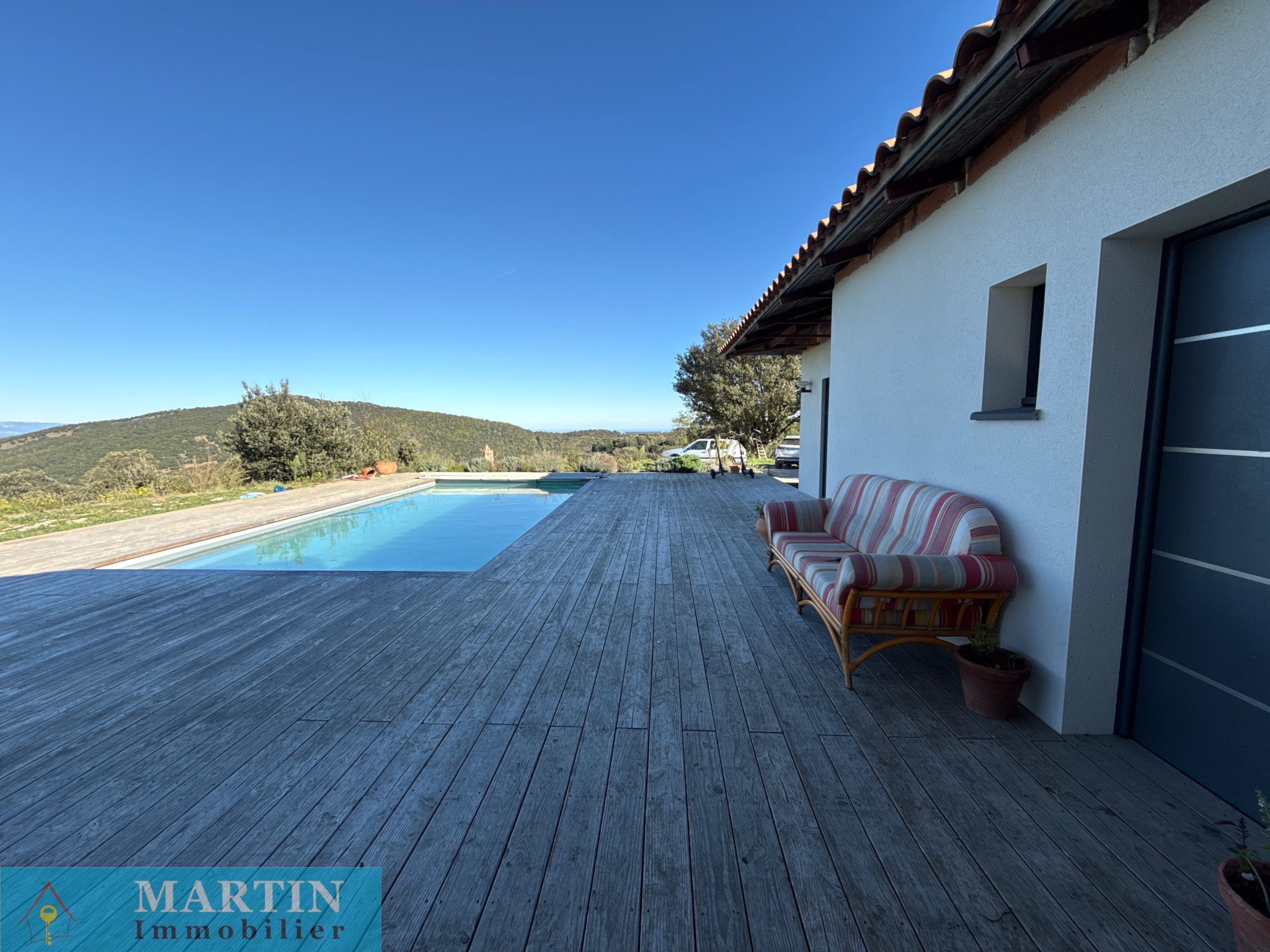 Découvrez cette magnifique villa récente de plain-pied, construite en 2021, offrant luminosité et confort avec ses matériaux de qualité. Elle se situe sur plus de 3 hectares de terrain et dispose d'une piscine au sel de 8 x 4 mètres, offrant une vue imprenable sur le village, les montagnes et la mer.