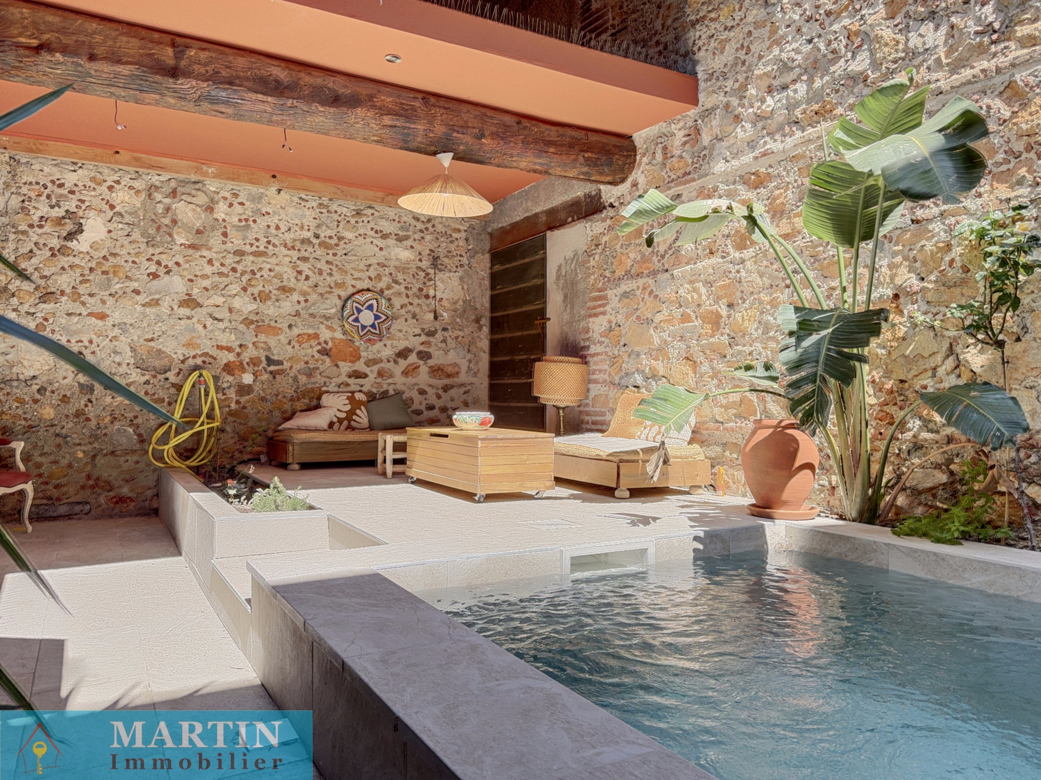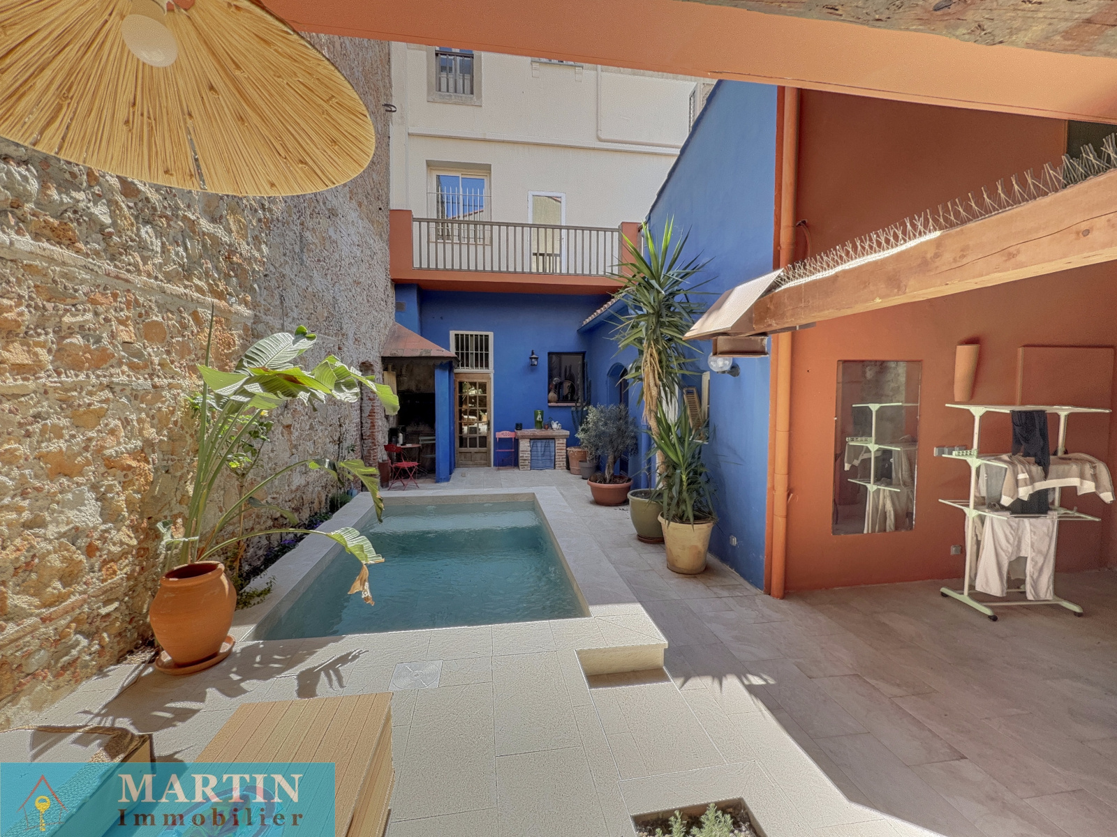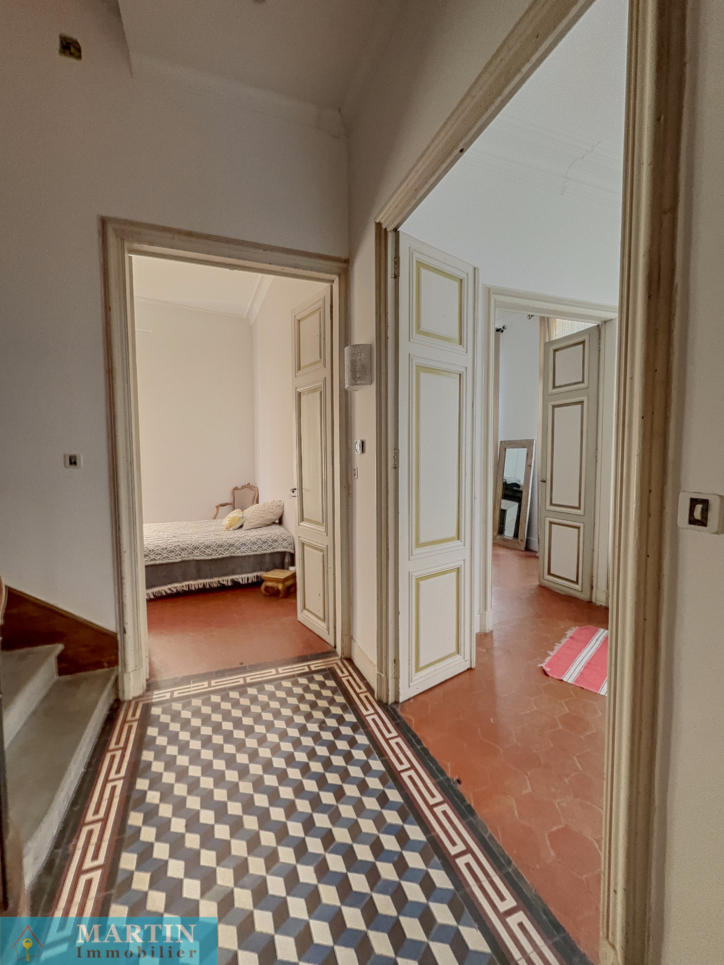 Située idéalement à 3km de l’autoroute A9, 400m de la gare et 6km de l’aéroport, à moins de 15km de la plage et 100km des stations de ski, elle est composée de 6 chambres, 4 sdb, un salon, une salle à manger, une buanderie et une cuisine haut de gamme, pour une surface de 250m². Carreaux de ciments d’époque au sol, tomettes, cheminées d’époque fonctionnelles, beaucoup de luminosité, chaque pièce possède au moins une fenêtre, escalier d’époque en pierre avec rampe bois et ferronneries d’art, volumes exceptionnels avec des plafonds à plus de 3m, clim gainable réversible dans toutes les pièces.