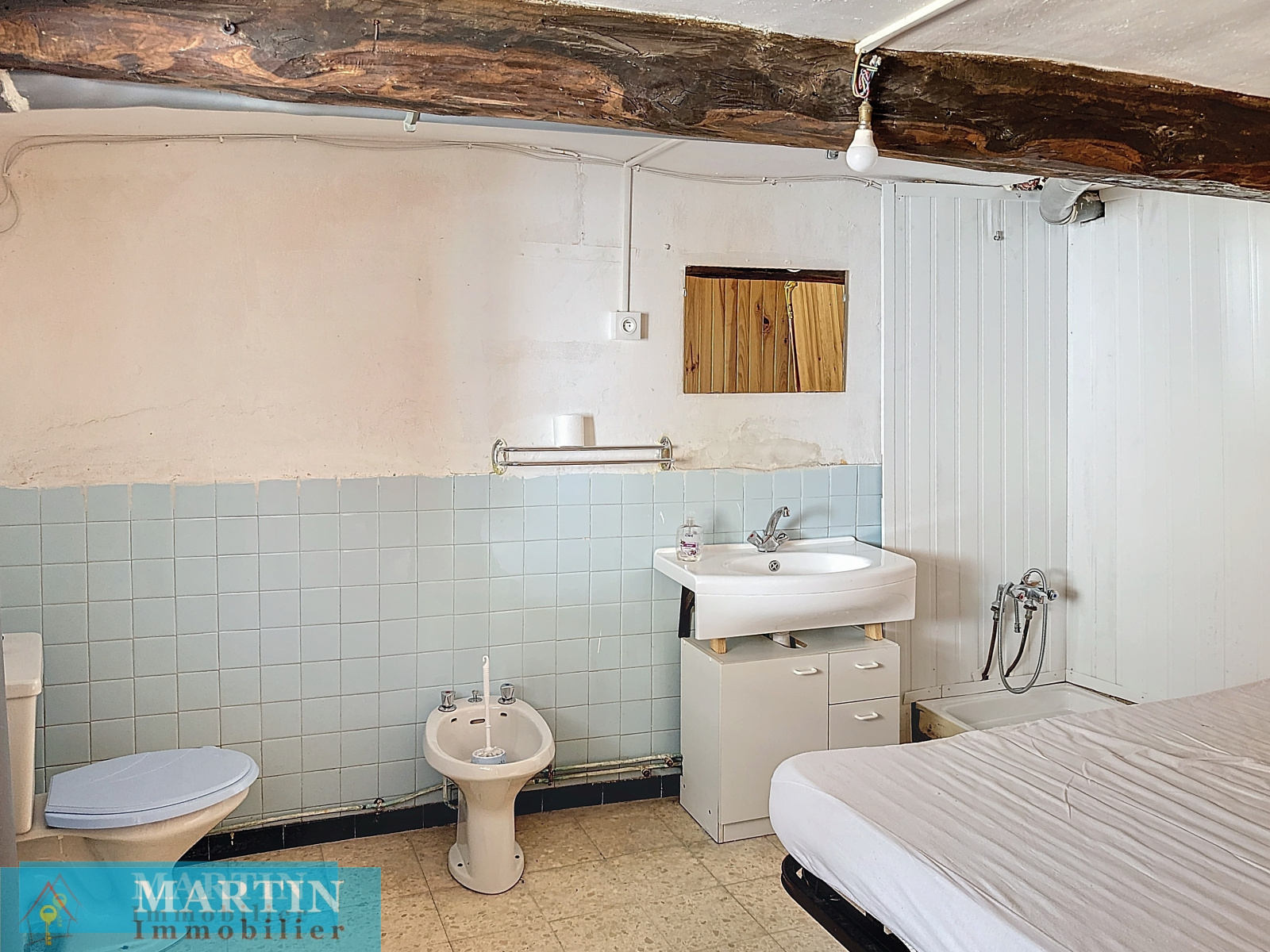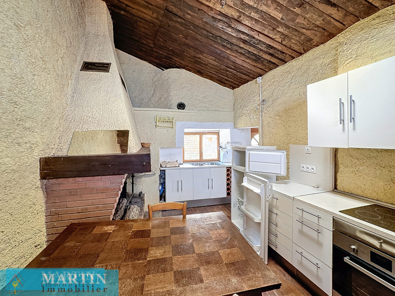 Elle est composée d'un salon, une chambre, une cuisine, une salle d'eau / wc et un coin nuit sur mezzanine. Sur le niveau inférieur, se trouve une pièce, une grande cave ainsi qu'une chambre avec coin salle d'eau / wc.