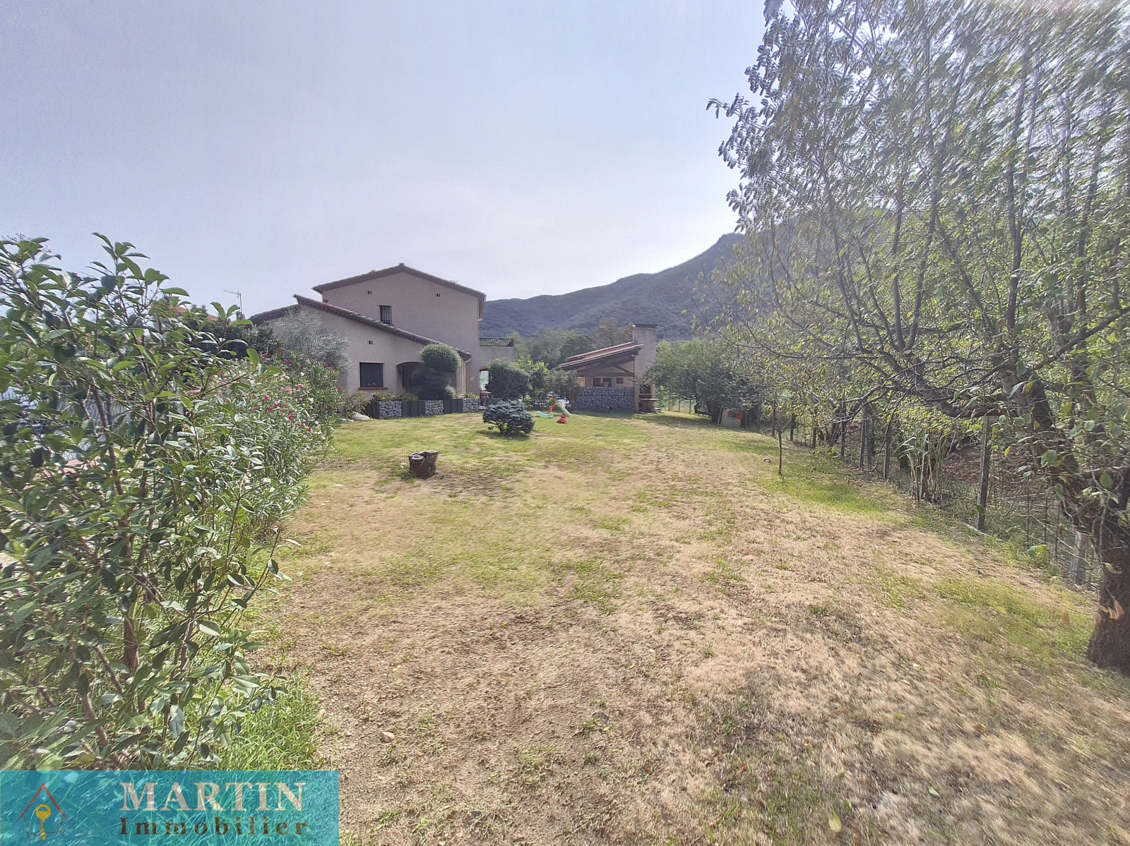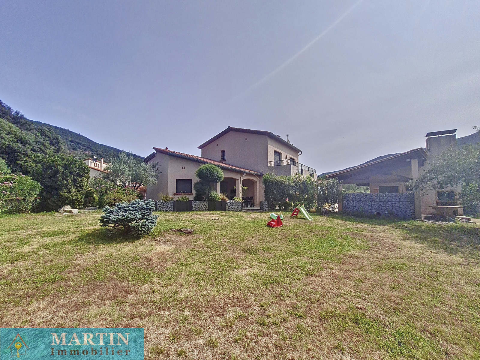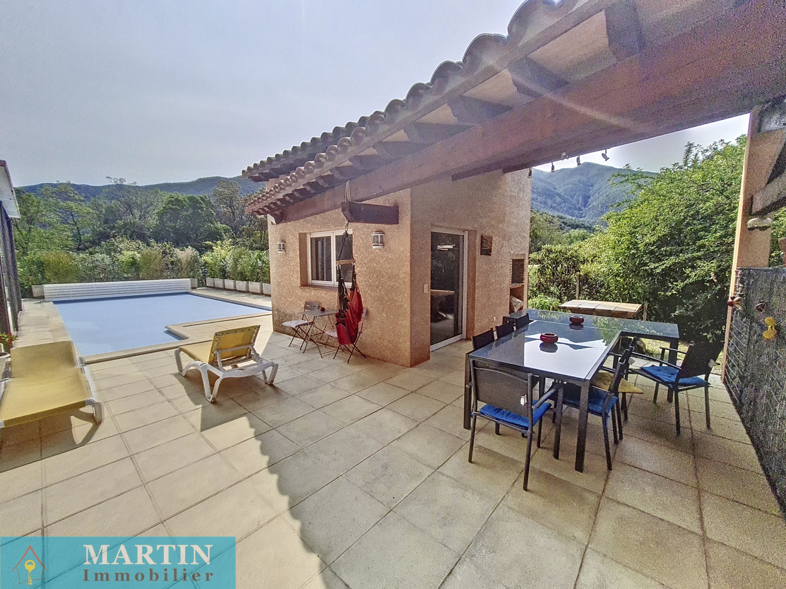 Belle villa de construction traditionnelle sur une parcelle de 1948 m² avec canal d'arrosage dans quartier calme et résidentiel. Bien exposée, cette villa offre en rez de chaussée une très belle pièce à vivre donnant sur une terrasse exposée sud, cuisine équipée, arrière cuisine. L'espace nuit est composé de 2 chambres, salle d'eau, wc séparé. A l'étage, 2 chambres avec terrasse, 1 bureau et 1 salle de bains. Piscine 10x5 maçonnée et chauffée. Cuisine d'été, double garage. Prestations de qualité.