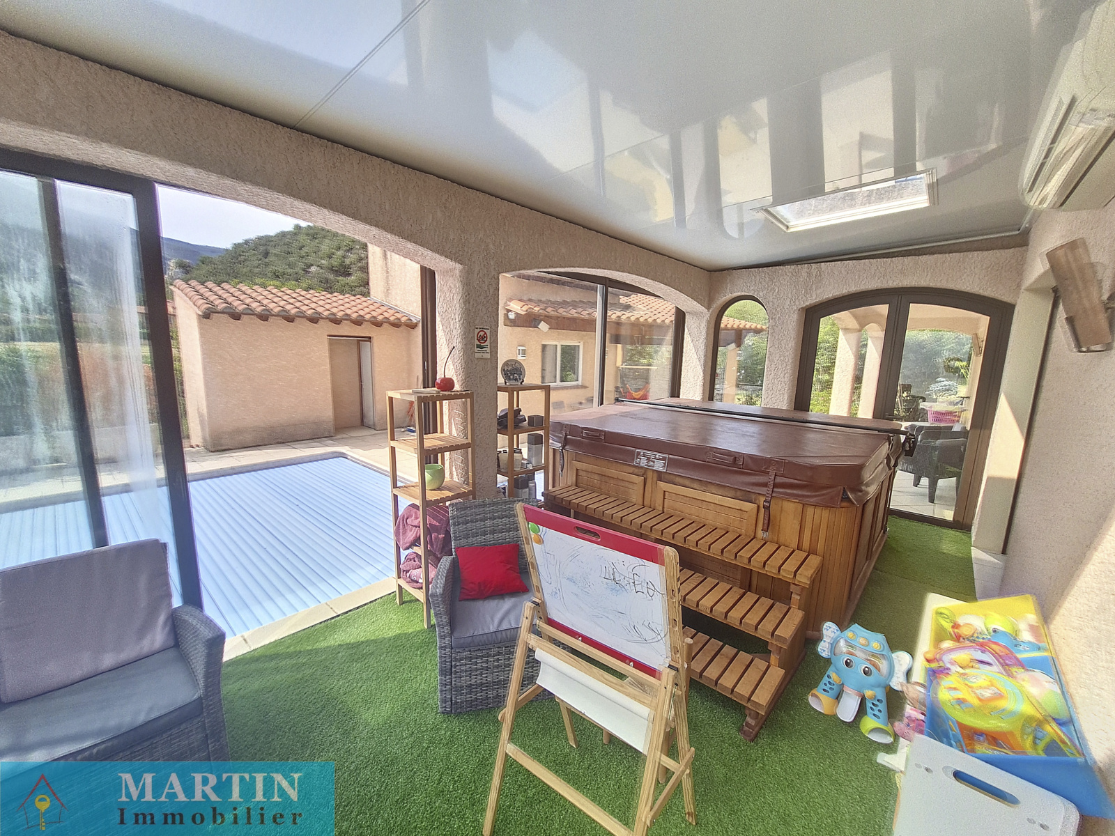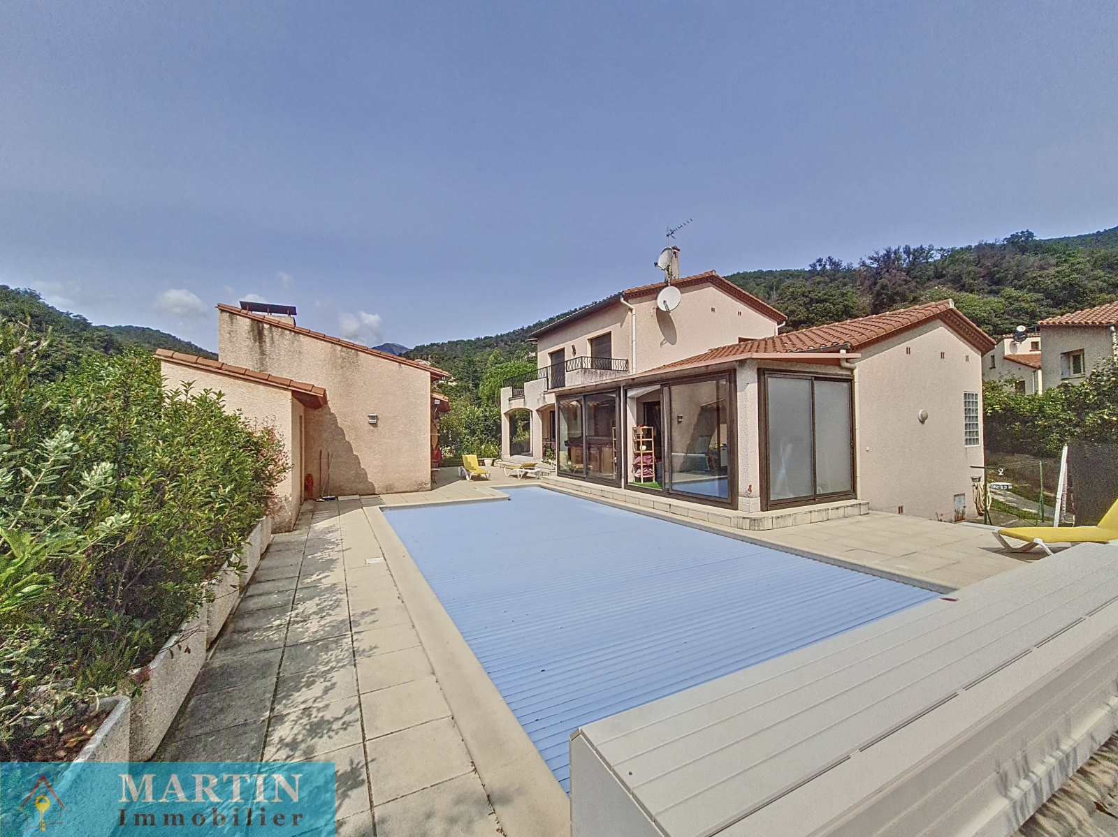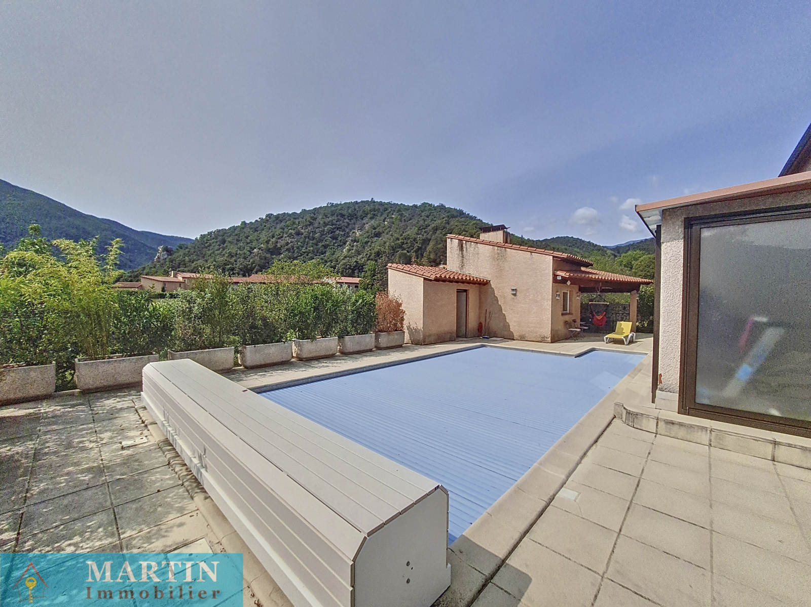 Belle villa de construction traditionnelle sur une parcelle de 1948 m² avec canal d'arrosage dans quartier calme et résidentiel. Bien exposée, cette villa offre en rez de chaussée une très belle pièce à vivre donnant sur une terrasse exposée sud, cuisine équipée, arrière cuisine. L'espace nuit est composé de 2 chambres, salle d'eau, wc séparé. A l'étage, 2 chambres avec terrasse, 1 bureau et 1 salle de bains. Piscine 10x5 maçonnée et chauffée. Cuisine d'été, double garage. Prestations de qualité.