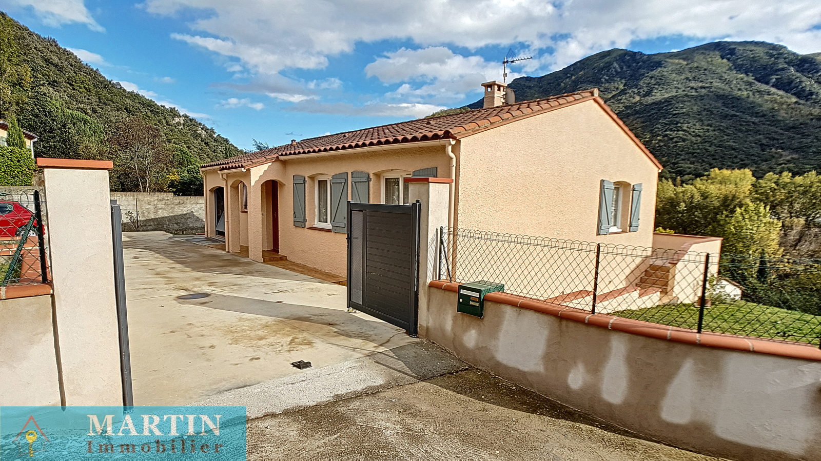 Arles sur Tech, jolie villa plain-pied en 4 faces d'environ 90 m² habitable, sur un beau terrain totalement clos de 1172 m².