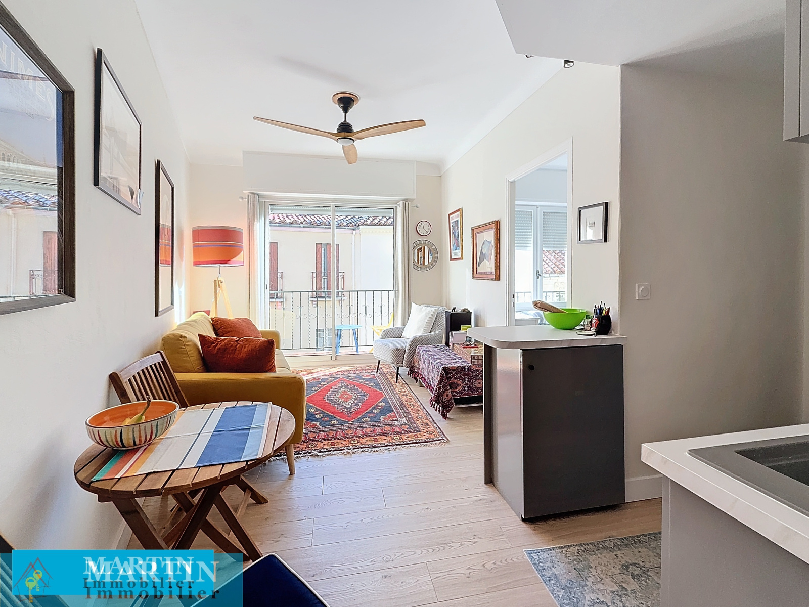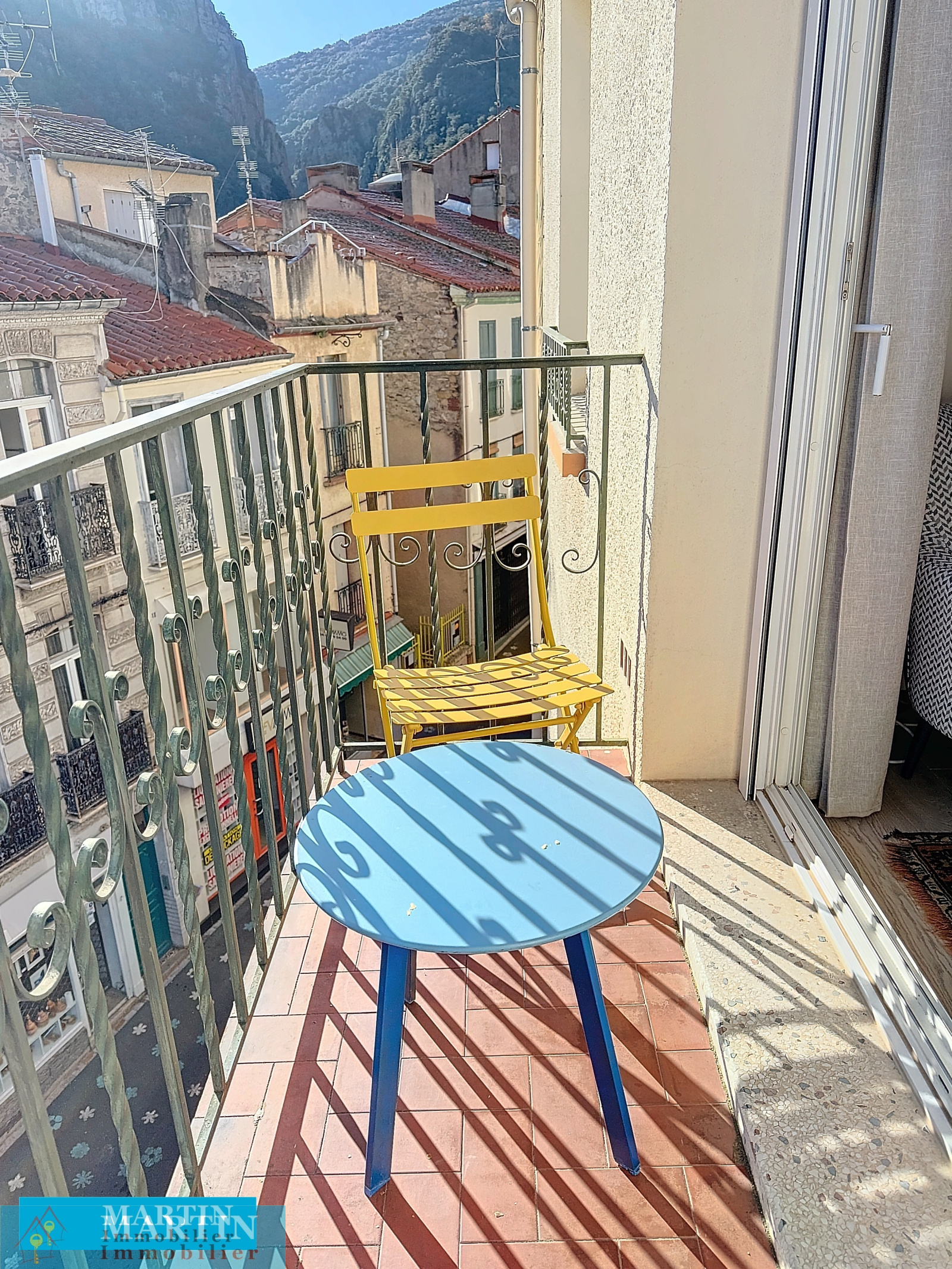 AMELIE LES BAINS, au centre ville, proche des thermes et de toutes les commodités, appartement F2 traversant de 30,37m² entièrement rénové situé au 3ème étage d'une petite copropriété également accessible de plain-pied par la rue arrière. Il est composé d'une pièce à vivre d'environ 16 m² donnant sur un balcon, une chambre, une salle d'eau avec WC donnant sur une courette ainsi qu'un placard de rangement au 4 -ème étage.